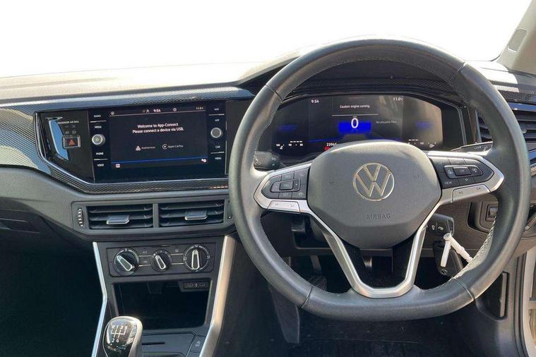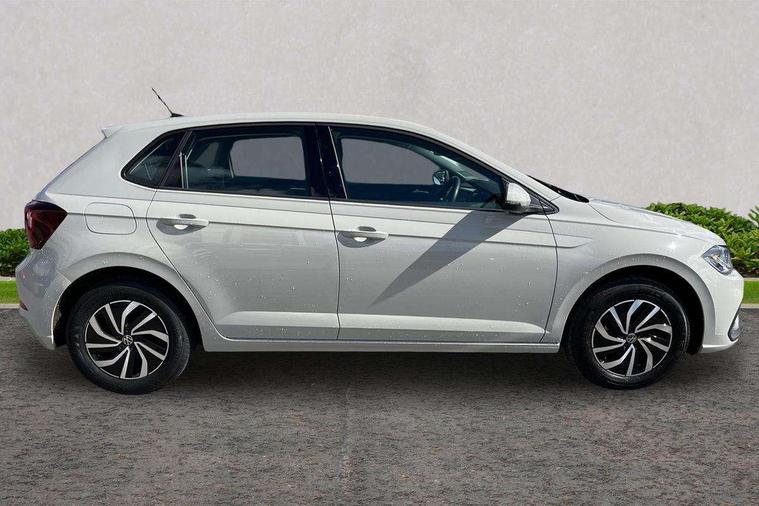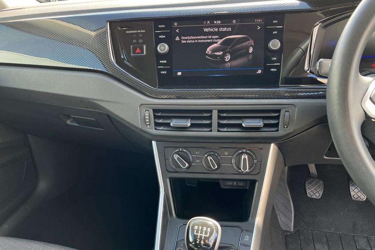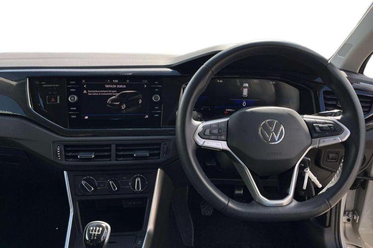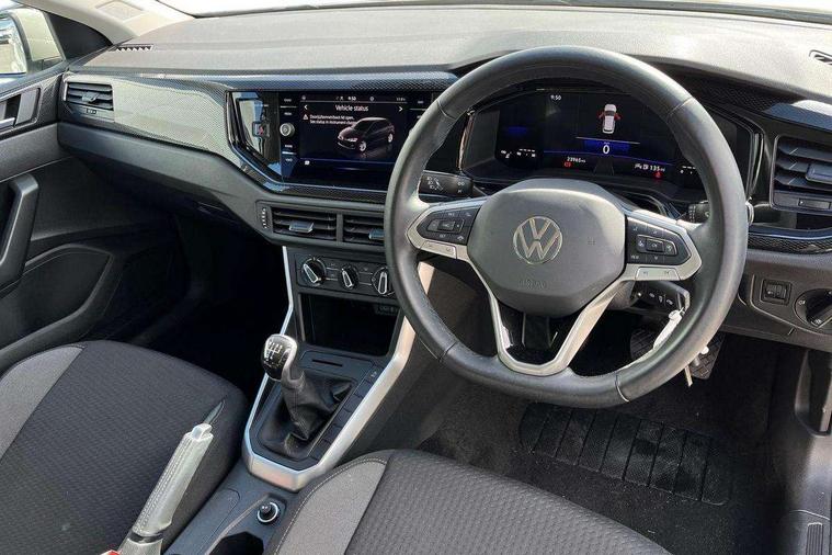 Advanced driver attention and drowsiness monitor, Bluetooth mobile phone interface, Cruise control + speed limiter, Dynamic road sign display, Emergency call service, Lane keeping system Lane Assist, Power assisted speed sensitive steering, Preparation for navigation system with media and internet package, Preparation for We connect and We connect plus, Speedo and rev counter, electronic odometer, trip, service interval display and exterior temperature gauge, Standard rear axle, Trip computer, Warning signal and warning light for front and rear seatbelts not fastened, Washer fluid level indicator, Wireless app connect, Front wheel drive, Rear shock absorpion, Start-stop system with battery regeneration (recuperation - energy recovery during braking), DAB Digital radio, Diversity antenna for FM reception, Front and rear 6 speakers, Automatic dimming interior rear view mirror, Automatic headlight control with LED separate daytime running lights with coming/leaving home function, Body colour bumpers with chrome inserts, Body colour door handles, Body colour door mirrors, Electric front windows, Engine badge deletion, Headlight range adjustment, Heat insulating and laminated safety glass windshield, Heat insulating darkened glass in side and rear windows, Heat insulating glass windscreen, LED Headlights, LED rear combination lamps, Power folding adjustable/heated exterior mirrors and front passenger exterior mirror lowering function, Rain sensor, Rear electric windows, Rear fog light, Rear side wing doors, Rear windscreen washer and wiper with interval delay, Third brake light, 12V power socket in centre console, 2 front and 2 rear reading lights with switch off delay and dimmer, 2 USB-C ports in the front, 2 USB-C charging sockets on the center console in the rear, 3 rear head restraints, 60/40 split folding rear seat and rear seat bench not split, Ceramique roof lining, Chrome plated radiator grille inserts, air vent surrounds and light switch surrounds, Door and side trim panel, Driver and front passenger seat height adjustment, Driver/passenger sunvisors with illuminated vanity mirrors, Front centre armrest, Front seat backrest storage pockets, Front standard seats, Handbrake lever handle in leather, Hartley/Thomas cloth upholstery, Headliner in recycled material, Isofix child seat preparation easy-fit (for two outer rear seats, and front passenger seat) compatible with I-size, Leather trimmed gear knob, Luggage compartment cover, Luggage compartment lighting, Removable luggage compartment floor, Single front passenger seat, Standard climatic zones, Standard pedal cluster, Three spoke leather wrapped multifunction steering wheel, Light and vision pack - Polo, 3 point height adj front seatbelts + pretensioners, 3x3 point rear seatbelts, ABS, Driver and front passenger airbag with front passenger airbag deactivation, Drivers and front passengers safety optimised head restraints, ESC (Electronic stability control) + EDL (Electronic Differntial lock) and ASR (Traction control), Extended and predictive pedestrian/ cyclist protection, Front assist with autonomous emergency braking (for Adaptive Cruise Control ACC up to 130 mph), Front curtain and side airbags with center airbag, Front disc brakes, Hill hold control, Manual child lock in rear doors, Rear drum brakes, Single tone horn, Tyre pressure loss indicator, Alarm with interior protection, Anti-theft alarm system with interior monitoring, backup horn, and towing protection, Anti-theft wheel bolts, Electronic engine immobiliser, Lava stone black gloss/matt decorative inserts in dash and front door panels, Low rolling resistance tyres,
