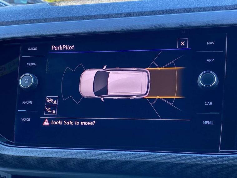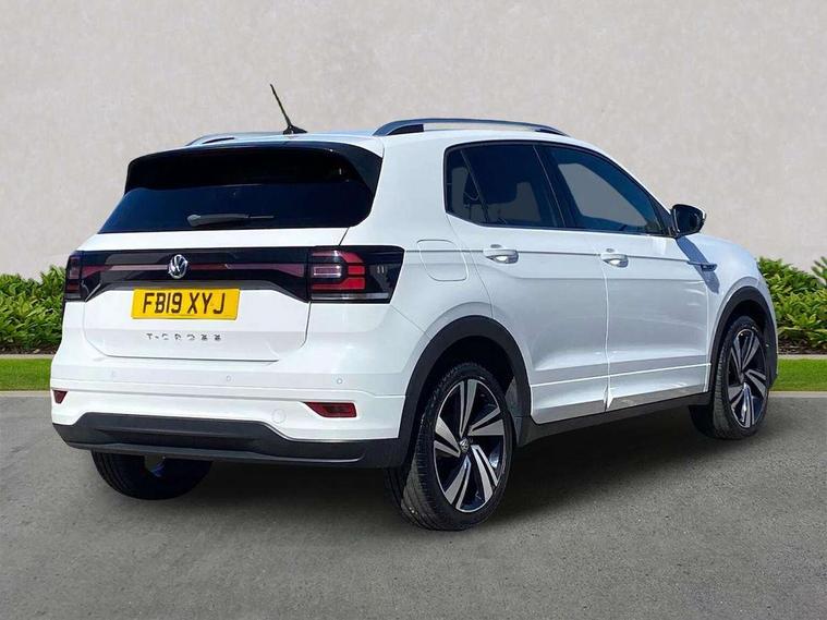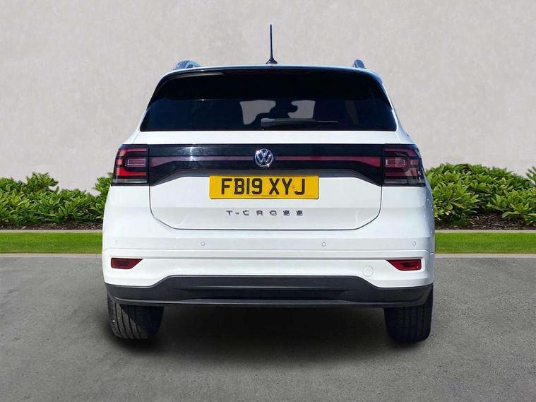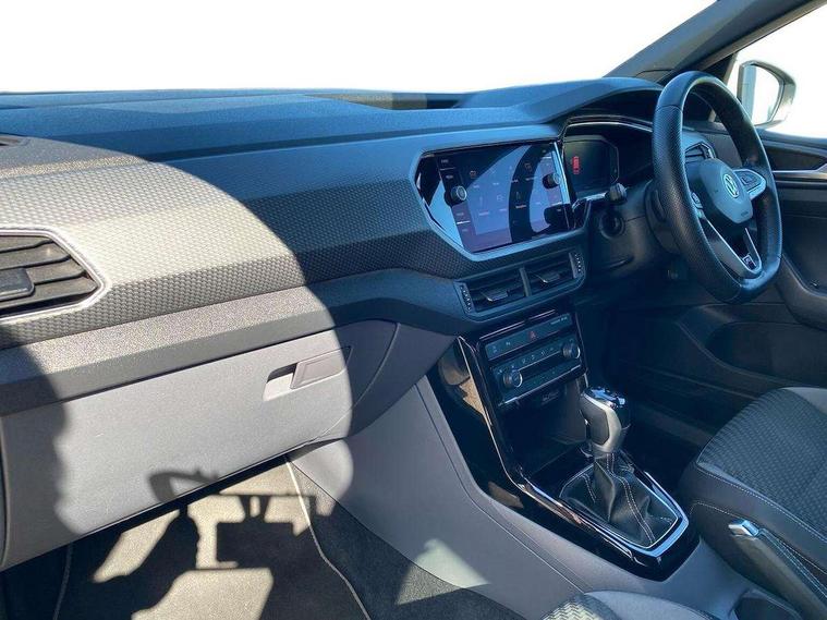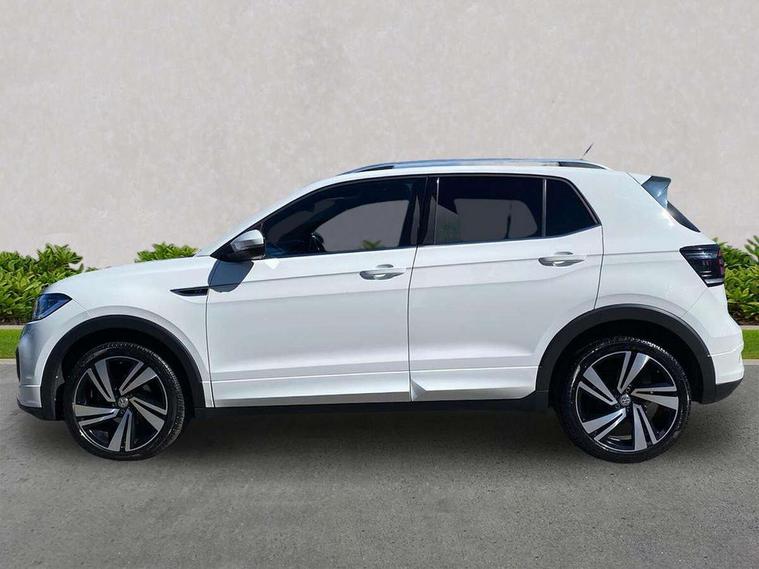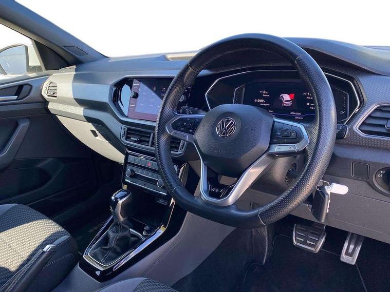 'Lights On' Reminder warning buzzer, Active Info display 10.25" high resolution TFT dash display with customisable menu and information, Adaptive cruise control including front assist, radar sensor controlled distance monitoring system, city emergency braking, cruise control/speed limit, Car-Net App-Connect with VW media control, Discover navigation system with 8.0" colour screen, radio/CD player, European map data, Driver alert system, eCall emergency call system, Lane assist with blind spot plus lane keeping system, Low washer fluid warning light, Multifunction computer with visual gear change recommendation for fuel consumption, Power assisted speed sensitive steering, Progressive steering, Side scan blind spot detection, Speedo, rev counter, electronic odometer, trip, service interval display, exterior temperature and fuel gauge, Stop/start system, Warning sound and light for doors and tailgate open, Warning sound and light for front seatbelts unfastened, Battery regeneration during braking, Misfuel prevention device, 2 USB sockets in rear, Composition Media with 8"colour touch screen including DAB/CD drive, MP3/WMA, AUX-in/SD slot, 1 USB port and Bluetooth telephone connectivity, Multi device interface (MDI) with USB connection, Premium USB cable for Apple or Android smartphone compatibility, Simultaneous pairing of 2 compatible mobile devices, Title and cover art display, Automatic dimming interior rear view mirror with rain sensor, Automatic hazard lights activation under emergency braking, Body colour door handles, Body colour door mirrors with integrated indicators, Body colour rear roof spoiler, Body coloured bumpers, Dusk sensor, Front and rear electric windows, Front fog lights with static cornering function, Galvanised body, Heated rear window, High level 3rd brake light, LED headlights with auto range adjustment + LED daytime running lights, Lower door sills and door pillars in black, Manual coming/automatic leaving home lighting function, Radiator grille with chrome lamelel and bumpers in wagon paint, Rear tail lights LED except turn signals, Rear tinted glass 65% approx light absorbing from B pillar backwards, Rear window aerial, Rear windscreen washer and wiper with interval delay, Reflectors in all doors, Silver roof rails, Stainless steel door sill protection, Tailgate with integrated roof spoiler, Unique R Line badging, Windscreen wipers/ intermittent wipe + 4 position delay, 12V Accessory socket in centre console, 2 Front and rear reading lights incorporating LED technology, 2 Zone electronic climate control with automatic air recirculation, 3 rear head restraints and 3 rear three point seat belts with ECE label, 60/40 split folding rear seat backrest, Aluminium pedals, Black headlining, Carbon flag cloth upholstery, Drawer under drivers seat, Driver and front passenger sunvisor with vanity mirror, Driver's sunvisor with ticket holder, DSG Paddle Shifts, Dust and pollen filter, Front + rear carpet mats, Front centre armrest with storage compartment and two rear air vents, Front comfort seats, Front seat back storage pockets, Front seat R Line logo with rear seat backrest, Front sports seat with height and lumbar adjustment, Glovebox, Heating and fresh air system with 4 stage blower, Height/reach adjust steering wheel, Instrument lighting white adjustable panel illumination, Interior light with delay, Isofix child seat preparation for 2 rear child seats, Luggage compartment cover, Luggage compartment lighting, Moveable and foldable Rear bench seat, Removable luggage cover, Storage compartment in driver and passenger doors, Three spoke multi-function leather trimmed steering wheel and gearknob, Variable boot floor, R Line styling pack - T-cross, 3 point seat belt with electric pre tensioner, Anti-lock Braking System (ABS) with Hydraulic Brake Assist (HBA), Automatic post collision braking system, Driver and front passenger safety-optimised head restraints, Drivers and Front Passengers airbags with front passengers airbag deactivation switch, ESC with EDL, ASR, EDTC and trailer stabilisation function, Extended and proactive pedestrian protection, Front and rear curtain airbags, Front seat side impact airbags, Front ventilated disc brakes and rear disc brakes, Height adjustable 3 point automatic front seatbelts with pretensioners, Hill start assist, Pre crash preventive occupant protection, Rigid safety cell with front and rear crumple zones, Tyre pressure loss indicator, Volkswagen roadside assistance, Alarm with remote central locking and interior protection, Central locking without safe fuse with radio remote control and 2 radio folding keys, Child security locks in rear doors, Electronic engine immobiliser, Remote tailgate unlocking using key fob, Race decorative inserts in dash and doors, 18" Nevada black alloy wheels + anti theft wheel bolts,