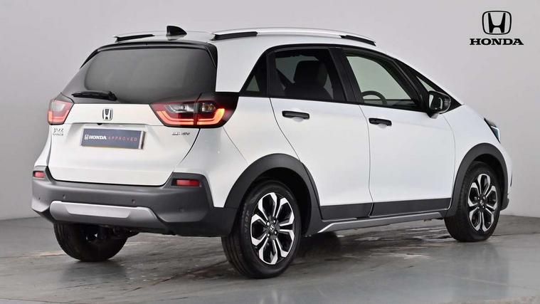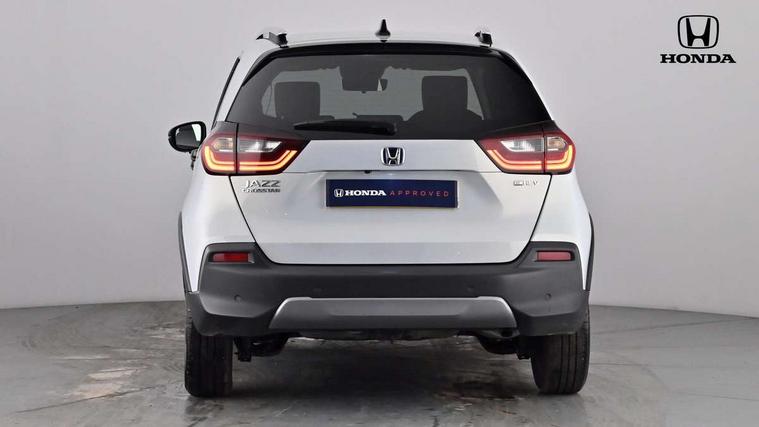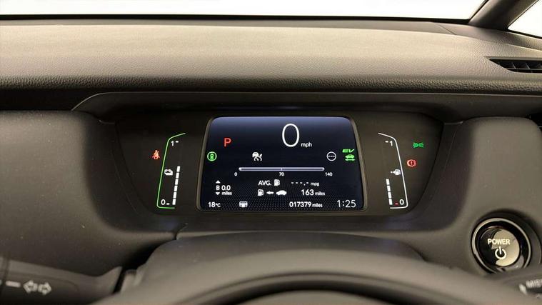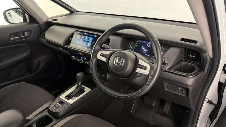 Adaptive cruise control, Adjustable speed limiter, Agile handling assist, Bluetooth hands free telephone connection, eCall emergency call system, Econ mode, Electric power steering wheel with variable gear ratio steering, Emergency stop signalling system, Forward collision warning, Front and rear parking sensors, Honda CONNECT with GARMIN Navigation + 9" touchscreen, AM/FM/DAB/Apple Carplay and android auto, Idle stop, Intelligent speed limiter, Lane departure warning system, Lane keep assist system, Low speed following, Multi-information display, Rear view camera, Road departure mitigation, Tailgate, Traffic jam assist, Traffic sign recognition, Wireless apple carplay, Vehicle stability assist, 'Shark fin' mobile antenna, 180w Power audio system with 4 speakers, 2 USB-C connectors rear, 2x USB Front socket (1 data & 1 charge), Remote audio controls on steering wheel, Aspheric door mirrors, Auto wipers, Automatic headlights with on/off timer, Coming/leaving home function, Black door mirrors, Black headlight extension, Body colour door handles, Body coloured front grille, eHEV emblem, Electric adjustable door mirrors, Electrically folding door mirrors, Exclusive styling includes front and rear bumper, front fog garnish, silver fender, side sill garnish, Front and rear electric windows, Heated door mirrors, High beam assist, LED 3rd brake light, LED daytime running lights, LED front fog lights, LED Headlights, LED rear lights, Manual headlight levelling, Privacy glass, Rear side wing doors, Rear wiper, Roof rails, Single exhaust tailpipe, 3 seat bench in 2nd row, 60/40 split rear bench seat, Cargo net hooks, Climate control air conditioning, Driver and front passenger seat armrests, Driver and passenger front seat pockets, Driver's seat height adjustment, Fabric/Water repellent upholstery, Front accessory power socket, Front head restraints, Front map lights, Front/rear courtesy lights, Heated front seats, Heated steering wheel, Isofix points, Leather gearshift knob, Leather steering wheel, Magic seat flexibility system, Plating interior door handles, Rear head restraints, Single front passenger seat, Sunvisors with vanity mirrors, Tilt/telescopic adjustable steering wheel, Tonneau cover, Trunk light, Vanity mirror illumination, 3x3 point rear seatbelts, Anti-lock braking system (ABS), Brake assist function, Brake hold function, Child locks on rear doors, Collision mitigation braking system, Deflation warning system, Driver knee airbag, Driver SRS airbag (single stage inflation), Driver/Front Passenger airbags, Electronic parking brake with auto hold, Front and rear seat belt with emergency locking retractor, Front and rear side curtain airbag, Front centre airbag, Front side airbags, Hill start assist, Passenger SRS airbag cut-off device, Rear side airbags, Whiplash lessening front headrests, Honda super locks, Immobiliser, Mirrors and windows key fob operation, Remote central locking with 2 remote folding keys, Security alarm, Smart entry + Smart start, Soft pad leather interior panels, 16" 3D chrome H centre cap alloy wheels, Tyre repair kit,