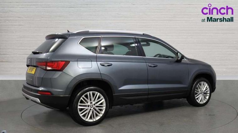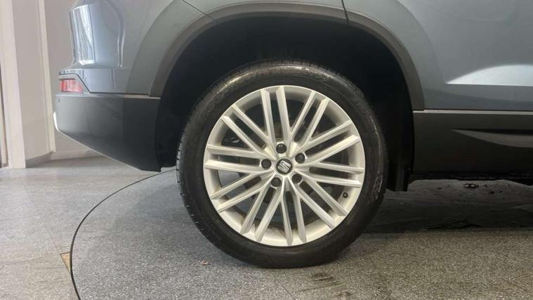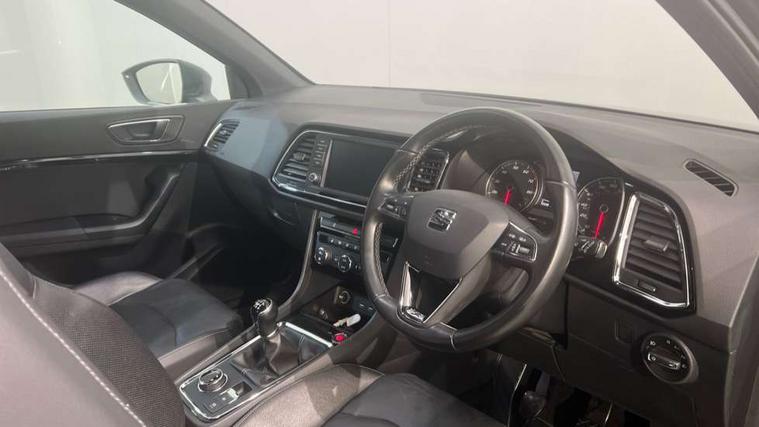 'Lights On' Reminder warning buzzer, Apple car play/Android Auto, Driver alert system, Low fuel warning light, Multi function display, Outside temperature gauge, Progressive power assisted steering, Rear parking sensor, Rear view camera, Remote fuel flap release, SEAT Drive profile, SEAT logo boot release, Trip computer, Comfort suspension, XDS electronic differential lock, 2 USB sockets in rear, Mirror link app interface, Steering wheel mounted audio/phone controls, Aluminium front door sills, Aluminium roof rails, Body colour bumpers, Body colour door handles, Body colour door mirrors, Chrome side window trim, Chromed centre radiator grille surround, Dark tinted rear windows, Electric folding door mirrors, Electrically adjustable and heated door mirrors, Front and rear electric windows, High gloss black grille, LED daytime running lights, LED front fog lights with static cornering light function, LED Headlights, LED tail lights, Rear wash/wipe, Twin chromed exhaust pipes, Welcome lighting, 12V power point front, 3 height adjustable rear headrests, 4 Lashing eyes in boot, 60/40 split folding rear seat, Active head restraints, Adjustable front armrest with storage compartment, Advanced multicolour ambient light with LED interior light and LED illuminated glovebox, Black roof lining, Card holder, Driver/passenger lumbar adjustment, Driver/passenger sunvisors with illuminated vanity mirrors, Dual zone climate control, Footwell illumination, Front cupholders x 2, Front reading lights, Front seat back storage pockets, Height adjustable front headrests, Height adjustable passenger seat, Illuminated boot, Isofix child seat preparation, Leather steering wheel and gear knob, Leather upholstery, Rear armrest, Rear central air outlet, Rear reading lights, Sports seats, Convenience pack - Ateca, Seat Media System Plus pack - Ateca, Winter Pack - Ateca, 3x3 point rear seatbelts, ABS, Auto hold function, Automatic post collision braking, Curtain airbags, Driver/Front Passenger airbags, Drivers knee airbag, Electronic parking brake, Electronic stability control, ESP+EBA, Front and rear seatbelt reminder, Front assist including city emergency braking, Front passenger airbag deactivation, Front side airbags, Hill hold control, Predictive pedestrian protection, Tiredness recognition system, Traction control, Tyre pressure monitoring system, Immobiliser, Keyless entry and go and connectivity hub with wireless charger, Locking wheel bolts, Remote central locking, Volumetric alarm with back up horn, Chrome effect dashboard facia,