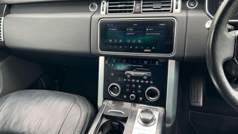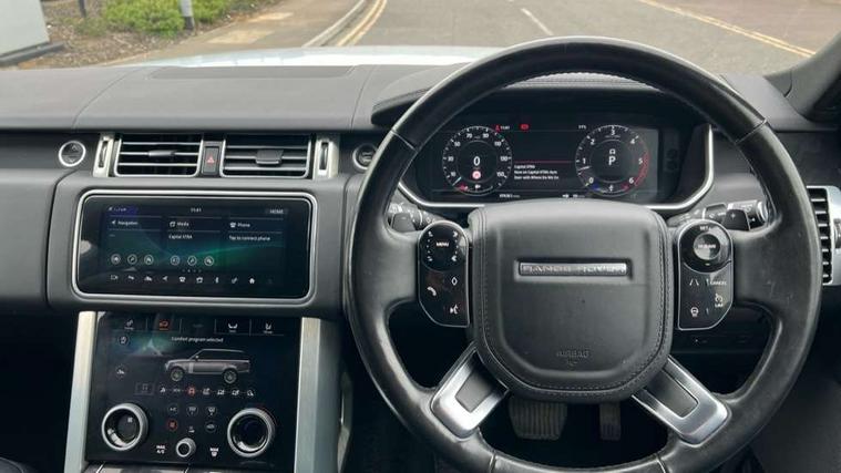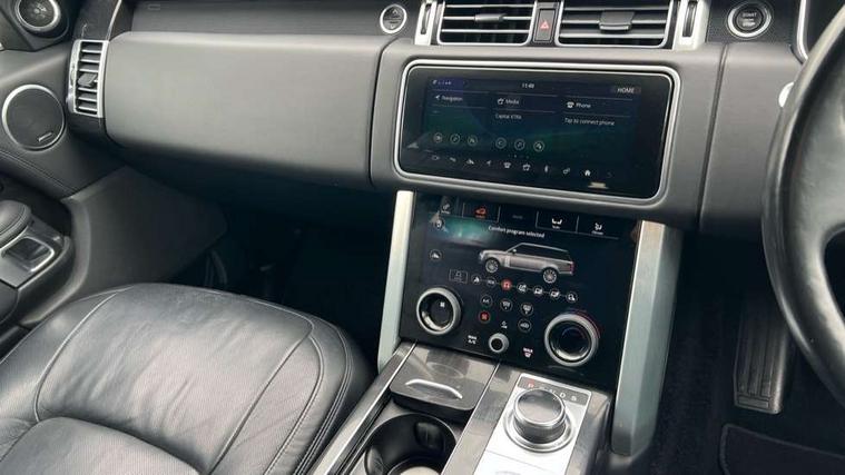 Android Auto, Apple car play, Bluetooth mobile phone connection, Dynamic route guidance, Electric power assisted steering (EPAS), InControl remote premium, InControl secure Tracker, Interactive Driver display instrument cluster, Lane departure warning system, Navigation pro system with 10" touch screen, app interface and media storage, Powered gesture tailgate/boot lid, Pro services and wifi hotspot, Push button starter, Rear camera wash, Rotary shifter, Service interval indicator, Touch pro duo system, Trip computer, Voice control system, 8 speed automatic transmission, Adaptive dynamics, All Wheel Drive (AWD), Automatic access height, Diesel particulate filter, Electronic air suspension, Twin speed transfer box, Digital Audio Broadcast radio-DAB, Digital TV, InControl app, InControl protect, USB socket, Acoustic windscreen, Auto dimming interior rear view mirror, Auto self levelling headlights, Automatic headlights, Body coloured bumpers, Centre high mounted stop light, Door/quarter lights in toughened plate glass, Electric windows with one touch open/close and anti trap, Electrical towing preparation, Follow me home headlights, Front and rear recovery eyes, Headlamp power wash, Heated rear window, Heated windscreen, Integrated twin tailpipes, Laminated front and rear side glass, LED rear lamps, LED tail lights, Power fold, auto-dimming, heated door mirrors with memory and approach lights, Power front/rear windows with global close, Rain sensing windscreen wipers, Rear fog lights, Rear wash/wipe, Side repeater indicators in mirror, Trailer stability assist, Vogue badge, 12V power point in luggage area, 12V power sockets, 3 rear headrests, Black gearshift paddles, Carpet mats, Centre console with storage and armrest, Customer configurable single point entry, Driver and passenger front seat armrests, Easy boot loading, Electrically adjustable steering column, Folding rear seats, Front and rear cupholders, Front and rear grab handles, Front seat back map pockets, Heated steering wheel, Loadspace cover, Loadspace light, Lockable glovebox, Luggage compartment lighting, Luggage tie down in loadspace, Perforated Windsor leather upholstery, Rear centre armrest, Rear ISOFIX, Through load facility, Twin blade sunvisors with Illuminated vanity mirrors, 3 rear 3 point seatbelts, Anti-lock braking system (ABS), Auto lock system when vehicle in motion, Cornering brake control (CBC), Curtain airbags, Customer configurable autolock, Driver/front passenger head+thorax airbag, Drivers knee airbag, DSC - Dynamic Stability Control, Electronic brake force distribution, Electronic parking brake, Electronic traction control, Emergency brake assist, Emergency braking, ESP, Front airbags with passenger seat occupant detector, Front seatbelt pretensioners with force limiters, Front side airbags, Height adjustable front seatbelts, Hill descent control, Hill launch assist, Low traction launch, Power operated child locks, Roll stability control, Tyre pressure monitoring system (TPMS), Unpainted brake calipers, Immobiliser, Intrusion sensor and alarm, Keyless entry, Locking wheel nuts, Remote central locking,