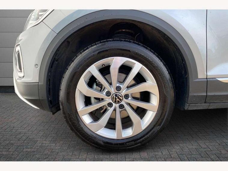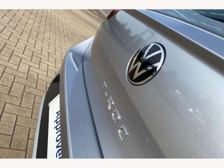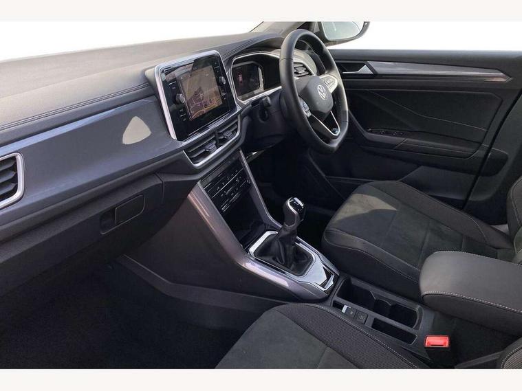 10.25" Digital cockpit pro, Advanced driver attention and drowsiness monitor, Emergency call service, Lane keeping system Lane Assist, Mobile phone interface, Modified key software - reduce switch off time for key status change to Long no motion, Online services, Park assist including front and rear parking sensors, Power assisted speed sensitive steering, Service interval indicator, Tailgate/trunk lid release from outside, Think blue trainer driver tips and journey analysis, Warning sound and light for front seatbelts unfastened, Wireless app connect, Battery regeneration during braking, Start/stop function with battery regeneration, DAB Digital radio, Diversity antenna for FM reception, Front and rear 6 speakers, Music playback - MP3, WMA and AAC files, Premium USB cable in choice of either Apple or Android smartphone compatibility, SD card slot, Simultaneous pairing of 2 compatible mobile devices, Title and cover art display, We Connect and We Connect Plus functionality, Auto dimming interior rear view mirror, Automatic hazard lights activation under emergency braking, Automatic headlight control with LED separate daytime running lights with coming/leaving home function, Body colour sports bumpers with silver metallic underbody fascia, Body coloured exterior mirror housings and door handles, Dynamic headlight range control with self adjusting whilst driving, Electrically adjustable and heated door mirrors, Extended roof spoiler, Exterior mirrors aspherical on driver side, convex on front passenger side, External USB type C socket and charging sockets, Front windscreen wiper with intermittent wipe and 4 position delay, Heated rear window, LED 3rd brake light, LED rear combination lamps, LED rear number plate lights, Light mode for poor weather, rain, fog or snow, Power windows with comfort operation and circuit breaker, Privacy glass for rear side windows and rear window, Rain sensor, Rear exhaust tailpipe, Rear fog light on one side and reversing lights on both sides, Rear side wing doors, Rear wash/wipe with intermittent wipe setting, Remote electrically foldable door mirrors, puddle lights and reverse activated passenger's door mirror, 12V power socket in centre console, 3 rear head restraints, 3 seat bench in 2nd row, 4 load lashing points in luggage compartment, Air care climatronic air conditoning system with active combination filter and 2-zone temperature control, Chrome plated radiator grille inserts, air vent surrounds and light switch surrounds, Door and side trim panel with leatherette insert, Drawer under drivers seat, Front + rear carpet mats, Front centre armrest, Front comfort sports seats, Front cupholders x 2, Front footwell illumination, Front seat back storage pockets, Glove compartment door with light, Instrument lighting, white adjustable panel illumination, Interior ambient lighting and surround lighting, Interior light delay, Isofix child seat preparation, Leather gearshift handle, LED interior light with switch off delay/dimmer and 2 front/rear LED reading lights, Load-through provision with cup holder when folded down ('Unsplit rear seat bench, split folding backrest, with centre armrest), Luggage compartment lighting, Non-folding front passenger seat backrest, Single front passenger seat, Storage compartment in left and right luggage area, Storage compartment in rear doors, Storage compartments in driver and front passenger doors, Sunvisors with illuminated vanity mirrors, Variable boot floor, height adjustable and removable, Driver assistance pack without proactive passenger protection - T-Roc, 3 point height adj front seatbelts + pretensioners, 3 point seatbelts in outer rear with ECE label, ABS, Child locks on rear doors, City emergency braking and pedestrian monitoring, Driver and front passenger airbag with front passenger airbag deactivation, Driver and front passenger safety-optimised head restraints, Drivers seatbelt reminder, Electronic parking brake, Electronic Stability Control (ESC) inc EDL (Electronic Differential Lock) and ASR (Traction Control), Front and rear passengers curtain airbag system including front side airbags, Predictive pedestrian protection, Rear disc brakes, Two tone horn, Tyre pressure loss indicator, Volkswagen roadside assistance, Deep iron grey decorative inserts in dashboard, centre console and front door trim panels, Trims for alloy wheels,
