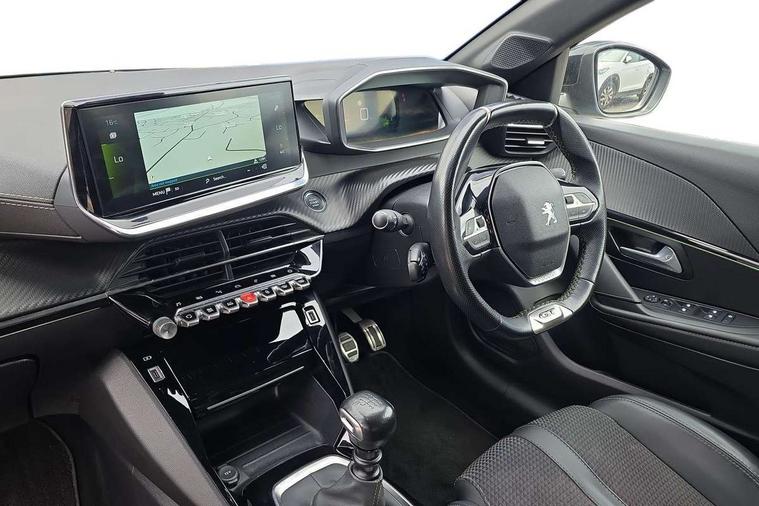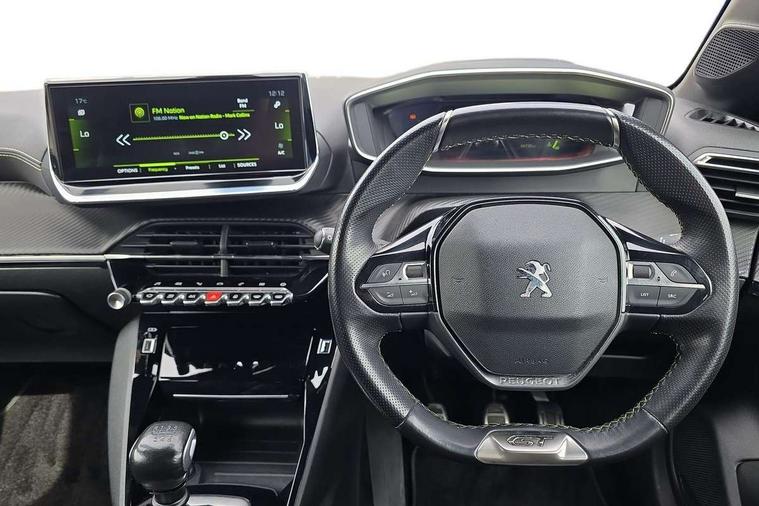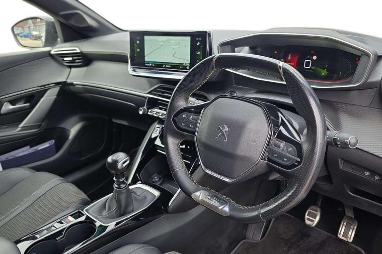 10" Capacitive colour touchscreen with connected 3D navigation, Bluetooth telephone facility, Driver attention warning, Exterior temperature indicator with ice warning, Front and rear parking sensors, Lane keep assist, Mirror screen with mirror link, apple carplay and android auto, Multi function trip computer, Passive blind spot detection, PEUGEOT i-Cockpit with compact steering wheel, PEUGEOT i-Cockpit with configurable 3D headup instrument panel, PEUGEOT SOS and assistance, Push button start, Smart phone docking station, Speed limit recognition and recommendation, Visio Park 1 with 180 degree Colour reversing camera, 2 front USB socket with USB-C, 2x USB sockets in rear, 6 speakers radio with mp3 compatible, DAB Digital radio, Voice recognition for radio, navigation and telephony features, 2 X Rear number plate lights, Automatic hazard light activation upon heavy brake application, Automatic lights, Automatic windscreen wipers, Body coloured exterior door handles, Dark tinted rear side and tailgate windows, Diamond black rear spoiler (roof), Diamond Black roof, Electric front windows + one touch + anti-pinch, Electric rear windows with one touch/anti-pinch, Electrically adjustable, heated and power folding door mirrors, Follow me home headlights, Frameless electrochrome interior rear view mirror, Front windscreen wiper with magic wash cleaning system, Full LED headlights with smartbeam assist, Gloss black finish on B pillar, Gloss black rear cluster connecting strip, Gloss black wheel arch extensions, Gloss black window surround, GT Line model designation badging on C pillar, GT Line model designation badging on tailgate, Headlights left on audible warning, LED daytime running lights with 3 claw headlight with distinctive tooth design, LED side indicator lights integrated into door mirrors, Model designation badges front and rear, Nera black door mirror shells, Radiator grille - Dark chrome chequered and gloss black edge trim, Rear bumper with gloss black finish, Rear full LED 3D peugeot signature claw effect lights with daylight function, Rear lower bumper diffuser effect trim in gloss black, Rear reversing lights, Rear windscreen wiper triggered automatically in reverse gear, Stainless steel door sill scuff plates, Tailgate with heated rear windscreen and wiper blade, Twin chrome exhaust tailpipes, 1/3 to 2/3 split folding rear seats, 12V socket, 8 Colour personalisable ambient lighting, Aluminium pedals and foot rest, Driver and front passenger seat manual adjustment in longitudinal and back rest angle, Driver and front passenger seat mechanical height adjustment, Driver and front passenger sport seats, Dual zone electronic climate control, Electric power steering with reach and rake adjustable steering column, Front and rear carpet mats in black with lime green stitch detail, Front centre armrest with storage compartment, Front LED interior light with 2 reading spotlights and rear interior light with timer, High centre console with 2 cup holders, ISOFIX child seat mounting points on passenger seat, Lime green contrast stitching to armrest, front centre console, door panels and dashboard facia, Map pockets on the backs of the front seats, Mistral full grain perforated leather steering wheel with aikinite stitch detail and satin chrome 'GT' emblem, Piano keys gloss black plated toggle switches to access main functions of the vehicle, Piano keys gloss black plated toggle switches to access touchscreen functions, Roof lining - Mistral black, Satin chrome gear lever, Seatbelt unfastened on the move audible and visual alert for front and rear seats, 2x 2nd row ISOFIX child seat mountings, 3 point seatbelts on all rear seats, 3 rear 3 point seatbelts, 3x3 point rear seat belts, 3x3 point rear seatbelts, ABS (Anti-lock Braking System) with EBD (Electronic Brakeforce Distribution) and EBA (Emergency Braking Assistance), Active safety brake with night function/cyclists/pedestrians, Child locking functionality on rear doors, Driver and passenger airbags with Passenger airbag deactivation system, Driver/front passenger side airbags, Electric parking brake, ESP with Hill Assist, Front and rear curtain airbags, Front and rear disc brakes, Front optimised safety headrests and 3 x rear retractable headrests with height adjustable, Front three point retractable seatbelts with force limiters, Tyre pressure sensor, Automatic door locking when moving off, Deadlock, Electronic code immobiliser, Thatcham Cat.1 alarm, Carbon effect Dashboard, front and rear door panel finish, 17" Camden diamond cut two tone alloy wheels, Space saver spare wheel,