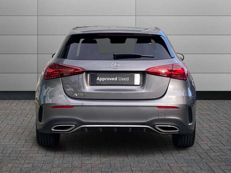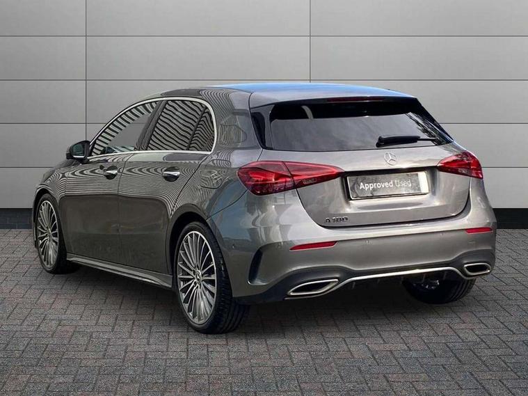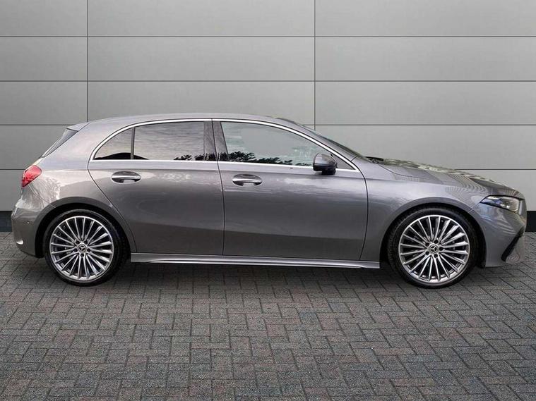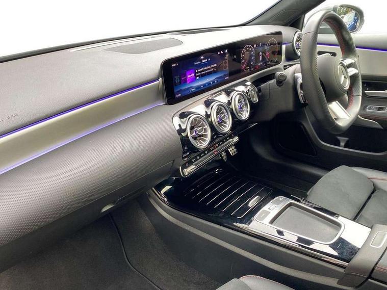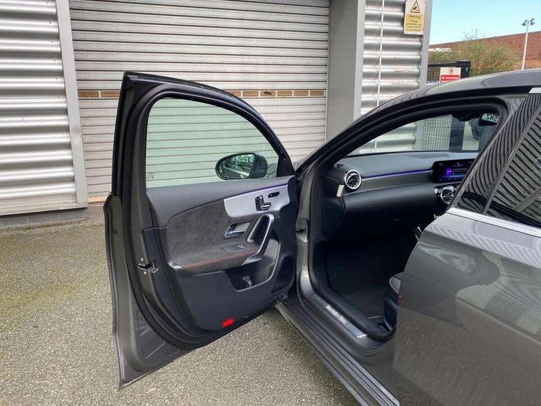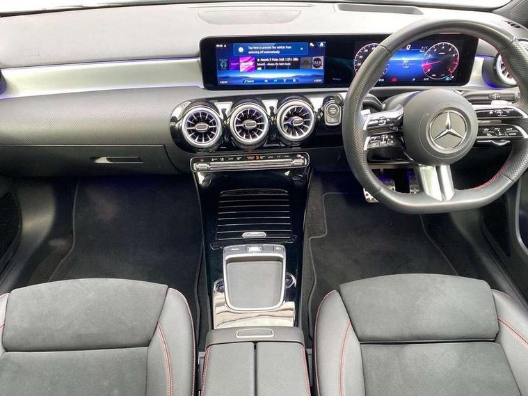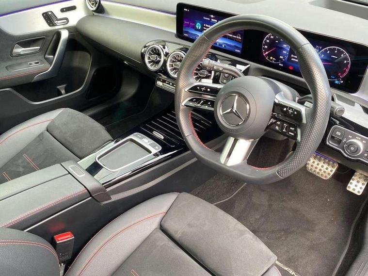 10.25 inch touchscreen central media display, 10.25" Digital instrument cluster display screen, Attention assist, Brake pad wear indicator warning light, Car wash mode, Direct steering, Direction indicators with lane change function, Dual bluetooth interfaces, DYNAMIC SELECT with a choice of driving modes (ECO, Comfort, Sport and Individual), ECO start/stop function, Engine start/stop button, Fingerprint scanner, Fluid level warning indicator for fuel, oil, coolant and washer fluid, Fluorescent jacket for driver, Hard-disk navigation, Head up Display, Hey Mercedes Voice activation, Lamp failure indicator, Mercedes me connect including emergency call system, accident recovery, breakdown and maintenance management, Mercedes me remote services, Outside temperature gauge, Owners manual in English, Pre-installation of private car share, Remote boot closing, Service indicator (ASSYST), Smartphone integration with Apple CarPlay and Android auto, Speed sensitive power steering, Tailgate, Traffic sign assist, Trip computer in multifunction display with current consumption indicator, Wireless charging, Lowered comfort suspension, DAB Digital radio, MBUX multimedia system, Mercedes Benz advanced sound system (225 W) with 10 speakers, 1 central speaker, speakers on doors, a tweeter on door, one sub woofer + boost amplifier, 4 Electric Front and Rear windows, Adaptive brake lights, AMG body styling - AMG front apron with front splitter and AMG rear apron and visible exhaust tailpipe trim elements, Body colour bumpers, Body colour door handles with chrome inserts, Body colour side skirt, Chrome beltline strips, Diamond radiator grille with pins in fine star pattern, Electric adjustable and heated door mirrors with integrated LED side indicators, Exhaust system with 2 visible tailpipe trim elements and rear apron, Headlamp assist automatic headlamp activation, Heated glass rear windscreen + timer control, LED daytime running lights, LED High level third brake light, LED tail lamp, Multibeam LED headlamps with adaptive highbeam assist and cornering function, Panoramic sliding sunroof, Privacy glass, Radio aerial, Rain sensing windscreen wipers with two sensitivity settings, Rear fog lights, Rear side wing doors, Rear windscreen wiper, 3 seat bench in 2nd row, 3 Spoke flat bottom leather multi function steering wheel with perforated leather in grip area, 40:20:40 split folding rear seats, Air conditioning - Two zone thermotronic luxury automatic climate control with display, AMG floor mats, Artico man-made leather/Microcut microfibre upholstery, Automatic child seat recognition sensor, Black air vents with surround in silver chrome, Black roof lining, Brushed stainless steel sports pedals with rubber studs, Electrically adjustable front memory seats including lumbar support and backrest inclination, Front centre armrest with stowage, Front seat backs luggage nets, Galvanished gear shift paddles on steering wheel, Height/reach adjustable steering column, Illuminated Mercedes Benz lettering front door sills with changeable cover, Interior lighting - 64 colour Ambient lighting, Interior mirror with reading lamps in black and frameless, Rear armrest with 2 cupholders, Rear head restraints, Seat occupancy sensor for front passenger seat, Single front passenger seat, Sports seats with integrated headrests, Stowage compartment in centre console with retractable cover, Sunvisors with illuminated vanity mirrors, Twin front cupholders, Light and sight package - A Class, Mirror package - A Class, Night pack - A Class, Parking pack with 360 degree camera - A Class, Seat comfort pack - A Class, USB pack plus - A Class, Winter pack - A Class, 3 rear 3 point seatbelts, ABS with Brake Assist, Active bonnet, Adaptive brake assist with hold function and hill start assist, Bonnet with power domes, Childproof locks manually operated for rear doors and electrically operated for rear power windows, Crash responsive emergency lighting, Driver and passenger head and side airbags, Drivers knee airbag, Dual stage driver/passenger airbags, Electronic parking brake, ESP curve dynamic assist, ESP with ASR, Exit warning, Front and rear seatbelt reminder, Grey seatbelts, ISOFIX and top tether child seat fixing points in two outer rear seats, Tyre pressure monitoring system, Warning triangle and first aid kit, Window airbags, Alarm system/interior protection/immobiliser, Guard 360 degree vehicle protection, Keyless entry lock/unlock, Keyless Go, Remote central locking and crash sensor with emergency opening function, Light longitudinal grain aluminium trim, 19" AMG multi-spoke light alloy wheels, aerodynamically optimised, painted in black with high sheen rim flange, Summer tyres, Tirefit sealant kit,