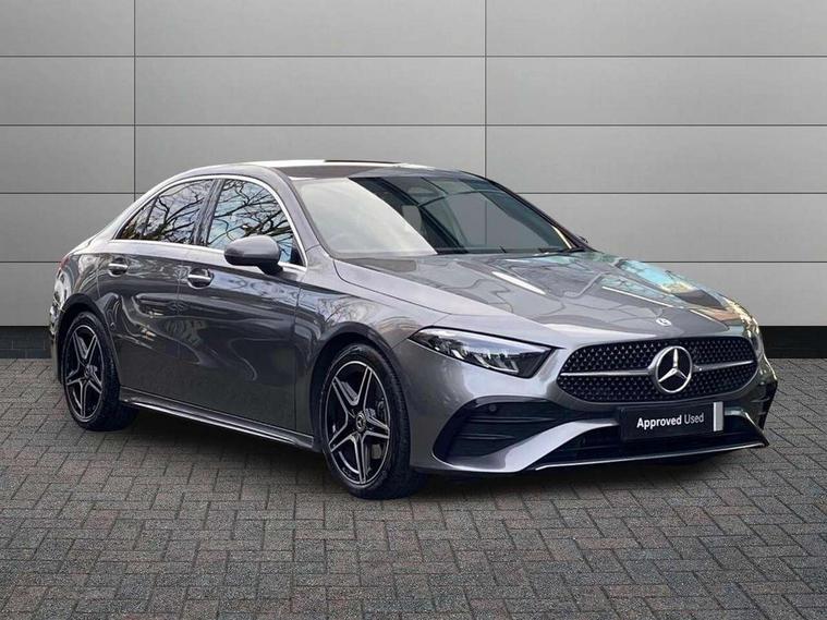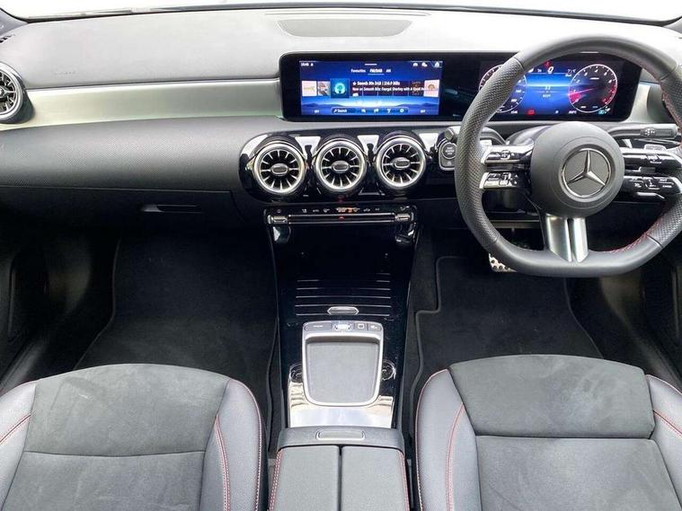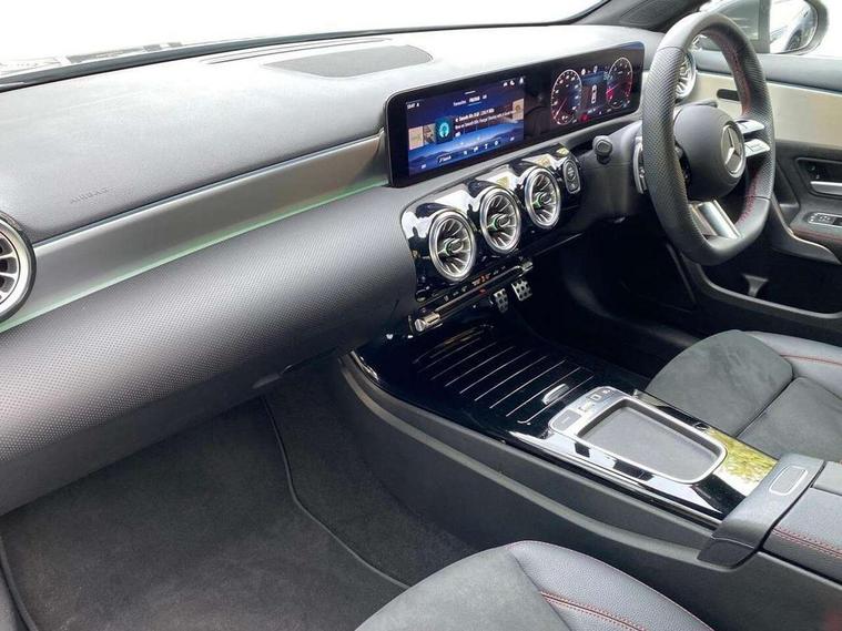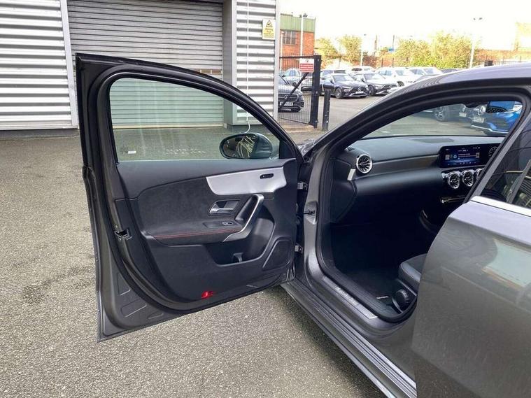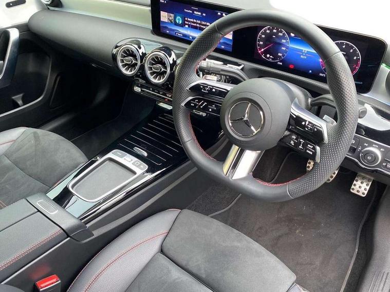 10.25 inch touchscreen central media display, 10.25" Digital instrument cluster display screen, Attention assist, Blind spot assist, Brake pad wear indicator warning light, Car wash mode, Cruise control + speed limiter, Direct steering, Direction indicators with lane change function, Dual bluetooth interfaces, DYNAMIC SELECT with a choice of driving modes (ECO, Comfort, Sport and Individual), ECO start/stop function, Engine start/stop button, Fingerprint scanner, Fluid level warning indicator for fuel, oil, coolant and washer fluid, Fluorescent jacket for driver, Hard-disk navigation, Hey Mercedes Voice activation, Lamp failure indicator, Lane keeping system, Mercedes me connect including emergency call system, accident recovery, breakdown and maintenance management, Mercedes me remote services, Outside temperature gauge, Owners manual in English, Pre-installation of private car share, Remote boot closing, Service indicator (ASSYST), Smartphone integration with Apple CarPlay and Android auto, Speed limit assist, Speed sensitive power steering, Trip computer in multifunction display with current consumption indicator, Wireless charging, Lowered comfort suspension, DAB Digital radio, MBUX multimedia system, Mercedes Benz sound system (100 W) with 6 speakers, 4 Electric Front and Rear windows, Adaptive brake lights, AMG body styling - AMG front apron with front splitter and AMG rear apron and visible exhaust tailpipe trim elements, Body colour bumpers, Body colour door handles with chrome inserts, Body colour side skirt, Chrome beltline strips, Diamond radiator grille with pins in fine star pattern, Electric adjustable and heated door mirrors with integrated LED side indicators, Exhaust system with 2 visible tailpipe trim elements and rear apron, Headlamp assist automatic headlamp activation, Heated glass rear windscreen + timer control, LED High Performance headlamps including integral LED daytime running lamps and adaptive highbeam assist, LED tail lamp, Privacy glass, Radio aerial, Rain sensing windscreen wipers with two sensitivity settings, Rear boot, Rear fog lights, Rear side wing doors, Third brake light featuring LED technology, Window line trim strip in chrome, 3 seat bench in 2nd row, 3 Spoke flat bottom leather multi function steering wheel with perforated leather in grip area, 4 way lumbar support, 40:20:40 split folding rear seats, Air conditioning - One zone THERMATIC automatic climate control with automatically controlled air distribution, AMG floor mats, Artico man-made leather/Microcut microfibre upholstery, Automatic child seat recognition sensor, Black air vents with surround in silver chrome, Black roof lining, Brushed stainless steel sports pedals with rubber studs, Front centre armrest with stowage, Front door sills with Mercedes Benz lettering, Front seat backs luggage nets, Front sports seats with adjustable head restraints, Galvanished gear shift paddles on steering wheel, Heated front seats, Height/reach adjustable steering column, Interior lighting - 64 colour Ambient lighting, Interior mirror with reading lamps in black and frameless, Rear armrest with 2 cupholders, Rear head restraints, Seat occupancy sensor for front passenger seat, Single front passenger seat, Stowage compartment in centre console with retractable cover, Sunvisors with illuminated vanity mirrors, Twin front cupholders, Keyless go comfort pack - A Class, Light and sight package - A Class, Mirror package - A Class, Parking pack with 180 degree view - A Class, Seat comfort pack - A Class, USB pack plus - A Class, 3 rear 3 point seatbelts, ABS with Brake Assist, Active bonnet, Active brake assist includes forward collision warning system with autonomous braking, Adaptive brake assist with hold function and hill start assist, Bonnet with power domes, Childproof locks manually operated for rear doors and electrically operated for rear power windows, Crash responsive emergency lighting, Driver and passenger head and side airbags, Drivers knee airbag, Dual stage driver/passenger airbags, Electronic parking brake, ESP curve dynamic assist, ESP with ASR, Front and rear seatbelt reminder, ISOFIX and top tether child seat fixing points in two outer rear seats, Tyre pressure monitoring system, Warning triangle and first aid kit, Window airbags, Alarm system/interior protection/immobiliser, Guard 360 degree vehicle protection, Remote central locking and crash sensor with emergency opening function, Black seatbelts, Light longitudinal grain aluminium trim, 18" AMG 5 twin spoke light alloy wheels, aerodynamically optimised, painted in black with high sheen finish, Summer tyres, Tirefit sealant kit,