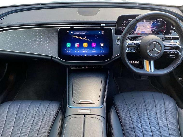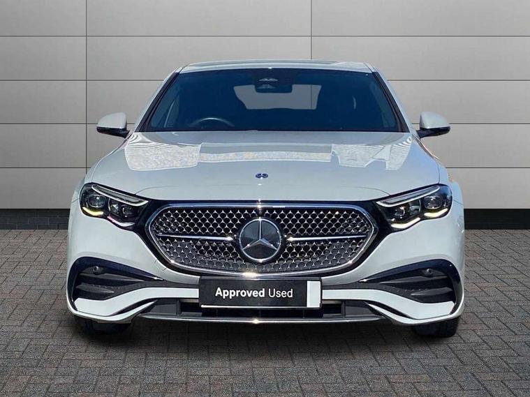 12.3" Driver display screen, 14.4" central media display, 5G Communications module, Attention assist, Augmented reality navigation, Blind spot assist, Brake wear warning display, Direct steer speed sensitive steering, ECO start/stop function, Emergency call assistance, Evasive manoeuvre support, Fluorescent jacket for driver, Hard disc navigation, Head up Display, MBUX navigation premium, MBUX voice control, Mercedes connect me, Outside temperature display, Preinstallation for live traffic, Remote Services Premium, Service indicator (ASSYST), Status display for rear seat belts in instrument cluster, Trip computer in multifunction display showing current fuel consumption, Wireless charging, Wireless smartphone integration with Apple CarPlay and Android auto, 48V Mild hybrid technology, 66 litre fuel tank, 9G TRONIC automatic transmission, Agility control suspension with selective damping and lowering, Bluetec emission control, Diesel particulate filter, Integrated starter generator Gen 2, Sporty engine sound system, DAB Digital radio, Preinstallation for MBUX Entertainment Plus, 3rd brake light, Adaptive brake lights, Aerial integrated in rear window, AMG bodystyling, Auto dimming driver's door mirror, Auto dimming rear view mirror, Black radiator grille, Digital air vent control, Electric folding door mirrors, Electric windows with one touch opening/closing and obstruction sensors, Electrically adjustable and heated door mirrors, Heat insulating privacy glass, LED daytime running lights, LED digital light with adaptive highbeam assist plus, Pre-installation for roof rail systems, Rear boot, Rear side wing doors, Surround lighting with logo projection, 3 seat bench in 2nd row, 4 way lumbar support, Ambient lighting, AMG brushed stainless steel sports pedals with rubber studs, AMG floor mats, AMG line interior, Automatic child seat recognition sensor, Central stowage compartment with USB socket for use with Android Auto and Apple CarPlay, Comfort seats, Courtesy lights in rear grab handles with reading light functionality, Folding rear seat backrest, Front centre armrest with stowage compartment, Glove compartment - lockable, air conditioned and illuminated, Head restraints for driver and front passenger (four-way adjustability) and in rear (two-way), Heated front seats, Illuminated door sills, Multifunction sports steering wheel in nappa leather, Roof liner in black fabric, Seat occupancy sensor for front passenger seat, Single front passenger seat, Sunvisors with illuminated vanity mirrors, Thermotronic 4 zone climate control, Leather package - E Class, Memory package - E Class, Parking package with 360 degree camera - E Class, USB plus package - E Class, 3x3 point rear seatbelts, Active bonnet pedestrian safety measure which detects an impact and raises bonnet, Adaptive brake system with HOLD function and brake drying in the wet, Anti-lock braking system (ABS), Automatic front passenger airbag deactivation, Central airbag, Childproof locks manually operated for rear doors and electrically operated for rear power windows, Driver and adaptive front passenger airbags, Electronic parking brake, Electronic Stability Programme, Hill start assist, ISOFIX child seat attachment points two outer rear seats, Knee airbags, Pedestrian protection, Pre-Safe anticipatory safety system, Tyre pressure monitoring system, Warning triangle and first aid kit, Window airbags, Alarm system with interior monitoring, Central locking with interior switch, automatic locking and crash sensor with emergency opening function, Dashcam, Digital vehicle key, Guard 360 degree vehicle protection plus, Increased anti theft protection, Keyless Go, Urban guard vehicle protection plus, Open pore black ash backlit wood trim with laser cut Mercedes Benz star pattern and open pore black ash wood centre console, 19" AMG 5 twin spoke alloy wheels, Summer tyres, Tirefit,