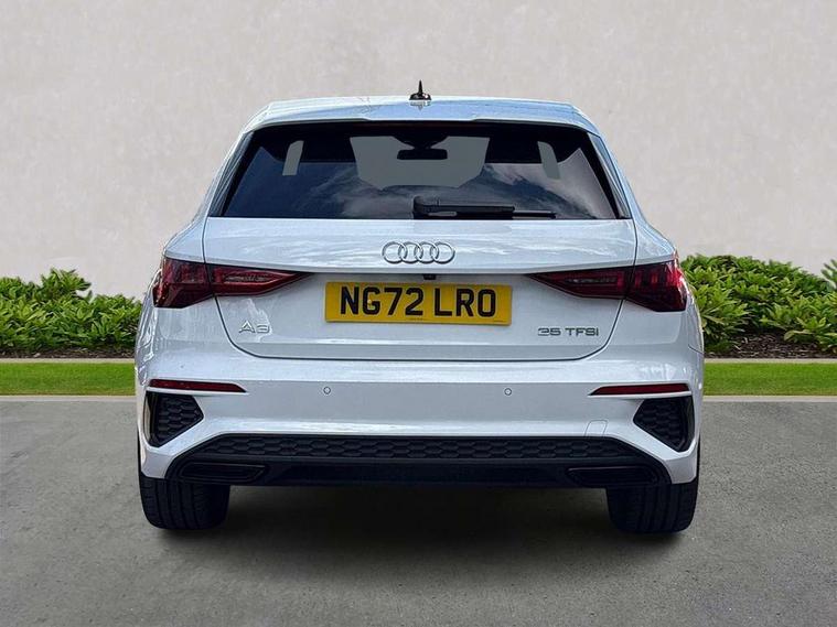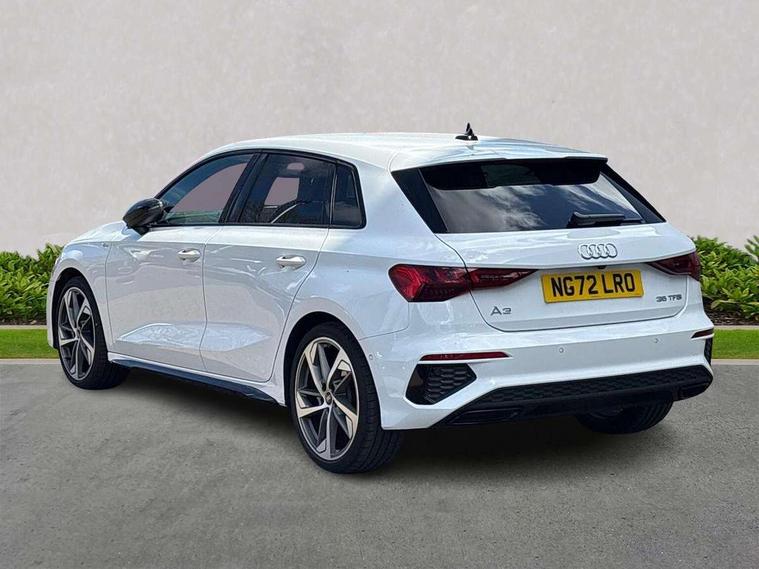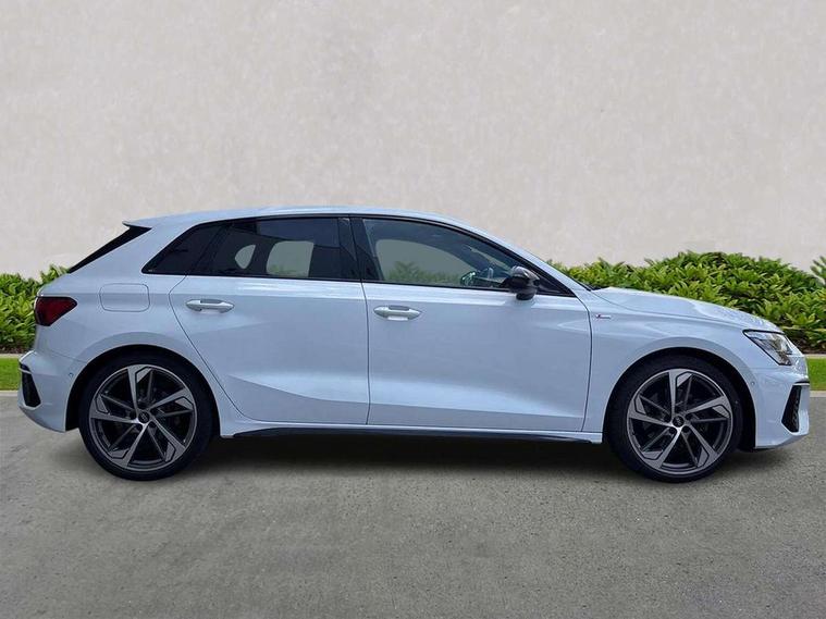 Audi drive select (Auto, Comfort, Dynamic, Efficiency and Individual), Audi smartphone interface, Audi virtual cockpit plus - 12.3" full HD resolution dynamic digital instrument cluster, Automatic start/stop system with recuperation, Bluetooth interface, Collision avoidance assistant, e-Call (emergency call), Electromechanical power speed sensitive steering, Lane departure warning system, MMI Navigation Plus with high resolution 10.1" colour touch screen display, Service indicator, Trip computer, Voice control system with natural language interaction, Sports suspension, 2xUSB-C connection with data and charging functions, 6 passive loudspeakers, DAB Digital radio, 3rd brake light, Acoustic glass windscreen, Audi matrix LED headlights, LED rear lights, dynamic front and rear indicators and headlight cleaning system, Auto dimming frameless rear view mirror, Body colour front spoiler blade, Electrically adj heated/folding + automatically dimming exterior mirrors + automatic kerb side function for passenger side exterior mirror, Front electric windows, Illuminated aluminium inserts front door sills with S logo, Integrated LED indicators in door mirrors, LED daytime running lights, Light and rain sensors, Privacy glass - dark tinted rear window, rear door and side windows, Rear diffuser in grained matt black, Rear electric windows, Rear side air outlets in grained matt black, Rear side wing doors, Rear wiper, S roof spoiler, 12V socket and storage compartment in front centre console, 3 seat bench in 2nd row, 4 way electrically adjustable lumbar support for driver and front passenger, 40/20/40 split folding rear seat bench with cupholder, Black cloth headlining, Dual zone electronic climate control, Electrically adjustable front seats for driver's side, Front and rear headrests, Front/rear floor mats, Heated front seats, Height and reach adjustable steering wheel, Illuminated vanity mirror, Interior lighting - glove compartment light and right hand side, Luggage compartment floor covering, Seat side bolsters, Single front passenger seat, Stainless steel pedals and front footrest in black, Aluminium interior elements pack - A3 Sportback, Black styling pack - A3 Sportback, Dinamica microfibre/mono.pur 550 artificial leather pack - A3 Sportback, Extended ambient lighting pack - A3 Sportback, LED interior lighting pack - A3 Sportback, 3x3 point rear seat belts, Audi pre sense front, Driver and front passenger airbag with passenger airbag deactivation, Electronic Stabilisation Control (ESC) including ABS, ASR and EDL, First aid kit with warning triangle and 2 safety vests, Front side airbags with head airbags and interaction airbag, Pre-sense front with pedestrian and cyclist detection, Seatbelt monitoring, Tyre pressure loss indicator, Anti theft alarm, Anti-theft wheel bolts, Electronically operated child lock, Immobiliser, Remote control central locking, Accent surfaces in the dashboard and centre console in platinum grey silk effect paint finish, Dark spectrum aluminium inlays, 19" 5 arm trapezoid design alloy wheels in titanium matt grey with diamond cut finish,