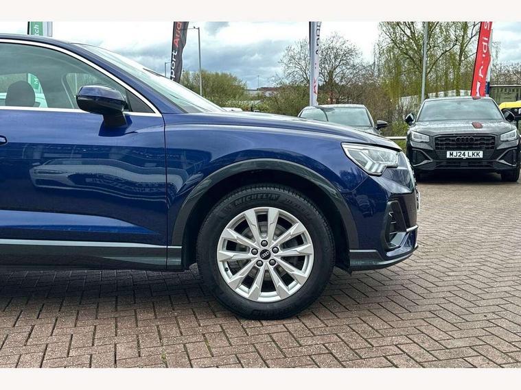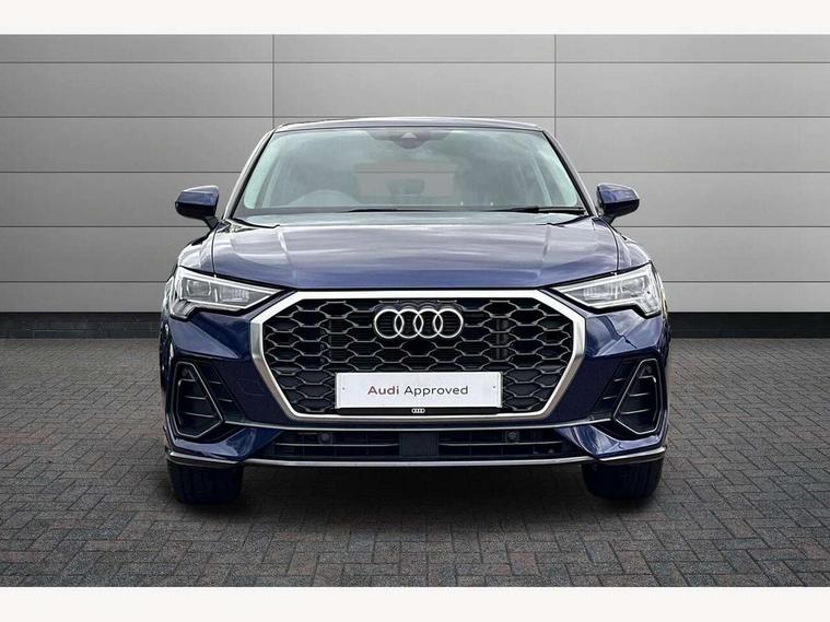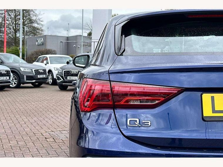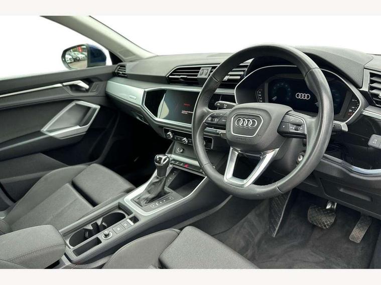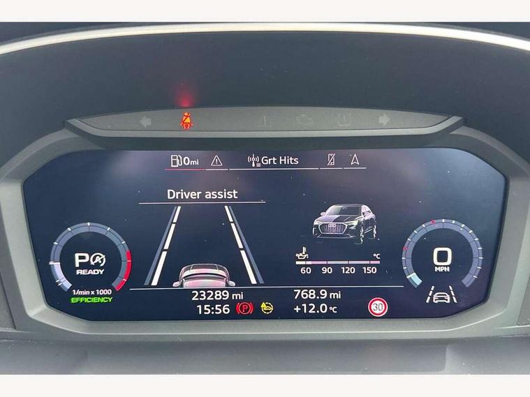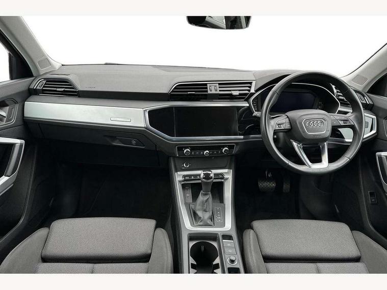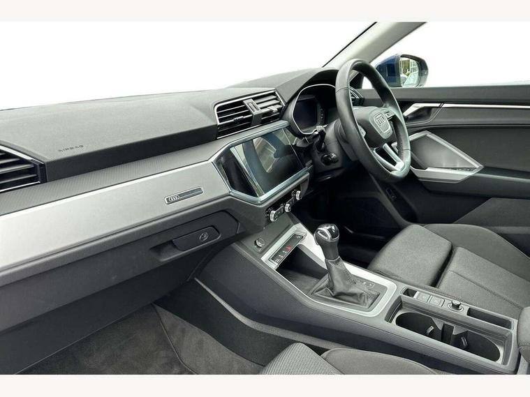 Audi drive select, Audi lane departure warning, Audi smartphone interface includes wireless Apple carplay/Android Auto, Audi Virtual Cockpit - 10.25" display, Bluetooth interface, Camera based traffic sign recognition, Legal emergency call, MMI Navigation Plus with high resolution 10.1 inch touchscreen colour display, Power operated tailgate, Progressive steering, Service interval indicator, Start stop system with recuperation, Voice control system with natural language interaction, Sports suspension, 2 USB-C ports with charge and data functions, 6 passive loudspeakers, DAB digital radio module, Acoustic windscreen, Aluminium window trim, Auto dimming door mirrors, Auto dimming frameless rear view mirror, Bumpers and underbody protection in contrasting manhattan grey paint finish, Diffuser grille in grained matt black, Diffuser trim in manhattan grey metallic, Door sill trims with illuminated aluminium inlay, Electrically folding, adjustable and heated door mirrors with integrated LED side indicators and kerb view function for passenger side, Front and rear electric windows, Front fog lights, Front side air inlets in Manhattan grey metallic, Grille surround in aluminium silver matt, High gloss black finish B and C pillars, Honeycomb design radiator grille in matt anthracite black, LED headlights with LED daytime running lights, LED third brake light, Rain and light sensors, Rear side wing doors, Rear wiper, Variable front intermittent wipers, 12V socket in rear centre console, 3 seat bench in 2nd row, 3 spoke multi-function leather steering wheel, 40:20:40 folding with manual adjustment for 60:40 forwards/backwards position and backrest angle, Dual zone electronic climate control, Electric lumbar support, Front and rear floor mats, Front and rear headrests, Front centre armrest, Height and reach adjustable steering wheel, ISOFIX child seat mounting for front passenger with airbag deactivation and outer rear seat including top tether attachment point for outer rear seats, Luggage compartment sill protection in stainless steel, Lunar silver cloth headlining, Manual front seats with height adjustment, Single front passenger seat, Non smoking pack - Q3, 3x3 point rear seatbelts, 6 airbags - Driver, front passenger, curtain and side windows, Audi pre-sense front with pedestrain and cyclist recognition, Electrically operated child locks on rear doors, Electromechanical parking brake, Electronic stabilisation control including ABS, ASR and EDL, Front seatbelt reminder, Hill descent control, Hill hold assist, Pre sense basic, Seatbelt monitoring, Tyre pressure warning, Warning triangle and first aid kit, Anti theft alarm, Anti theft wheel bolts, Immobiliser, Remote central locking, Aluminium look interior elements, Detail dashboard around MMI touch colour display in glass look, black with surround in aluminium look, Micrometallic silver inlay,