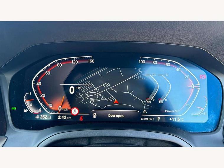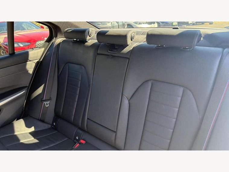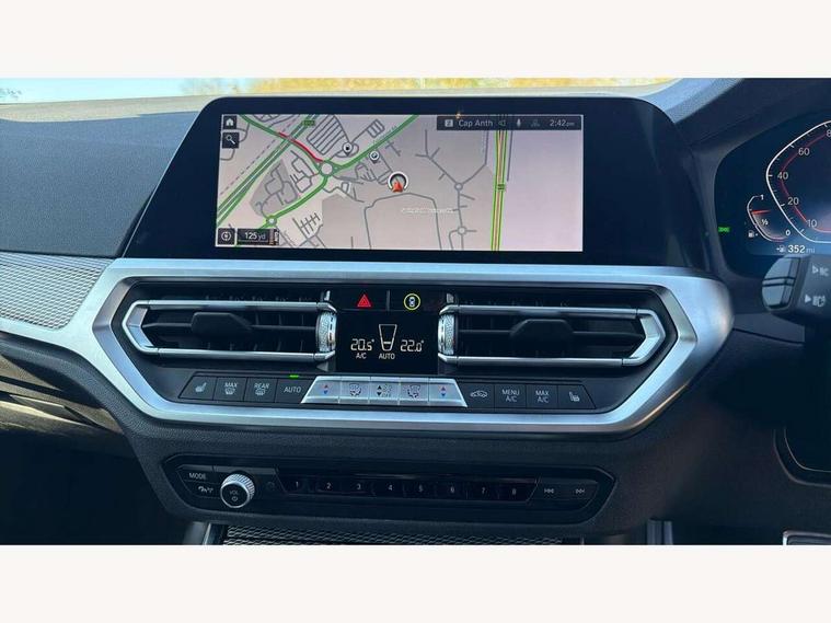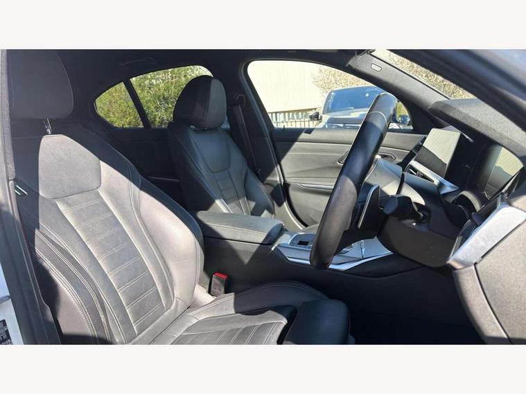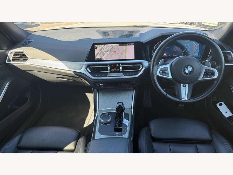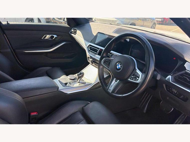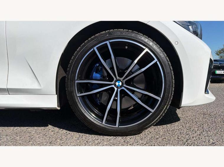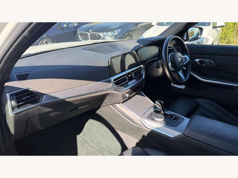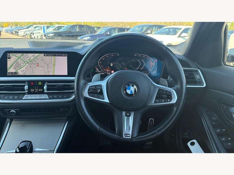 Active guard plus, Attentiveness assist, Auto start-stop, Bluetooth hands free facility with USB audio interface with audio streaming, BMW iDrive controller on centre console, BMW Live Cockpit Professional Nav with 12.3" instrument display + 10.25" display, Intelligent Voice Assist, BMW OS 7, HDD, 2USB, 4G LTE connect, BMW service history, BMW Teleservices, Brake pad wear indicator in front and rear, Check Control warning system for monitoring of lights and door/luggage compartment open warning, Condition based service, Cruise control with brake function + speed limiter, Electric power steering with Servotronic steering optimised at all speed ranges, Instrument cluster with speedometer with mph readout, tachometer, fuel gauge and oil temperature gauge, Integrated owners handbook, Oil sensor for level and grade, warning by check control system, On board computer - average speed+fuel consumption, service interval, clock/date, odometer/trip meter, outside temperature display and ice warning, Optimum shift indicator, Personal Profile - automatic lock when driving away selectable, Variable sport steering, Balanced 50/50 weight distribution, Battery cut-out switch, Drive performance control - ECO PRO, comfort and sport modes, Electronic differential lock control (EDLC), Larger capacity fuel tank, M sport suspension, Petrol Particulate Filter, Stroke dependent dampers, DAB tuner, Electronic service booklet, Stereo speaker system with 2 mid range speakers in the front door trims and rear parcel shelf + 2 central bass speakers underneath the front seats, Acoustic glazing, Active airstream chrome frame kidney grille with 8 high gloss black vertical slats, Automatic headlight beam throw control with load dependent regulating reaction, dynamic compensation of braking dive and acceleration squat, Black roof mouldings, Body colour door handles, Body colour front and rear bumpers, Body colour fuel filler flap, Body colour mirror caps with bottom segment in matt black, Dynamic brake lights, Electric windows - front and rear, with open/close fingertip control, anti-trap facility and comfort closing, Exhaust tailpipe - split left and right, Exterior mirrors - electrically folding with anti-dazzle, Fading support, Front and rear bumper system with replaceable deformation elements, Front black door sill finishers with BMW designation, Green tinted heat protection glazing, High gloss shadow line exterior trim, Interior rear view electrochromatic mirror with automatic anti dazzle function, LED daytime running lights, LED front fog lights, Lightweight engineering, M designation on front side panels, left and right, Matt black exterior B pillar, Model designation on right side of tailgate, Rain sensor with automatic headlight activation, Shark fin antenna, Two part LED tailights in L-shape with components in smoked glass, brake light, LED turn indicator and rear fog light, Visible VIN plate, Welcome lights in interior and door handle area, Windscreen wipers with integrated washing jets, xDrive designation on left tailgate, 12V power socket in front storage compartment, 2 front cupholder in centre console with clamping elements and matt black inlay, 3 rear seats with non folding headrests with 3 point seat belts, 3 zone automatic air conditioning, 4 pieces lashing eyelets in luggage compartment, 40:20:40 split folding rear seat with loading system, Ambient lighting with welcome carpet light, Anthracite headlining, Armrest integrated in front and rear door trim + front centre console armrest, Backrest width adjustment, Centred top Luggage compartment lights, Four grab handles integrated in roof lining, Front and rear door exit lighting (left / right), Front and rear door pockets, Front and rear reading lights, Front and rear velour floor mats, Front head restraints, Front sport seats, Heated front seats, Height adjustable mechanically and infinitely variable steering column, Illuminated armrest storage compartment, Illuminated glove compartment with separate small compartment, Interior lighting - front centre over interior mirror with soft light, rear centre and front and rear footwell lighting, M sport leather steering wheel, Make-up mirror lights, Rear centre armrest with 2 cupholders, Rear centre console with storage compartment and ventilation grille, Sunvisors with vanity mirrors and ticket pocket, Toolkit located in luggage compartment, Connected pack professional - 3 Series Saloon/Touring, M sport exterior styling pack - 3 Series Saloon/Touring, 2 tone horn, BMW emergency call, Brake energy regeneration, Braking pre-tensioning, Child proof locking system in rear door, Child seat ISOFIX attachment rear outer seats, Coasting in idle in ECO PRO mode, Crash sensor activating of airbags, Unlocking doors, hazard warning lights, interior light, safety battery terminal, Driver and front passenger side airbags, integrated in the door side seat backrest bolsters for all seat variants, Driver/Front Passenger airbags, Dry braking, Dynamic brake control, Dynamic stability control + (DSC+) - Anti-lock Braking System (ABS) with brake assist and cornering brake control + Automatic Stability Control (ASC), Dynamic Traction Control - DTC, Electric parking brake including automatic hold function and automatic release of the parking brake when driving off, Front passenger manual airbag deactivation, Head airbags for all 4 outer seats, Hill start assist, Seat belt security check for driver and front passenger, Side impact protection, Three 3 point seat belts on all seats including front belt stopper, pyrotechnic belt tensioners and belt force limiters, Tyre pressure monitoring with three level warning strategy, Ventilated front and rear disc brakes, Warning triangle and first aid kit, Alarm system (Thatcham 1) with remote control and electronic engine immobiliser, Central locking switch for all doors, fuel filler cap and luggage compartment, Remote control with integrated key one button open/close vehicle and windows, sole ope