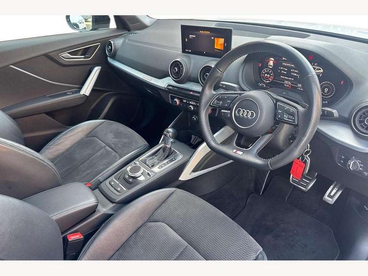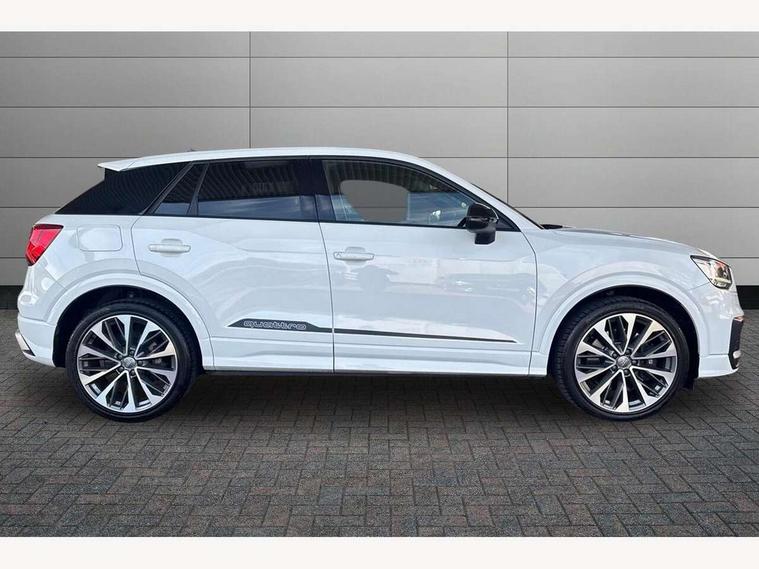 Audi drive select, Audi smartphone interface, Automatic start/stop system with recuperation, Bluetooth interface includes bluetooth audio streaming, Cruise control, Driver's information system - 3.5" colour display, Instrument dials with S logo, MMI SD card integrated nav with 3D map display, dynamic route guidance with TMC, MMI search, natural voice recognition and myAudi special destinations, Power operated tailgate, Progressive steering, Service interval indicator, S sports suspension with lowered by 20mm, 2 x SDXC card reader, Audi music interface - apple iPod, apple iPhone, USB storage media, compatible MP3 players, 2 x USB charging points and 1 x Aux-in, CD Drive, DAB digital radio and AM/FM radio, MMI radio plus with 7" colour MMI screen and MMI controller, Black window trims, Electrically adjustable and heated door mirrors with integrated LED side indicators, Enhanced rear spoiler, Exhaust tailpipes in black, Front and rear electric windows, Front windscreen with grey tinted sunband, Headlight washers, Interior mirror, LED headlights with LED rear lights + dynamic rear indicators, LED indicator lights, Manual folding door mirrors, Privacy glass - dark tinted rear and rear side windows from B-pillar backwards, Rain and light sensors, Rear wiper, S design body styling - underbody protection, SQ2 - front bumper with S design inlets, rear diffuser in silver and roof spoiler, S design radiator grille with horizontal struts and SQ2 logo, 3 spoke flat bottomed high multi-function leather sport steering wheel with gearshift paddles, 60/40 split folding rear seat bench, Black cloth headlining, Dual zone electronic climate control, Floor mats with contrast stitching, Front centre armrest, Front headrests, Front sport seats with S embossed logo, Height/reach adjust steering wheel, Illuminated door sill trims with S logo, ISOFIX child seat mounting for front passenger with airbag deactivation and outer rear seat including top tether attachment point for outer rear seats, Manual seat adjustment including seat height adjustment for front seats, Stainless steel pedals, Storage compartments - Glovebox, cupholder compartment in centre console, storage compartment in rear centre console, front and rear door pockets, Three rear headrests, Black styling pack - Q2, Extended interior upholstery pack - Q2, Non smoking pack - Q2, 3x3 point rear seatbelts, 6 airbags - Front, curtain and front side airbags, Electromechanical parking brake, Electronic stabilisation control including ABS, ASR and EDL, Extended and proactive pedestrian protection, Hill hold assist, Multi collision brake assist, Pre-sense front with pedestrian recognition, S model enhanced braking system, Seatbelt monitoring, Tyre pressure warning light, Warning triangle and first aid kit, Anti theft alarm, Anti theft wheel bolts, Central locking system with remote control key, Electronically operated child locks, Aluminium interior element, 19" 5 twin spoke V design alloy wheels with diamond cut finish,