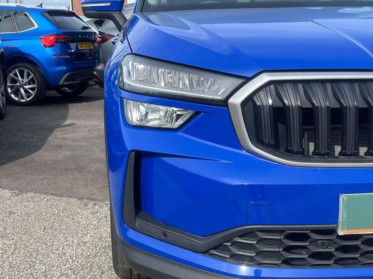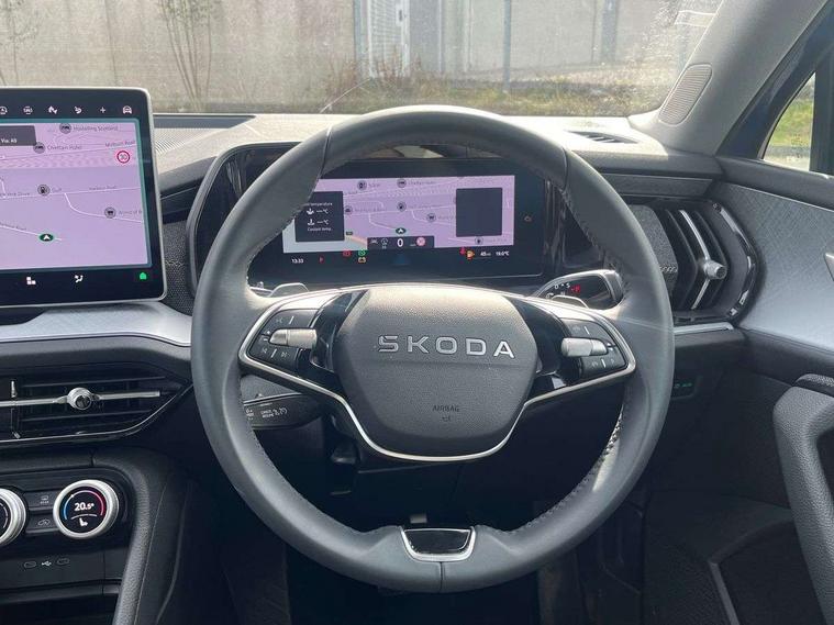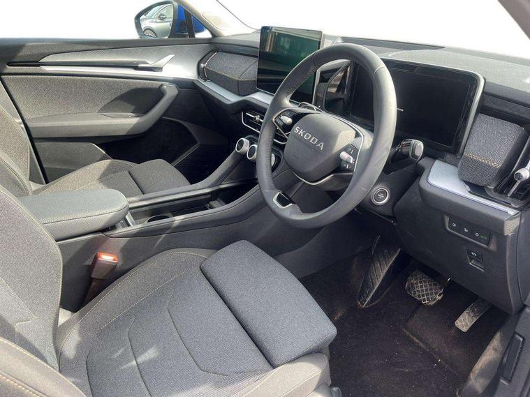 13" satellite navigation touchscreen display, Blind spot detection with door exit warning, Bluetooth system, ChatGPT functionality, Driver alert - Fatigue and drowsiness monitor, Dry display cleaner, Emergency call, Front and rear parking sensors, Front cross traffic assist, Lane assist, PAS, Rear traffic assist, Rear view camera, Tailgate unlocking from outside, Traffic sign recognition, USB C Port x 2 in front centre console, Virtual Cockpit - 10.25" digital display, Voice control system, Wireless charging for two smartphones (15W) with cooling function, Wireless SmartLink for Apple CarPlay and Android Auto, Stop/start function, 2x USB-C in the rear, 8 Speakers, DAB Digital radio, Aero front windscreen wipers with intermittent function, All weather light, Auto dimming rear view mirror, Black wheel arch surrounds, Body colour bumpers, Body colour door mirrors and handles, Cornering light and poor weather light, Electric folding /adjustable/separted heated/folding door mirrors, auto dimming with boarding sports and memory function, Electric front and rear windows, Exterior black decorative trims, Heat insulating glass in windshield, Heated rear window, Ice scraper in fuel tank cap, Invisible tailpipe, LED daytime running lights, LED front fog lamps, LED Headlights, LED rear fog light, LED rear lights, LED third brake light in rear spoiler, Light assistant with automatic headlight control and coming home feature, Logo projection in door mirrors, Rear roof spoiler, Rear side wing doors, Rear window wiper, Safety reflectors on front and rear doors, Unique dark chrome design logo on alloy wheels, Window control switches with black trim, Windscreen wipers with rain sensor, Without engine designation, 1.5l bottle holder points in all door, 1x centre rear reading light, 2 seat bench in 3rd row, 3 configurable smart dials with 32mm coloured display, 3 seat bench in 2nd row, 4 foldable roof handles with rear coat hooks, Ambient interior lighting - Dashboard, front-door stowage compartments, front and rear door panels and footwell lighting, Automatic gear selector on steering column, Chrome interior door handles, Driver/front passenger reading lights, Fabric headlining, Fixed bench 40:60:40 split folding backrests, Front and rear floor mats, Front centre armrest with jumbo box storage compartment, cup holder and 12V socket, Height adjustable front headrests, Isofix child seat fittings in outer middle row rear seats and front passenger with top tether, Manual height adjustment for front passenger seats and thigh support extender, Manual lumbar support for front passenger seat, Manually adjustable steering column, Pollen filter, Rear centre armrest with cupholders, Rear seat boot backrest release, Single front passenger seat, Skoda lettering on steering wheel, Storage pocket including mobile phone pockets on the backs of the front seats, Sunvisors with illuminated vanity mirrors, Three rear height adjustable headrests, Ticket holder on A Pillar, Tri zone climate control, Umbrella in door panel x1 made from sustainable materials, Upper and lower glovebox with card holder and coin compartment, USB C port by rear view mirror for charging only (15W), Variable boot floor, Auto door release and activation of warning lights in the event of an accident, Driver and front passenger airbag with knee airbag and front passenger airbag deactivation, Electric child locks, Electronic parking brake, ESC (incl. ABS+EMD+MSR+ASR+EDL+HBA+DSR+RBS+ESBS+MCB+TSA+XDS), Front assist with braking reaction to vehicles, pedestrians and cyclists, Front disc brakes, Fuel cut off safety device, Height adjustable front 3 point seatbelts + pretensioners, Hill hold assist, Junction assist with automatic emergency braking, Rear disc brakes, Safety vest holder in door, Seat belt reminder for all seats, Three point rear seat belts, Two tone horn, Tyre pressure monitor, Alarm with interior monitoring and tilt sensor with safe function, Anti-theft wheel bolts, Immobiliser, Remote central locking with 2 keys, Breakdown kit, Tool kit,