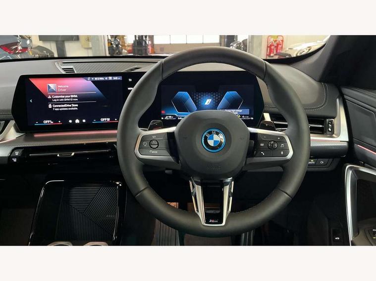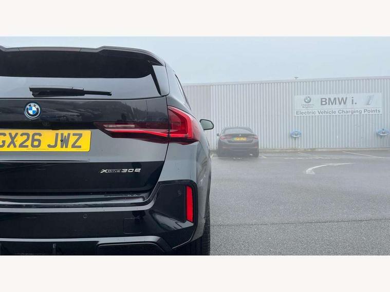 Attentiveness assist, Automatic start/stop function, BMW Live Cockpit Plus with 10.25" instrument cluster and 10.7" display, BMW Operating system 9 with BMW Maps, real-time traffic information, in-car experiences, remote services and smartphone integration, BMW Teleservices, Brake pad wear indicator, Condition based service, Connected eDrive Services, Drive off assistant, Electrically opening/closing tailgate with opening/closing with remote control and contactless opening and closing, Flat air vents on instrument panel in high gloss black, adjustable slats with elements in pearl chrome, iDrive controller, Language version English, My Modes, Parking Assistant with Reversing Assistant, active PDC, Lateral Parking Aid, Rear View Camera and Park Distance Control, Personal Profile - automatic lock when driving away selectable, Servotronic PAS, Tyre puncture warning system, Widescreen display, 11 kW AC charging power, eDrive exterior sound, EU6 emissions management, Fast charging cable professional mode 3 for public charging, Gear selector switch with toggle operation, M Adaptive suspension, Performance Control, Petrol Particulate Filter, Steptronic transmission with double clutch and gear shift paddles, xDrive intelligent four wheel drive system, BMW Personal eSim, DAB Digital radio, Badge on engine compartment lid and tailgate, Body colour door mirrors, Dynamic brake lights, Electric adjustable heated door mirrors, Electric windows - front and rear, with open/close fingertip control, anti-trap facility and comfort closing, Exterior mirror including electric fold in function, Folding door handles integrated flush with surface, Follow me home headlights, Front and rear bumper panel with M specific design, in body colour with inserts in black high gloss, Front door exit lights, Heated rear window, High gloss shadowline, Invisible exhaust tailpipe, Key with M identification, LED 3rd brake light integrated in rear roof spoiler, LED daytime running lights, LED number plate light, M identification on the sides, M roof rails high gloss shadow line, M specific radiator grille in satinated aluminium, Matt black roof strips, Model inscription on right tailgate, Rain sensor including auto headlights activation, Rear side wing doors, Rear wiper, Sill cover in body colour, Trailer stabilisation logic, Window washer nozzle for rear view camera, Windscreen wipers front with heated washer nozzles, 12V - Power sockets with front centre console and luggage compartment, 2 bag hooks in luggage compartment, 2 cup holders in front, 2 front reading lights, 2 rear centre reading lights, 2 x USB Type C ports for charging in front centre console + 1 x USB Type C ports for charging in rear centre console, 3 rear headrests, 3 seat bench in 2nd row, 3 upper retaining strap clips integrated into rear panels of seat backrests, 4 grab handles, 40:20:40 split folding rear seats, Ambient interior lighting, Anthracite headlining, Anthracite Velour front and rear floormats, Bottle trays in all doors, Child seat ISOFIX attachment for two outer rear seats and front passenger seat with anchorage points, Clothes hook rear, Driver and front passenger heated seats, Dual zone automatic air conditioning, Footrest and pedals in black plastic, Front and rear door pockets, Front and rear footwell lighting, Front armrest with integrated control panel, Front centre console storage compartment, Front centre console trim in black high-gloss, Front/rear adjustable head restraints, Glove compartment, Interior door handle recess light on all doors, Light on right in luggage compartment, M sport leather steering wheel, Manual steering column height and depth adjustment, Middle centre console storage compartment, One piece parcel shelf opens together with tailgate and removable, Rear armrest in door trim panel, Single front passenger seat, Sport leather multifunction steering wheel with thumbrests and operation of instrument display, audio, telephone and driver assistance, Storage compartment lighting in centre console and storage tray in centre stack, Storage compartment net in left side trim panel, Storage compartment with folding cover under centre console armrest cushion, Storage tray in right side trim panel, Sun visors with illuminated vanity mirrors, Tilt adjustment incl. cargo function of 2nd row of seats, Vanity mirror lights, ABS/EBD, Automatic hold function, Automatic Stability Control (ASC), BMW emergency call, Braking readiness, Cornering brake control (CBC), Crash Sensor - activates hazard/interior lighting + unlocks doors, Driver/Front Passenger airbags, Driver/front passenger side airbags, Dry braking, Dynamic brake control, Dynamic stability control + (DSC+), Electromechanical parking brake, Energy recovery system, First aid kit, Front and rear brake discs, Front and rear head airbags, Front passenger airbag deactivation, Integrated brake system, PC iBrake PostCrash approach control warning with light braking function, Rear door child safety locks, Three point seat belts in all seats, Tyre pressure monitor, Warning triangle, Alarm system with tilt sensor, monitoring doors, bonnet interior and tailgate, Closing system with central locking, Locking wheel bolts, Luxury instrument panel, Tyre repair kit plus,
