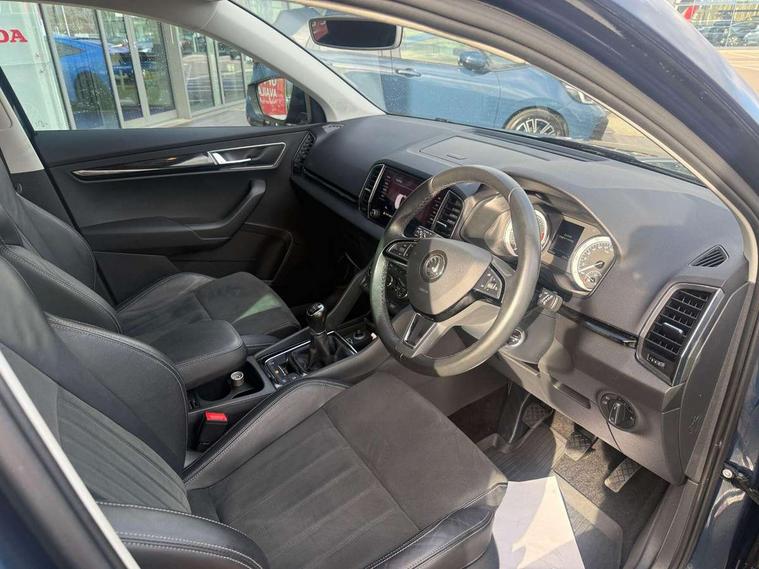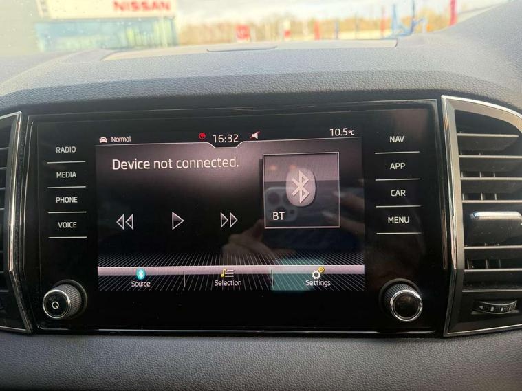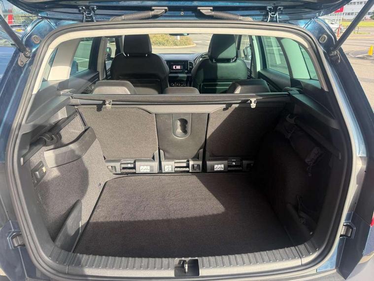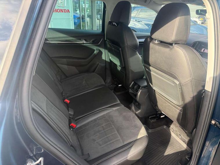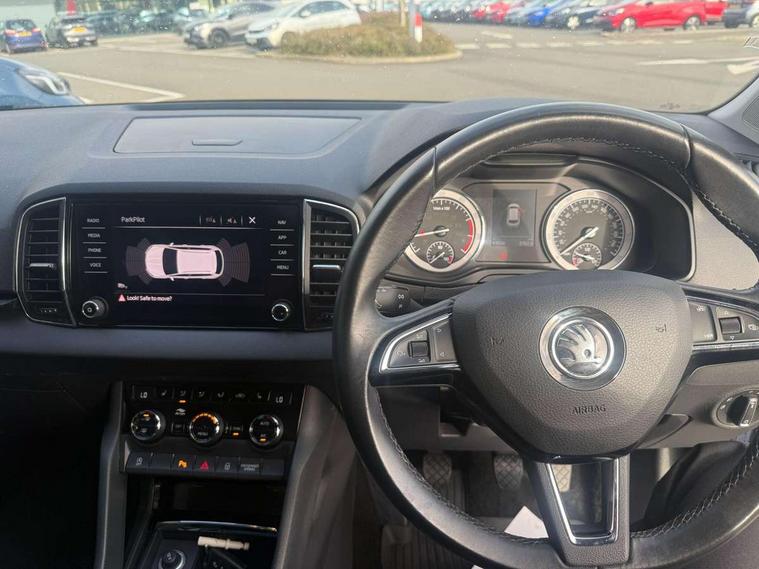 Drive mode selector, Driver alert system, Driver fatigue sensor, Driver profile selection, Multifunction colour trip computer, Outside temperature gauge, Rear view camera, Service interval indicator, Start/stop system with regenerative braking, DAB radio with Bluetooth, SD card slot, USB connection, Acoustic glass, Aero front windscreen wipers with intermittent function, Automatic headlight control system, Black electric window control buttons, Body colour door mirrors and handles, Body coloured bumpers, Electric front and rear windows with child proof lock, Full LED headlights + adaptive front light system + LED daytime running lights and front cornering fog lights, Headlight washers, Heated rear windscreen, LED rear lights with high functionality, Light assistant (coming/leaving home/tunnel light), Privacy glass, Safety reflectors on front doors, Third brake light, 1.5 litre bottle holders in driver and front passenger door panels, 12V socket in boot, 12v socket in front centre armrest with storage compartment and rear air vents, 2 Folding hooks and nets in boot, 2 Front readings lights for driver and passenger, 3 rear height adjustable headrests, 4 foldable roof handles with rear coat hooks, 4 lashing points on luggage floor, Backrest release, Cargo elements in boot, Chrome inner door handles, Dual zone climate control, Folding tables on the front seat backrests, Front seat and rear pockets, Height adjustable front three point seats belts with tensioners, Height adjustable passenger seat, Height/reach adjust steering wheel, Ice scraper, Illuminated and cooled glovebox, Illuminated luggage compartment, Isofix child seat preparation outer rear, Net programme in boot, Pen holder, Pollen filter, Rear boot cover, Rear reading lights, Rear seats fixed folding and divided 60:40, Removable LED torch in the boot, Retractable parcel shelf attachable to tailgate, Safety vest holder, Storage box in upper central dashboard closed, Storage compartment below the passenger seat, Sunvisors with illuminated vanity mirrors, Textile floor mats, Umbrella under passenger seat, VarioFlex seats with retractable parcel shelf, Chrome roof rails + chrome pack - Kodiaq, Airbags - Front side, head, knee and curtain, Automatic door unlocking in case of crash, Automatic fuel cut off in case of crash, Driver airbag, Electronic parking brake with auto hold function, Emergency rear braking signal, ESC including ABS, MSR, ASR, EDS, HBA, DSR, RBS, MKB and traction control, Front assist radar scanning of the space in front of the car with automatic braking, Hill hold control, Passenger airbag with switch-off function, Pedestrian monitor, Seatbelt reminder signalisation and pretensioner for all seats, Three point seatbelts rear, Two tone horn, Tyre pressure display, Tyre pressure monitor, Alarm with interior monitoring, back up horn and tilt sensor with safe function, Electronic engine immobiliser, Keyless entry and keyless start with safe system, Remote central locking with 2 remote folding keys, Chrome framed air vents, Storage on wheel cover,