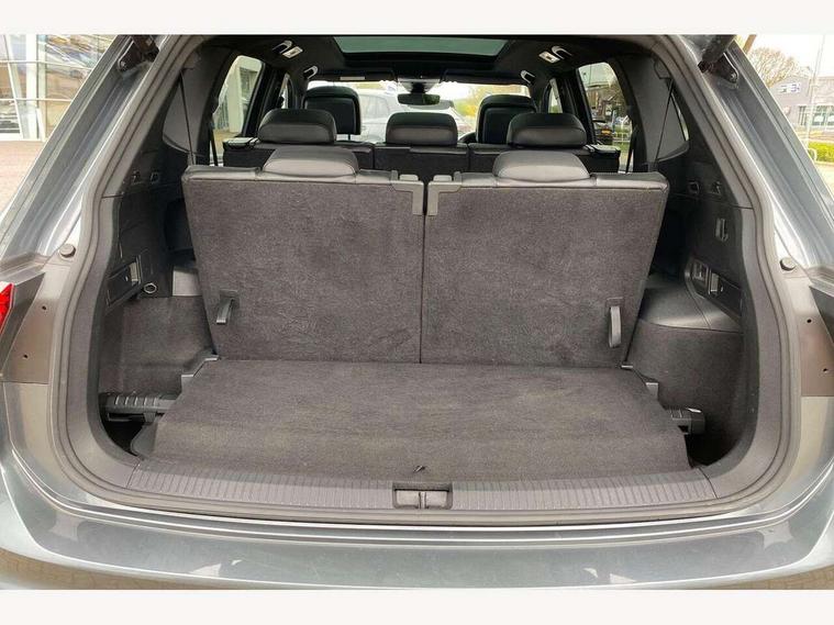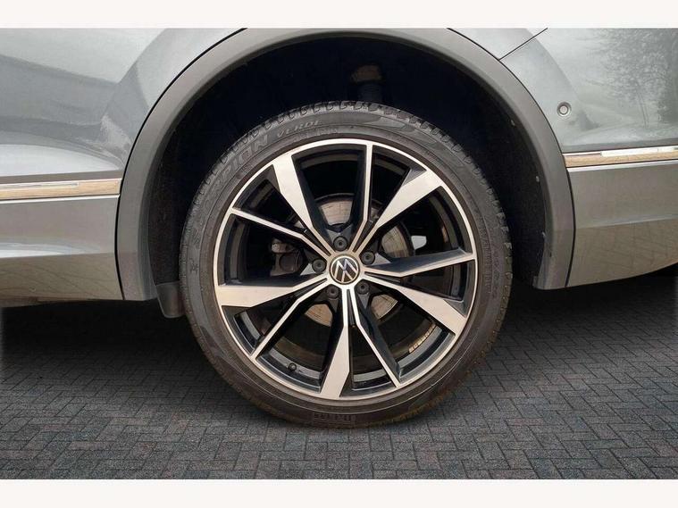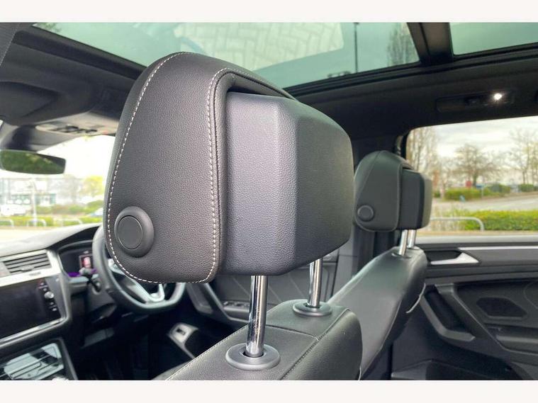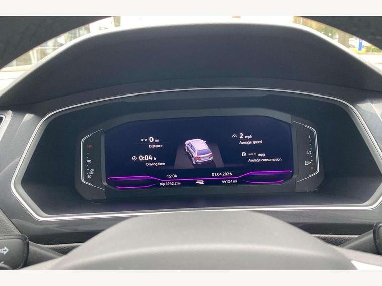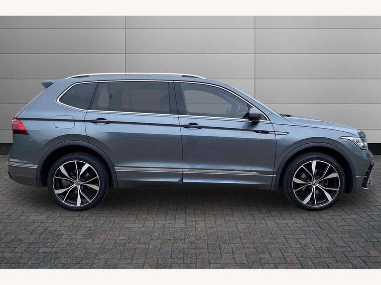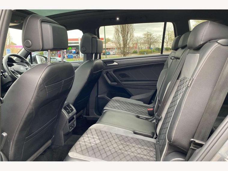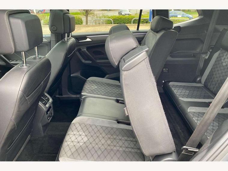 Adaptive cruise control, App-Connect, Digital cockpit pro, Driver alert system, Driver profile selection, Dynamic road sign display, eCall emergency call service, Electric boot lid, Lane change system side assist and rear traffic alert, Lane keeping system Lane Assist, Mobile phone interface comfort with inductive charging feature, Multifunction front facing camera, Progressive steering, Speedo and rev counter, electronic odometer, trip, service interval display and exterior temperature gauge, Diesel particulate filter, Front wheel drive, Start-stop system with battery regeneration (recuperation - energy recovery during braking), 2 USB-C ports in the front, 1 USB-C charging socket on the center console in the rear, 8 Speakers, DAB Digital radio, Diversity antenna for FM reception, Radio, Auto dimming interior rear view mirror, Automatic headlight control system, Body coloured bumpers in R Line style, Chrome mouldings on side window, Coming/leaving home lighting function, Dark red rear combination lamps in LED technology, Exterior badge deletion, Exterior mirror housings painted in silver, Headlight range control, Heated windscreen washer jets, LED headlamps with LED separate signature running light and dynamic cornering light, Poor weather light and cornering light, Privacy glass, Rain sensor, Rear fog light, Rear side wing doors, Rear spoiler in R style, Rear wiper, Silver roof rails, Third brake light, 12-volt outlet in centre console rear and luggage compartment, 12V socket in centre console, 3 head restraints in rear, 3 individual folding 2nd row seats, 3rd row 2 individual seats, Air Care Climatronic 3 zone automatic climate control with enhanced air filter and controls in the rear, Black roof lining, Door and side trim panel with leatherette insert, Drawers under front seats, Driver and front passenger seat height adjustment, Foldable front passenger seat backrest, Front + rear carpet mats, Front centre armrest, Front footwell illumination, Heated front seats, Heated leather wrapped multifunction sports steering wheel with touch control and shift paddles, Illuminated scuff plates, ISOFIX anchorage points for mounting 2 child seats on rear seats and i-Size child seats, Leather gearshift handle, LED interior light with switch off delay/dimmer and 2 front/rear LED reading lights, Stainless steel pedals, Sun visors with illuminated vanity mirrors, Ambience pack - Tiguan Allspace R Line, Driver assistance plus package - Tiguan Allspace, Park assist pack - Tiguan Allspace, 3 point seat belt for centre rear seat, 3 rear three point seatbelts, ABS+EBD+Brake assist, Driver and front passenger safety-optimised head restraints, Driver's and front passenger's airbag with front passenger's airbag deactivation switch, Electronic parking brake, Electronic Stability Control (ESC) inc EDL (Electronic Differential Lock) and ASR (Traction Control), Height adjustable front 3 point seatbelts + pretensioners, Manual rear child locks, Pedestrian monitoring, PreCrash preventive occupant protection Front and rear, Rear disc brakes, Side airbag in front and rear with curtain airbag, Two tone horn, Warning buzzer for seatbelts if unfastened, Anti theft alarm system with interior monitoring, backup horn and towing protection, Anti-theft wheel bolts, Electronic steering lock, Remote central locking with 2 remote folding keys, 20" Misano black with diamond turned surface alloy wheels with Airstop tyres,