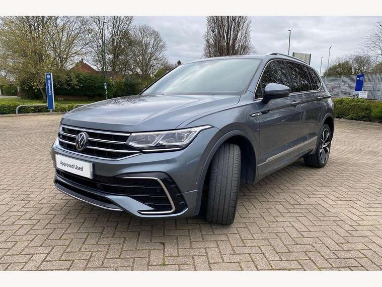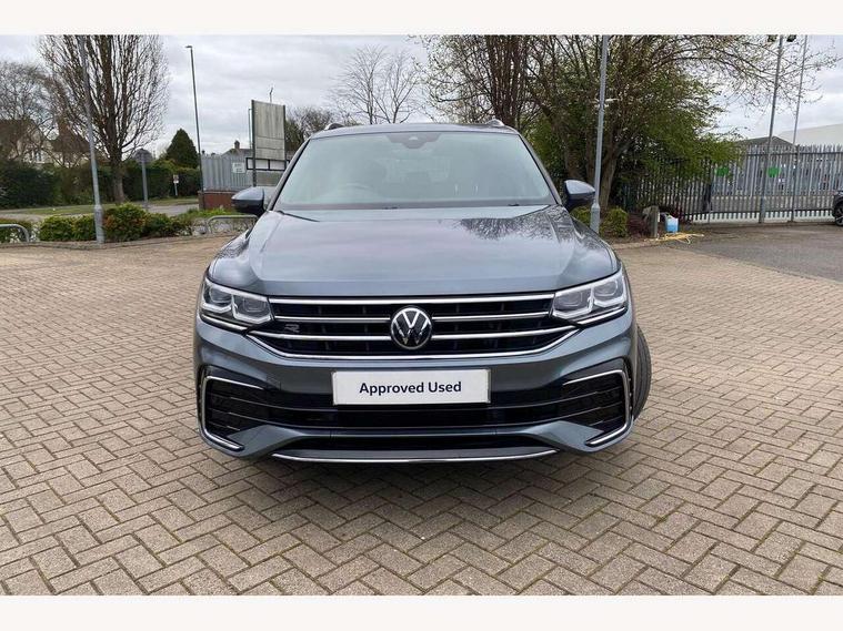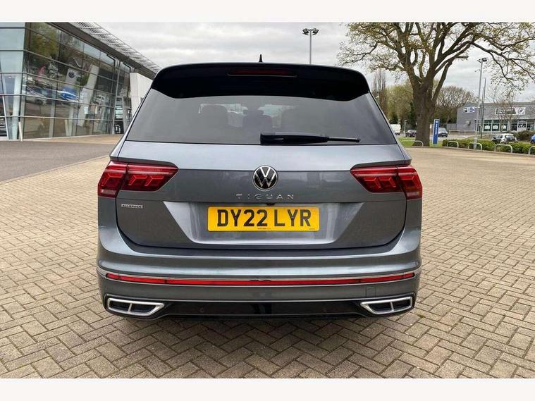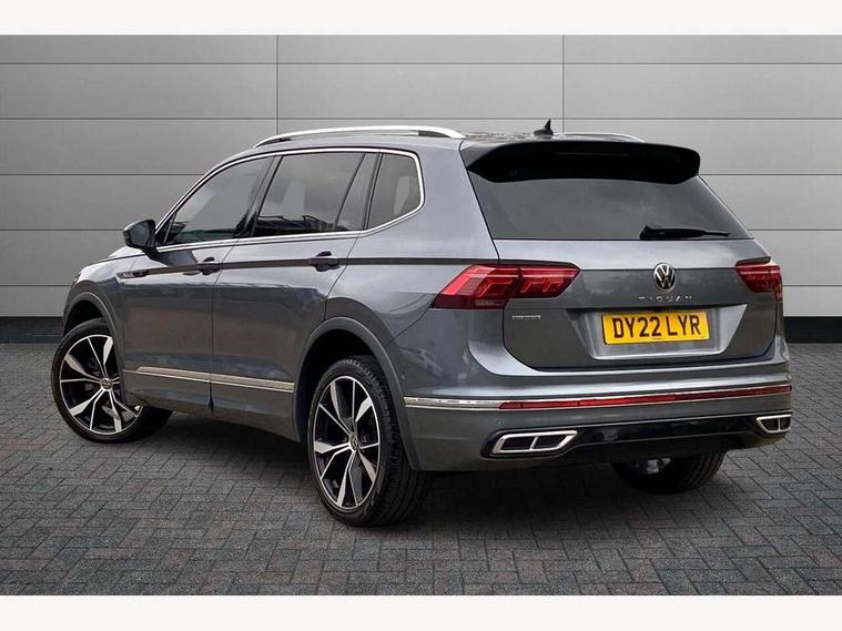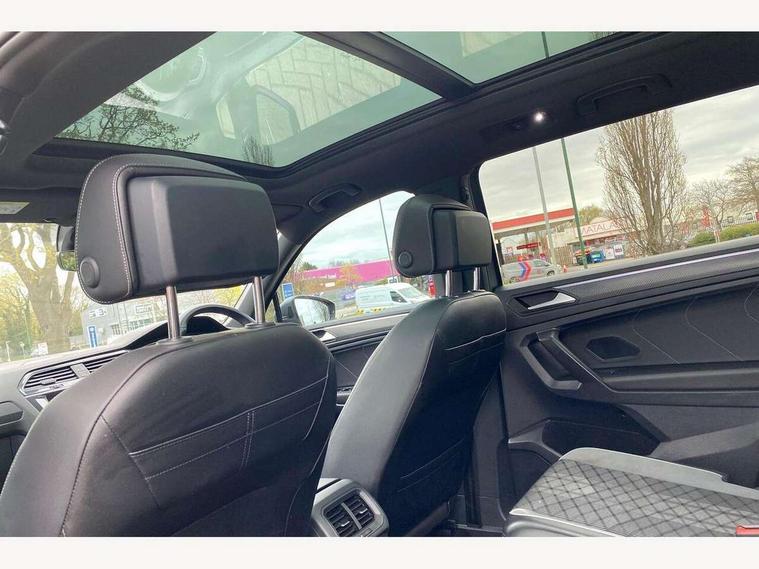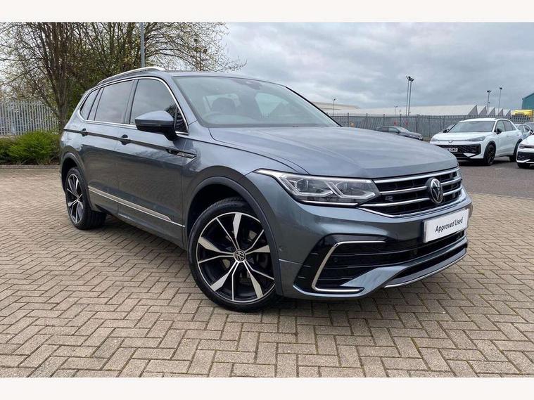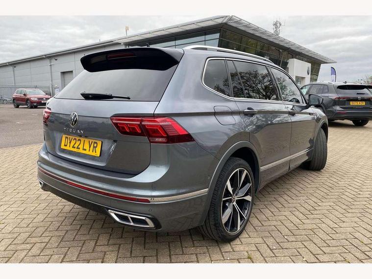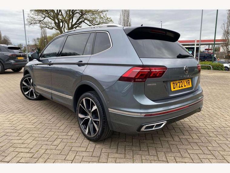 Adaptive cruise control, App-Connect, Digital cockpit pro, Driver alert system, Driver profile selection, Dynamic road sign display, eCall emergency call service, Electric boot lid, Lane change system side assist and rear traffic alert, Lane keeping system Lane Assist, Mobile phone interface comfort with inductive charging feature, Multifunction front facing camera, Progressive steering, Speedo and rev counter, electronic odometer, trip, service interval display and exterior temperature gauge, Diesel particulate filter, Front wheel drive, Start-stop system with battery regeneration (recuperation - energy recovery during braking), 2 USB-C ports in the front, 1 USB-C charging socket on the center console in the rear, 8 Speakers, DAB Digital radio, Diversity antenna for FM reception, Radio, Auto dimming interior rear view mirror, Automatic headlight control system, Body coloured bumpers in R Line style, Chrome mouldings on side window, Coming/leaving home lighting function, Dark red rear combination lamps in LED technology, Exterior badge deletion, Exterior mirror housings painted in silver, Headlight range control, Heated windscreen washer jets, LED headlamps with LED separate signature running light and dynamic cornering light, Poor weather light and cornering light, Privacy glass, Rain sensor, Rear fog light, Rear side wing doors, Rear spoiler in R style, Rear wiper, Silver roof rails, Third brake light, 12-volt outlet in centre console rear and luggage compartment, 12V socket in centre console, 3 head restraints in rear, 3 individual folding 2nd row seats, 3rd row 2 individual seats, Air Care Climatronic 3 zone automatic climate control with enhanced air filter and controls in the rear, Black roof lining, Door and side trim panel with leatherette insert, Drawers under front seats, Driver and front passenger seat height adjustment, Foldable front passenger seat backrest, Front + rear carpet mats, Front centre armrest, Front footwell illumination, Heated front seats, Heated leather wrapped multifunction sports steering wheel with touch control and shift paddles, Illuminated scuff plates, ISOFIX anchorage points for mounting 2 child seats on rear seats and i-Size child seats, Leather gearshift handle, LED interior light with switch off delay/dimmer and 2 front/rear LED reading lights, Stainless steel pedals, Sun visors with illuminated vanity mirrors, Ambience pack - Tiguan Allspace R Line, Driver assistance plus package - Tiguan Allspace, Park assist pack - Tiguan Allspace, 3 point seat belt for centre rear seat, 3 rear three point seatbelts, ABS+EBD+Brake assist, Driver and front passenger safety-optimised head restraints, Driver's and front passenger's airbag with front passenger's airbag deactivation switch, Electronic parking brake, Electronic Stability Control (ESC) inc EDL (Electronic Differential Lock) and ASR (Traction Control), Height adjustable front 3 point seatbelts + pretensioners, Manual rear child locks, Pedestrian monitoring, PreCrash preventive occupant protection Front and rear, Rear disc brakes, Side airbag in front and rear with curtain airbag, Two tone horn, Warning buzzer for seatbelts if unfastened, Anti theft alarm system with interior monitoring, backup horn and towing protection, Anti-theft wheel bolts, Electronic steering lock, Remote central locking with 2 remote folding keys, 20" Misano black with diamond turned surface alloy wheels with Airstop tyres,