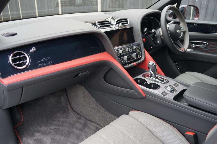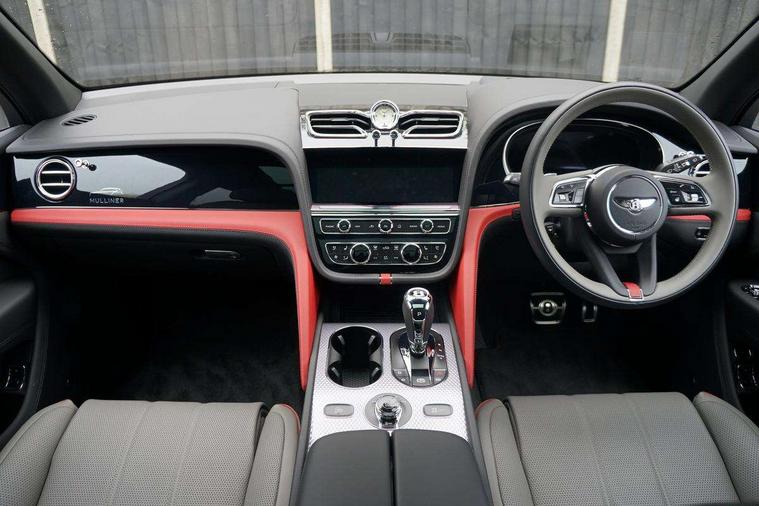 10.9" touch screen high resolution and configurable infotainment display and digital drivers information display, Advanced navigation function with text, search, 3D, satellite maps, speed limit, dynamic traffic route guide, telephone, Text-speech + voice, Bentley GPS tracking system full fitment, Bentley safeguard plus, Blind spot assist, Bluetooth and WIFI enabled, Emergency services call system, Four drive dynamics modes (bentley, comfort, sport, custom), Front/rear park distance control, Hands free power tailgate, MMI Screen, Mulliner clock, Mulliner driver's information panel graphics, My Bentley connected car services, Power latching to all doors for easy entry, Redesigned instrument panel lower trim rolls, incorporating a storage compartment on the passenger side, Seamlessly integrated technology with wireless apple car play and android auto, Speed sensitive variable ratio electric power steering, Touch screen remote, Traffic jam assist, Voice control system, Wireless phone charging compartment, Air suspension with continuous damping control, Bentley Dynamic ride with electronic all wheel steer, Permanent all wheel drive with centre torsen differential, DAB Digital radio, 3rd brake light, Acoustic rear privacy glass, Adaptive low beam, Auto dimming rear view mirror, Automatic headlights, Bentley badge in tailgate opening switch, Bentley lettering under the wings in tailgate, Black painted shark fin aerial, Body coloured lower bodywork - Standard paint range, Bright chromed matrix style grille to lower bumper apertures, Bumper design with large side intakes and sculptured surfaces, Elec/heat/adj/fold door mirror+memory, Electric tilt/slide panoramic sunroof, Fender design reduces over bodied perception, Fixed rear spoiler, Front and rear fog lamps, Full LED supplementary lamps and tail lamps, Full matrix LED headlamps with high beam assist, Full width clamshell design and deeply contoured rear tailgate panel, Heated rear windscreen, Illuminated treadplates, Jewel fuel and oil filler caps, Large dominant B shaped side wing vent front position, LED daytime running lights, Long fender vent above the power line on body side, Lower door side mouldings, Mulliner animated welcome lamps, Mulliner double diamond radiator grille bright, Mulliner self levelling wheel badge, Mulliner wing vent, Number plate aperture position under rear bumper, Oval split tailpipe, Phone antenna amplifier, Power close rear door, Rain sensing wipers, Rear side wing doors, Rear wiper, Roof rails, Satin monobeam silver painted mirror caps, Trailer sway mitigation, Tunnel detection for auto light control, V8 exterior badge, Wet arm wipers and heated water jets, 12V power in rear centre console, 12V socket in glovebox, 12V socket in luggage compartment, 3 seat bench in 2nd row, 4-Zone HVAC, Air Ioniser, Deep pile overmats to front and rear, Dinamica headlining and upper trim, Electric tilt and reach adjustment steering column with memory and easy entry function, Electronic accessory preparation, Embroidered Bentley emblems, Foams and cover design on all seats, Folding luggage compartment cover, Front and rear cupholders, Indented steering wheel, Interior mood lighting, Isofix attachments on outer rear seats, Load through facility, Lockable cooled glovebox, Luggage rails, Mulliner 3 colour key box and pouches, Mulliner seat embroidery, Rear dual window switches, Rear seat climate control, Single front passenger seat, Sports pedals, Stowage with instrument panel, doors (front and rear), armrests and console, Twin front armrests, Two metal bulls eye vents with organ stops and redesigned centre vents, Two type C USB ports front and rear, Wing pockets for small items, 4+1 seat configuration pack - Bentayga, Bentley airline seat specification pack - Bentayga, Bentley diamond illumination pack - Bentayga - Mulliner EWB, Harmony diamond quilt specification pack - Bentayga, Touring specification pack - Bentayga, 3 rear seatbelts, ABS/EBD, Child safety lock, EDL, Electronic park brake with move-off assist, Electronic tyre pressure monitoring, ESP + MSR + ASR, Exit warning, Front and rear head airbags, Front and rear thorax airbag system, Front passenger airbag deactivation, Front seatbelt pretensioners with force limiters, Hill descent function, Hydraulic Brake Assist (HBA), Rear outer seatbelt pretensioners with force limiters, Rollover mitigation, Side airbags, Traction control, Immobiliser, Keyless entry, Keyless ignition, Preparation for vehicle tracking, Remote central locking, Volumetric anti theft alarm, Mulliner 3D diamond milled finished to centre console, Veneered centre fascia panel, 22" Summer tyres,