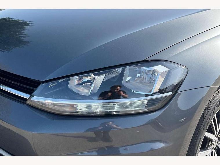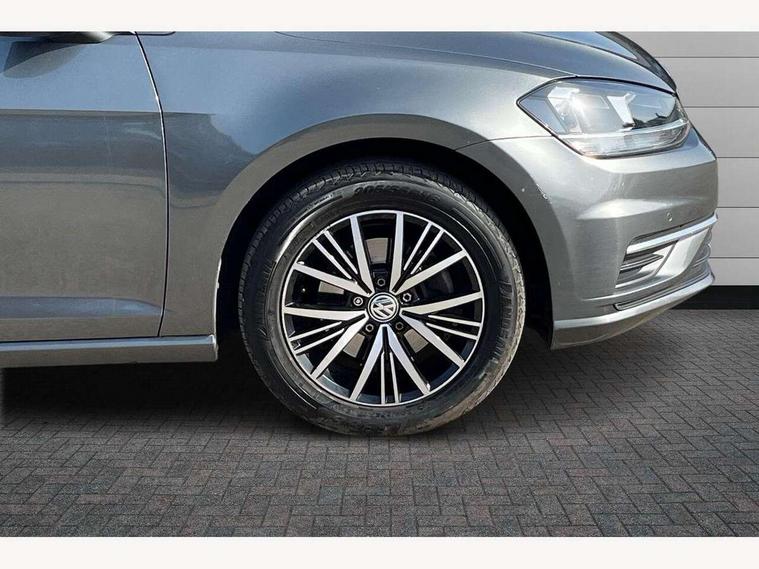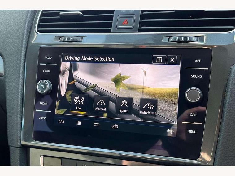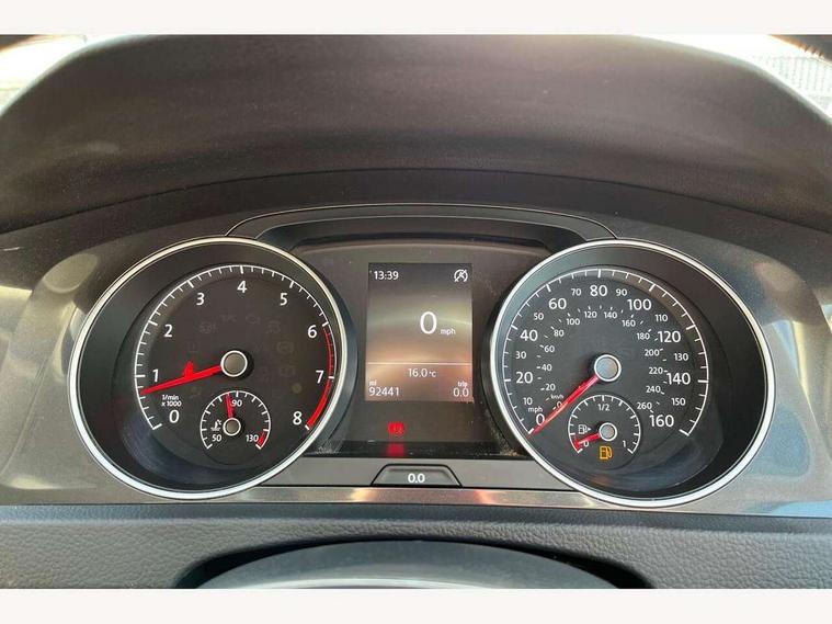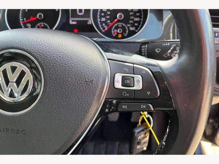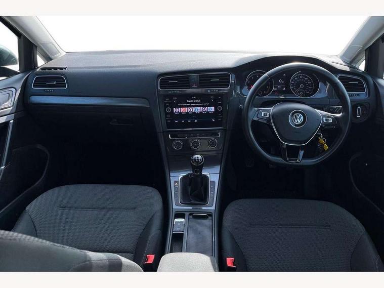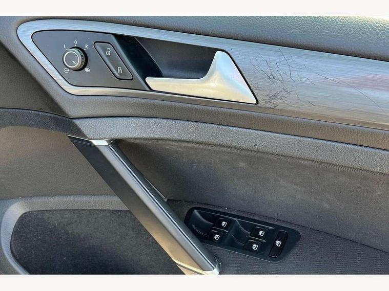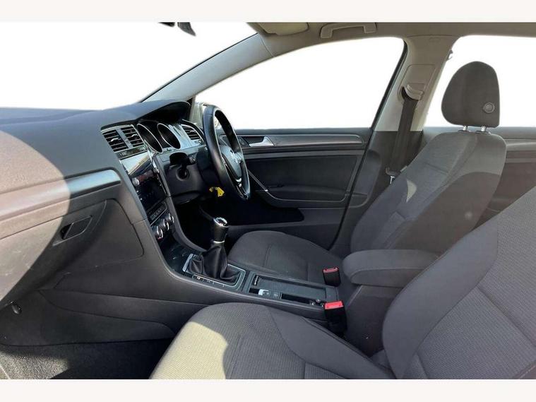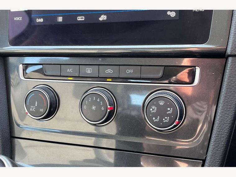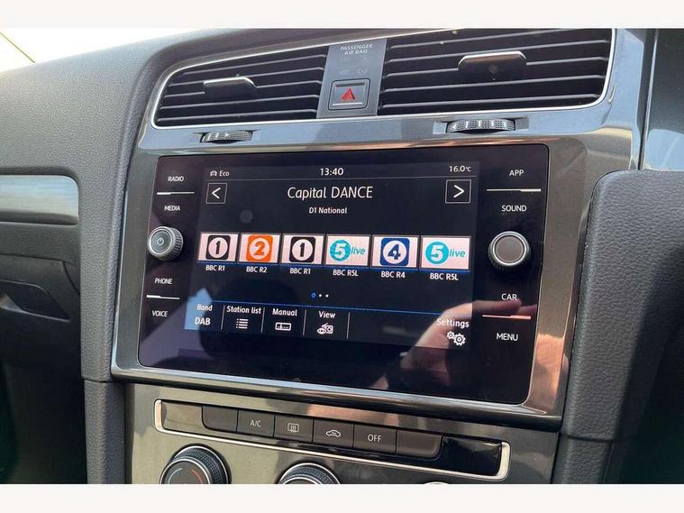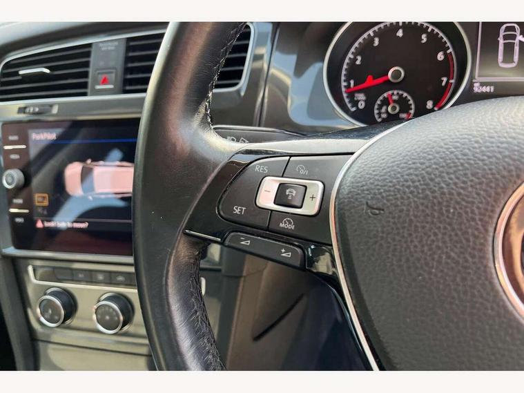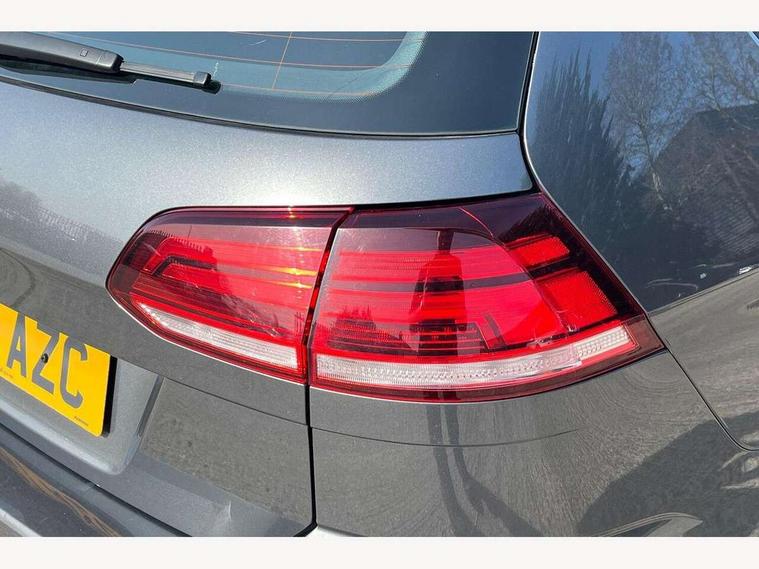 'Lights On' Reminder warning buzzer, 8" touch screen, Adaptive Cruise Control with pedestrian detection and speed limiter, App-Connect, Bluetooth hands free telephone connection, Brake pad wear indicator warning light, Driver alert system, Driver profile selection, Exterior temperature gauge, Instrument cluster in white, Multifunction computer, PAS - speed related, Rev counter, Trip and service interval display, Ultrasonic front and rear optical and audible parking sensors, Warning buzzer and light for front seatbelts unfastened, XDS electronic differential lock, CD/MP3/WMA, USB and SD card reader, aux-in, Composition media system, DAB Digital radio, Auto dimming rear view mirror, Automatic coming/leaving home lighting function, Automatic headlights, Black front air intake and radiator grille with chrome insert, Black rear diffuser, Black roof rails, Body colour bumpers, Body colour door handles, Body colour door mirrors, Electric front windows, Electric rear windows, Electrically adjustable and heated door mirrors, Heated rear windscreen, LED daytime running lights, LED rear lights, Rain sensor, Rear roof spoiler, Rear windscreen washer and wiper with interval delay, 12V socket in luggage compartment, 3 rear headrests, 3 spoke steering wheel, 60/40 split folding rear seat, Bag hook in luggage compartment, Boot lashing points, Cooled glovebox, Courtesy light delay, Cover for storage compartment in centre, Dust/pollen filter, Front and rear reading lights, Front centre armrest with storage box and rear air vents, Front passenger seat height adjust, Front seat back storage pockets, Grab handles, Height/reach adjust steering wheel, Illuminated vanity mirrors, Isofix preparation for 2 rear child seats, Load through provision with rear centre armrest and cupholders x2, Luggage compartment cover, Luggage compartment lighting, Multifunction leather steering wheel with leather gear knob/handbrake grip, Overhead storage box, Pearl grey headlining, Storage compartments in doors, Sun visors, Variable boot floor, height adjustable and removable, Mirror pack - Golf, 3 point height adj front seatbelts + pretensioners, 3 rear 3 point seatbelts, ABS, Automatic post collision braking, Child locks on rear doors, Driver/Front Passenger airbags, Driver/Passenger whiplash optimised head restraints, Drivers knee airbag, Electronic parking brake with auto hold, ESP with EDL + ASR, Front and rear curtain airbags, Front assist including city emergency braking, Front passenger airbag deactivation, Front side airbags, Pre crash system, Tyre pressure monitor, Alarm with interior protection, Electronic engine immobiliser, Locking wheel bolts, Remote central locking with 2 remote folding keys, Brushed dark metal decorative inserts in dash and front door panels, Chrome-plated light switch surround, Polar night black centre console, Steel space saver spare wheel,