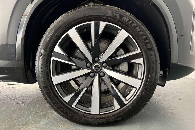 11.2" centre console touch screen, 12.3" Progressive Driver Display, 360 degree surround view parking camera with side proximity sensors, Adjustable steering wheel force, Apple carplay (wired), Bluetooth handsfree system, Driver alert control with lane keeping aid, Driver assistance (pilot assist and adaptive cruise control), Driver awareness - Blind spot information system with steer assist, cross traffic alert with autobrake and rear collision warning and mitigation, Driver monitoring system, Emergency call service, Front and rear park assist, Google Automotive Services - Navigation with Voice recoginition and google assistant, Handsfree power tailgate opening and closing, Intelligent speed assistance, Oncoming Lane Mitigation, PAS, Power operated tailgate, Service interval indicator, Speed sensitive steering, Trip computer, Volvo on call, Wireless/Inductive Mobile Phone Charging, 8 speed automatic transmission with start/stop + manual change functions, Active four C chassis - four corner adaptive dampers with electronic air suspension, DAB Radio (Digital Audio Broadcasting), Premium Sound by Harman Kardon, dirac unison, dolby pro logic II surround sound, 13 speakers/600W output and fresh air subwoofer, Steering wheel remote infotainment controls, Adaptive brake lights with high level LED brake lights, Auto dimming interior + exterior mirrors, Auto folding and heated power door mirrors, Automatic headlight levelling system, Automatic matrix LED headlights with Adaptive shadow technology and Active high beam, incorporating Day running lights, Body colour bumpers, Front and rear power windows, Headlight cleaning system, Heated front windscreen, High gloss black door mirrors and window surround, High gloss black front and rear bumper deco, High gloss black front grille and deco, Home safe and approach lighting, Integrated roof rails in high gloss black, Power glass tilt and slide panoramic sunroof with sun curtain, Puddle lights, Rain sensor with automatic windscreen wiper activation, Rear side wing doors, Rear wash/wipe with intermittent wipe setting, Roof antenna, Roof spoiler, Visible VIN plate, 12V socket in luggage compartment, 2nd Row centre armrest with and cupholders, 3 Spoke tailored sport steering wheel with chrome trim, 4 zone electronic climate control with Clean zone air quality system + pollen filter, A-pillar parking ticket holder, Air conditioning for 3rd row of seats, Air purifier PM2.5, Ambient door and instrument panel lighting, B Pillar ventilation, Bright metal luggage scuff plate, Centre console cupholders and storage, Floor mats, Front and rear courtesy lights, Front and rear door pocket illumination, Front footwell and side step illumination, Front headrests, Front reading lights, Front seat cushion extensions, Front tunnel storage illumination, Glovebox compartment light, Heated front seats, Heated rear seats, Heated steering wheel, Height/reach adjustable steering column, Illuminated front and rear aluminium tread plates, Illuminated luggage compartment, Illuminated tailgate, Illuminated vanity mirrors + ticket holder, Inner door release handle illumination, Isofix outer rear child seat preparation in 2nd row, Load cover, Load protection net, Lockable glovebox compartment, Luggage compartment divider with grocery bag holder, Outboard armrest with cupholder and storage for third row passengers, Power driver seat with multi directional lumbar support and memory for seat and exterior mirrors, Power folding 2nd row headrests, Power passenger seat with multi directional lumbar support and memory, Rear footwell and side step illumination, Rear headrests, Rear reading lights, Second row integrated child seat for centre seat, Single front passenger seat, Textile headlining, Three 2nd row individual folding passenger seats with fore/aft adjustment, Two 3rd row individual folding passenger seats, Underfloor luggage compartment storage, 7 three point seatbelts, City safety with steering support includes pedestrian, cyclist detection, front collision warning with full auto brake and rear auto brake, Driver and passenger airbags, Drivers knee airbag, First aid kit, Front seats SIPS airbags, Hill descent control - off drive mode, Hill start assist, IC (Inflatable Curtains) - Full Length, Passenger airbag cut-off switch, Power child locks on rear doors, Power parking brake with auto hold function, Road sign information display, Run off Road Protection, Seatbelt reminder and pretensioners for all seats, SIPS (Side Impact Protection System), Slippery road and hazard light alert, Stability and Traction Control with Spin control, Engine Drag Control and Corner Traction Control, Tyre pressure monitoring system, Vehicle deceleration control with Anti-lock Brake System, Electronic Brake Distribution and Emergency Brake Assist, Warning triangle, WHIPS whiplash protection system - front, 2x Key integrated remote control central locking + deadlocking system and auto open/close windows, Anti-theft alarm including immobiliser/volume sensor + level sensor, Keyless drive includes keyless entry and keyless start, Locking wheel nuts, Tailored instrument panel and door tops, Tempa spare wheel and jack,