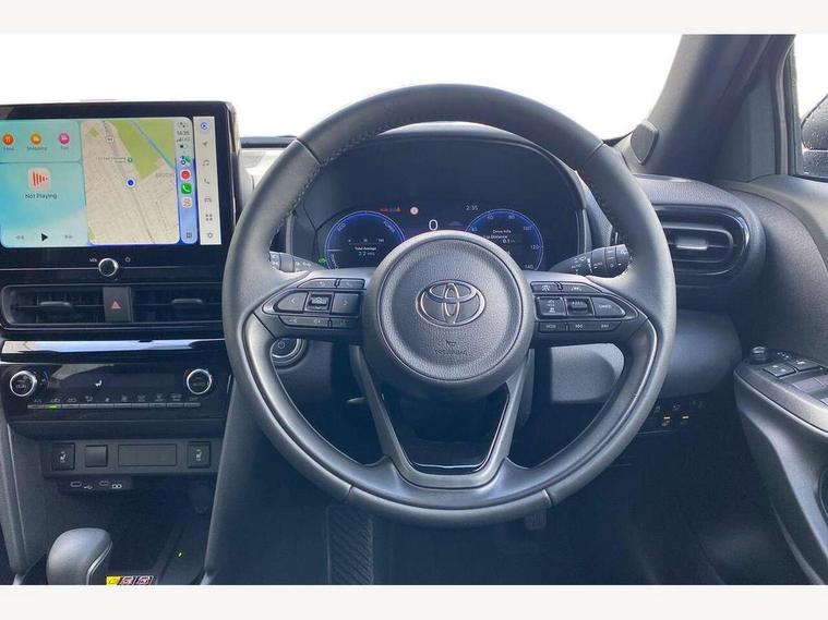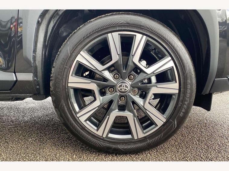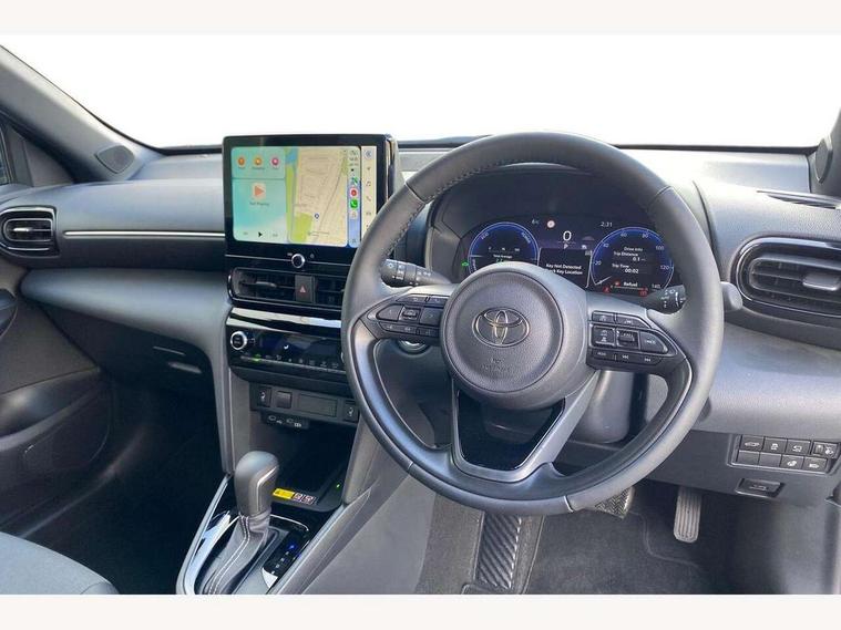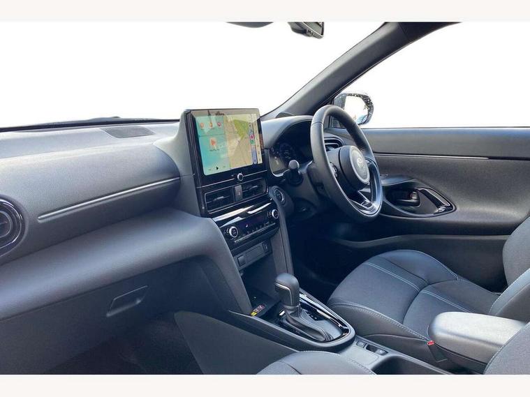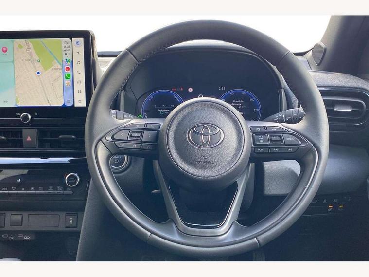 10.5" Multimedia display screen, 10.5" Toyota smart connect+ with navi multimedia system with wireless Smartphone integration incl Apple CarPlay, 360 degree panoramic view monitor, 7" Multi information display screen, Adaptive cruise control, multi info switches on steering wheel, Adjustable speed limiter, Advanced parking assist, Blind spot monitoring, Bluetooth connectivity, Color multi-information display, Digital speedometer, Digital tachometer, Drive mode selector, Driver attention alert system, Dynamic guide lines on reversing camera, eCall emergency system, Electric power steering, Emergency driving stop system, Full range intelligent adaptive cruise control, Hybrid system indicator, Intelligent front and rear parking sensors with clearance sonar and automatic braking, Intersection turn assist, Key reminder warning, Lane change assist, Lane trace assist, My T Connected services, Power tailgate, Pre-collision system enhanced with emergency steering assist, Rear cross traffic alert, Remote boot door release in cabin, Road sign assist - RSA, Safe exit assist, Tailgate, Telephone switch on steering wheel, Wireless Mobile Phone Charger, Steering assisted vehicle stability control, 6 speakers, DAB Digital radio, Front USB Type-C connector, Front USB-C device charger, Acoustic windscreen glass, Anti-jam protection on power windows, Auto dimming rear view mirror, Auto high beam [AHB] with on/off switch, Auto intermittent windscreen wipers, Automatic headlights, Automatic headlights cut-off, Automatically retractable door mirrors, Black door moulding, Black lower front grille, Black protection moulding on side doors, Black roof rails, Black wheel arch mouldings, Body colour door handles, Body colour front bumper, Body colour rear bumper, Electric adjustable heated door mirrors, Follow me home headlights, Front and rear electric windows with auto up/down function, Gloss black upper front grille, Headlight cut off reminder, Indicators integrated on door mirrors, Intermittent rear wiper, Kick activated power back door, LED 3rd brake light, LED daytime running lights guide, LED front fog lights, LED front light guide, LED Indicators, LED projector headlights, LED rear lights with sequential indicators, Manual headlight levelling, Meshed shape upper front grille, Noise reduction layer on windscreen, Pre wiring for towing hook, Privacy glass, Rain sensor, Rear roof spoiler, Rear side wing doors, Rear window defogger, Shark fin antenna, 12v power outlet - front, 12V power point in boot, 2x Rear coat hooks, 3 seat bench in 2nd row, 3 spoke leather steering wheel, 40/60 split deckboard, 40:20:40 split folding rear bench seat, Adjustable rear headrests, Adjustable speed limiter switch on steering wheel, Boot light, Central armrest, Driver and front passenger personal lights, Driver and front passenger Whiplash injury Lesseing seats, Driver and passenger seatback pockets, Dual zone automatic air conditioning, Fabric door trim, Front console box, Front cup holders, Front door pockets, Front head restraints, Front sport seats, Front/rear assist grips, Gear shift indicator, Grey roof lining, Heated driver and passenger seats, Heated steering wheel, Height adjustable driver's seat, Height adjustable front passenger seat, Hooks for luggage holding belts, ISOFIX child restraint system, Lane departure alert switch on steering control, Leather gearshift, LED centre room light, Light on driver and passenger sun visor, Manual telescopic and tilting steering wheel, Mirror on driver and passenger sun visor, Nanoe-X air purifier, Partial synthetic leather upholstery, Pollen air filter, Power adjustable lumbar support on driver seat, Rear cup holders, Rear door pockets, Rear head restraints, Remote air-conditioning system, Single compartment glovebox, Single front passenger seat, Soft tonneau cover, Storage box under boot floor, Voice recognition switch on steering wheel, White ambient lighting in centre console, White ambient lighting in footwell, White ambient lighting on front doors, Yaris cross floor mats, 3x3 point rear seat belts, ABS+EBD+Brake assist, Downhill Assist Control (DAC), Driver and passenger central airbags, Driver and passenger front airbags, Driver and passenger side airbags, Electronic parking brake, Emergency brake light system (EBS), Front seat belt reminder, Hill start assist control (HAC), Passenger airbag on/off switch, Pre-collision system with pedestrian and cyclist detection, Rear door child safety locks, Rear passenger side airbags, Rear seat belt reminder, Traction control, Tyre pressure warning system, Immobiliser, Intrusion alarm, Keyless smart entry with push button start, Power door locks, Power passenger window lock, Remote door lock, Gloss black side air vent surrounds, Tyre repair kit,