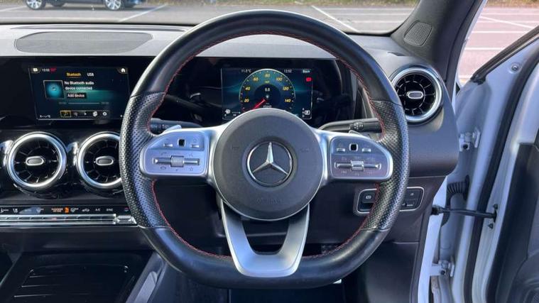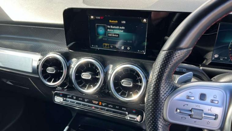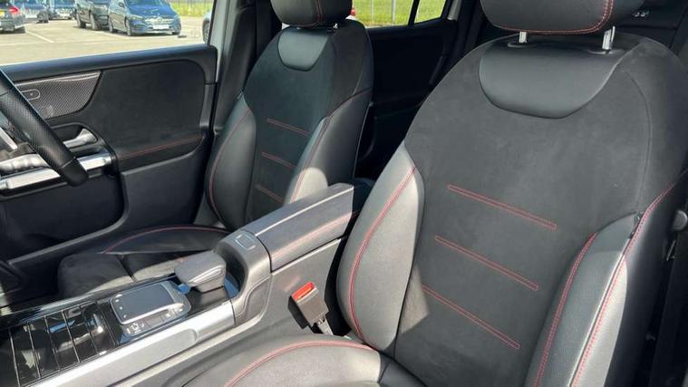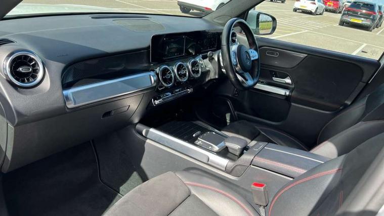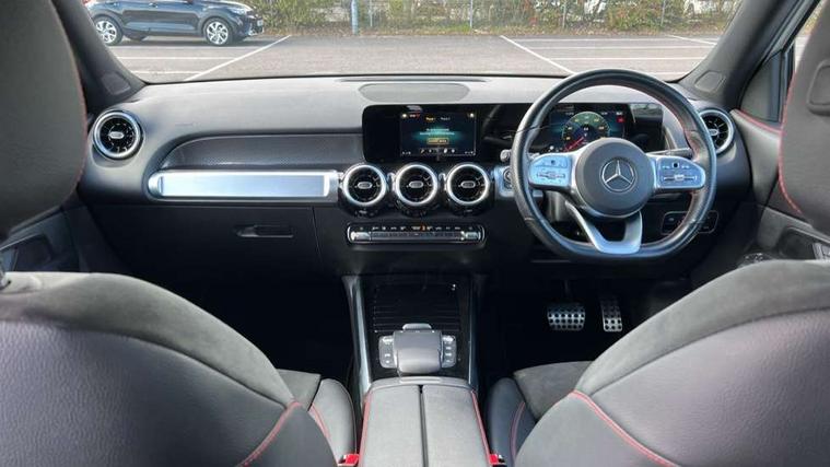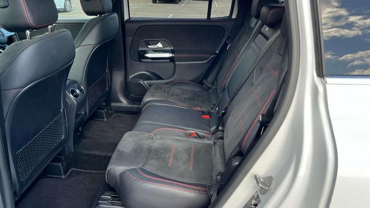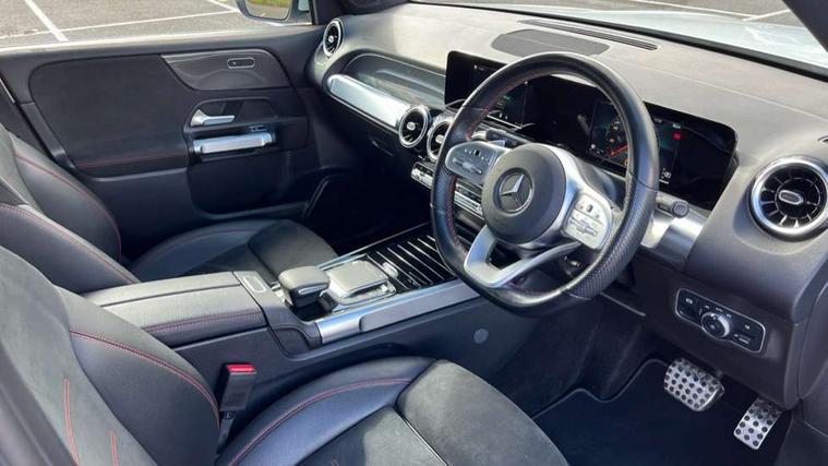 180 degree reversing camera, 7 inch digital instrument cluster display, Active lane keeping assist, Attention assist - Monitors steering behaviour and long journey fatigue, Brake pad wear indicator warning light, Car wash mode, Cruise control with limiter, DYNAMIC SELECT with a choice of driving modes (ECO, Comfort, Sport and Individual), ECO start/stop function, Fluid level warning indicator for fuel, oil, coolant and washer fluid, Hard disk navigation, Hey Mercedes Voice activation, Lamp failure indicator, MBUX multimedia system with DAB digital radio and touchpad including satellite navigation, Mercedes me connect including emergency call system, accident recovery, breakdown management and maintenance, Mercedes me remote services, Outside temperature gauge, Owners manual and service booklet in English, Parameter steering system, Pre-installation of private car share, Radio aerial integrated into front and rear windshields, Service indicator (ASSYST), Speed limit assist, Trip computer in multifunction display with current consumption indicator, Comfort suspension, Rear axle multi-link, 7 inch digital media screen display, DAB digital radio tuner, Mercedes Benz sound system (100 W) with 6 speakers, Pre installation for Mercedes Benz Link, USB (type C) port in front stowage compartment, USB (type C) ports (2) in stowage compartment, Adaptive brake lights, Aerial for GPS, AMG bodystyling door panels black grained with chrome plated inserts, AMG bodystyling front apron with chrome splitter, AMG bodystyling rear apron with diffuser optics and chrome trim element, AMG specific front and rear bumper including underride guard in high gloss chrome, Beltline strips and weather strip in chrome, Body coloured door handles, Body coloured door mirror caps, Electric adjustable and heated door mirrors with integrated LED side indicators, Exhaust system with dual flow exhaust pipes (non-functional), Front and rear electric windows, Headlamp assist automatic headlamp activation, Heated glass rear windscreen + timer control, High level LED third brake light, Interior mirror with black reading lamps and frameless, LED high performance headlamps with integrated LED daytime running lights, LED tail lamp, Polished aluminium roof rails, Privacy glass with dark tinting on rear side windows and rear window, Radiator grille with pins in chrome and single louvre with chrome insert, Rain sensor windscreen wipers, Rear fog lamp, Two visible tailpipe trim elements exhaust, 3 spoke multifunction sport steering wheel in nappa leather, Air conditioning - Two zone thermotronic luxury automatic climate control with display, AMG sports pedals with brushed stainless steel surfaces and black rubber studs, Artico man-made leather/Microfibre Dinamica upholstery with red contrast stitching, Automatic child seat recognition sensor, Black floor mats with AMG lettering, Black roof lining, Fore/aft adjustment rear seats, Freight packaging with tie-down hooks, Front centre armrest with stowage, Front door sills with Mercedes benz lettering, Front passenger grab handle with brushed side silver chrome, Galvanished gear shift paddles on steering wheel, Heated front seats, Height/reach adjustable steering column, Luggage net on driver/front passenger seat backrest, Rear armrest with two integral cup holders for drinks, Sports seats with adjustable head restraints, Stowage compartment in centre console, Stowage compartment with retractable cover, Third row of seats for two people on rear seat, Touchpad on center console, Twin front cup holders, Two outer rear seat isofix and top tether child seat fixing points, Interior lighting with light and sight pack - GLB, Seat comfort package - GLB, 3 rear 3 point seatbelts, Active bonnet pedestrain safety measure which detects an impact and raises bonnet by 65mm, Active brake assist includes forward collision warning system with autonomous braking, Adaptive brake assist with hold function and hill start assist, Airbags - kneebag for driver, Anti-lock braking system (ABS) with brake assist, Childproof locks manually operated for rear doors and electrically operated for rear power windows, Crash responsive emergency lighting, Curve dynamic assist, Driver and front passenger head and sidebags, Driver and front passenger windowbags, Dual stage driver and front passenger airbags, Electronic parking brake, Electronic stability programme with acceleration skid control, Front and rear seatbelt reminder, Front brake callipers with Mercedes Benz lettering, Front passenger seat occupancy sensor, Tyre pressure monitoring system, Warning triangle and first aid kit, KEYLESS-GO starting function, Remote central locking and crash sensor with emergency opening function, Thatcham category 1 alarm system with immobiliser and interior protection, Urban guard vehicle protection - Anti theft alarm system, tow away protection with visual and acoustic warning and alarm siren, Vehicle key with decorative surround in chrome, Black air vents with chrome surround, Carbon structure trim, 19" AMG 5 twin spoke light alloy wheels painted in tantalite grey with high sheen finish, Summer tyres, Tirefit tyre sealant kit,
