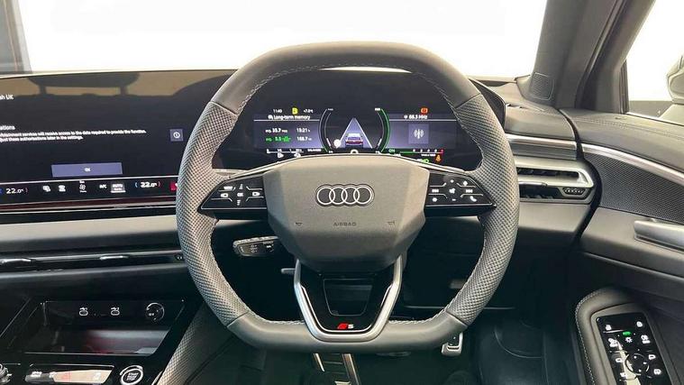 Adaptive cruise control, Advanced driver attention and fatigue montior, Audi application store, Audi assistant, Audi connect emergency call and service, Audi drive select, Audi virtual cockpit plus with 11.9" OLED colour display, Automatic start/stop system with coasting functionality, Camera based traffic sign recognition, Intersection assist, Lane departure warning, MMI navigation plus with high resolution 14.5" OLED touchscreen colour display, Park assist plus, Parking system plus with 360 display, Progressive steering with servotronic, Rear view camera, Smartphone interface, Swerve assist and turn assist, Traffic sign based speed limiter, Household plug type G, Hybrid propulsion system, Industrial connector CEE 32A, 230V, long and straight for the e-tron charging system, Mode 3 type 2 AC charging cable 22kW, Sports suspension lowered by 20mm, 2 USB-C ports in both the front and rear, DAB digital radio reception, Smartphone compartment with wireless charging, Aluminium roof rails, Aluminium window trims, Auto dimming rear view mirror, Body colour door mirrors, Door mirrors - electrically adjustable, heated, folding and auto dimming on both sides, Front and rear electric windows, Front door sill trims with aluminium inlays, illuminated with 'S' logo, High beam assist, LED headlights Plus incl. digital daytime running lights, turning light, all-weather light, motorway light, manouevring light and intersection light, LED rear lights pro incl. dynamic rear indicators and illuminated light strip with animated coming and leaving home function, LED third brake light, Privacy glass, Rear and side windows with heat insulating glass, Rear side wing doors, Rear wash/wipe, Removal of S line badge on the front wings, S line bumpers, radiator grille and diffuser in phantom black and diffuser insert in matt anthracite, White rhombus logo projection light in exterior mirrors, Windscreen with acoustic glazing, 3 rear headrests, 3 seat rear bench, 3 spoke leather steering wheel with multi-function buttons with touch control, flattened on top and bottom, with S badging and contrast stitching, 3-zone automatic climate control, 40:20:40 split folding rear seat bench with centre armrest and cup holders, Auxiliary air conditioning, Comfort front centre armrest, Front and rear floor mats, Front seats with manual adjustment for position and 4-way electric lumbar support, Front sport seats with integrated headrest and S embossed logo, Headlining in black cloth, Heated front seats, i-Size child seat mounting on the front passenger side and outer rear seats, i-Size and top tether on the outer rear seats, LED roof module front and rear including reading lights, Luggage compartment lid, electrically opening and closing, Manual steering column height and depth adjustment, Single front passenger seat, Stainless steel pedals and footrest, Steering wheel grips in perforated leather and shift paddles, Storage compartment lighting under the centre armrest, Ambient lighting package plus - A5, 3x3 point rear seat belts, Acoustic vehicle alerting system, Driver airbag, Electric child safety locks, First aid kit with warning triangle and vests, Front emergency brake assist, Front passenger airbag, Front passenger airbag deactivation, Front side airbags with head airbag system and front interaction airbag, Hill hold assist, Seat belt monitoring with rear seat occupant reminder, Tyre pressure loss indicator, Anti theft alarm, Anti-theft wheel bolts, Keyless Go, Accent surfaces and control buttons in gloss black, Black dashboard with contrast stitching, Inlays in matt brushed aluminium with linear embossing, anthracite, Softwrap in leatherette with contrast stitching, Upper and lower interior elements in leatherette, Tyre repair kit,