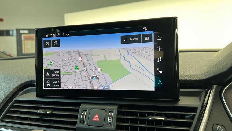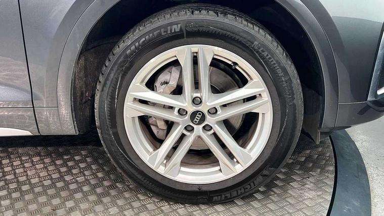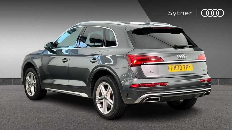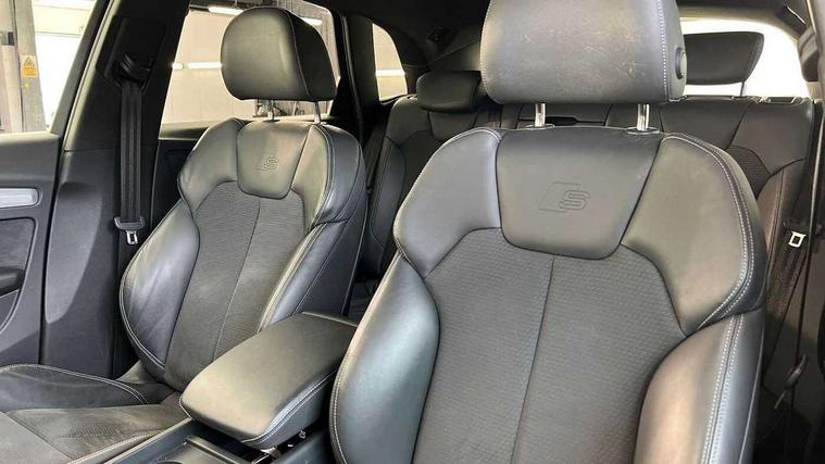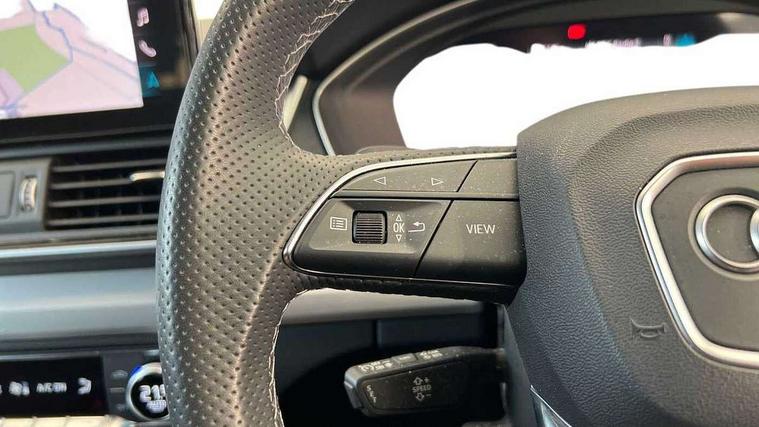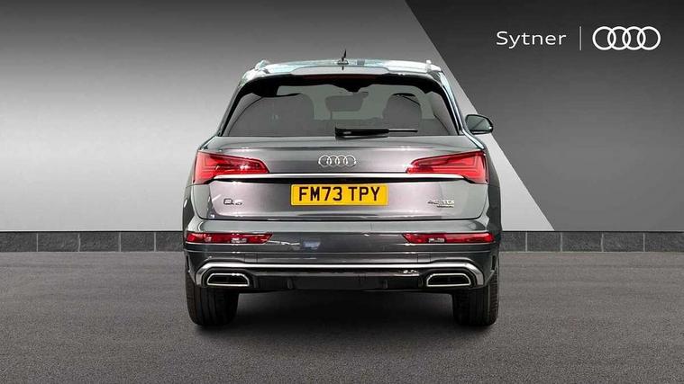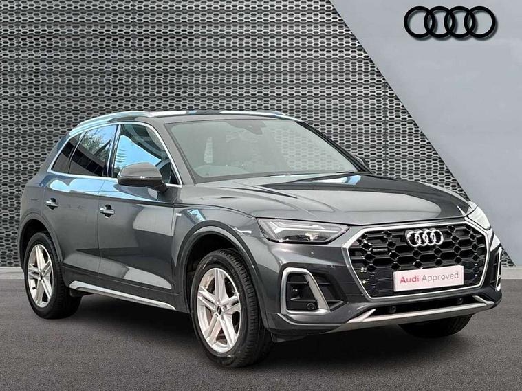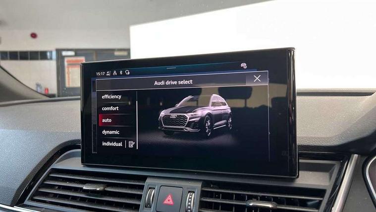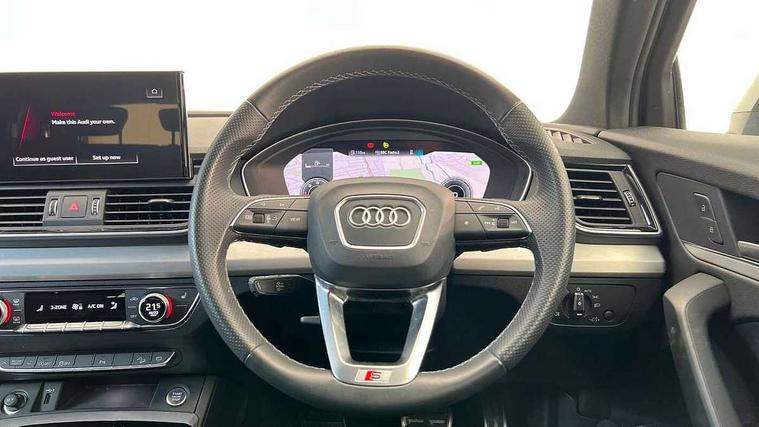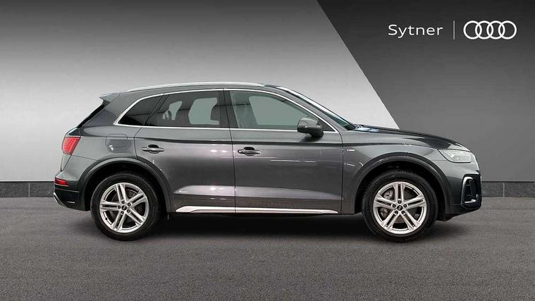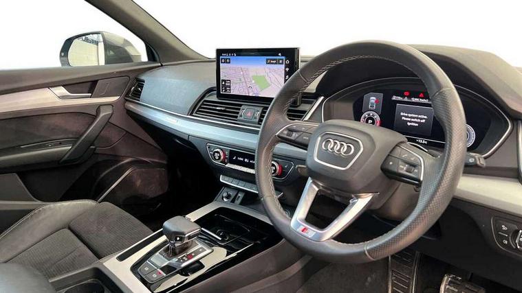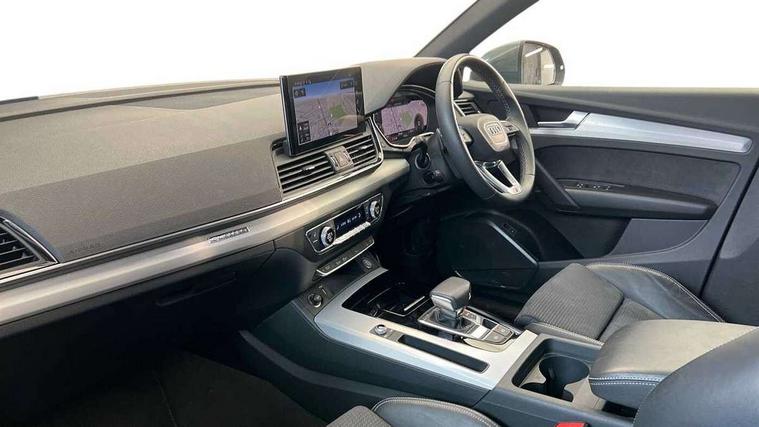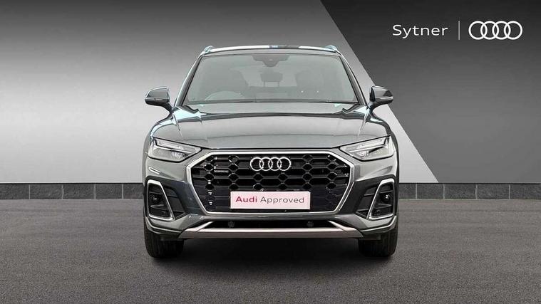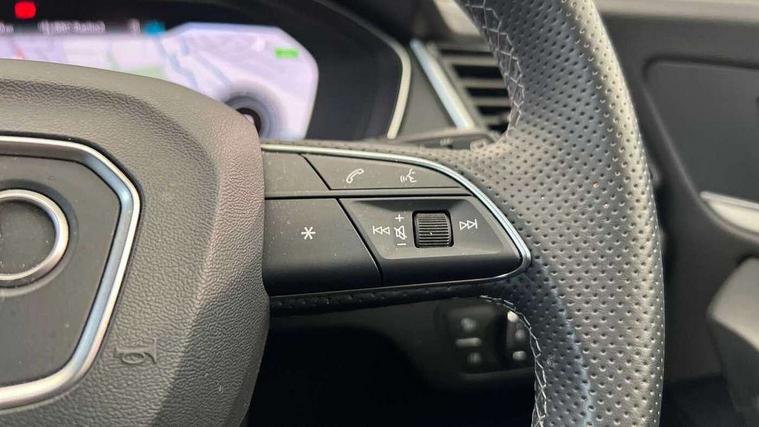 Acoustic front and rear parking sensor, Audi connect safety and service (e-call), Audi drive select, Audi virtual cockpit plus with 12.3" screen and three different layout designs, Audi wireless smartphone interface, Automatic start-stop system with coasting functionality and efficiency programme, Bluetooth interface, Camera based traffic sign recognition, Electro - mechanical power assisted steering, Lane departure warning, MMI navigation plus with 10.1" touch screen, Power tailgate, Reversing camera, Service interval indicator, Voice control system with Audi hotword activation "Hey Audi", Diesel particulate filter, Quattro on demand, S line sports suspension, 2 x USB charging port with aux input socket, DAB Digital radio, Acoustic windscreen, Aluminium roof rails, Auto dimming door mirrors, Auto dimming frameless rear view mirror, Automatic headlight adjustment, Automatic headlights and windscreen wipers, Body colour bumpers, Body colour door mirrors, Body colour rear diffuser with matt aluminium silver surrounds, Body colour underbody protection, Chrome plated exhaust trims, Daytime running lights, Door sills in Selenite silver, Electric adjustable/heated/folding door mirrors, Front air inlet surrounds in aluminium, Front and rear electric windows, Front radiator grille in honeycomb design, LED 3rd brake light, LED rear lights, Loading edge protection in stainless steel, Lower bumpers painted in contrast Manhattan grey, Rear chrome trim strip below lights, Rear privacy glass and rear side windows, Rear side wing doors, Rear wiper, Roof bars, S Line badges on the front wing panels, S Line front and rear bumpers, S Line rear spoiler, S Line side skirts, 3 rear headrests, 3 spoke leather multifunction steering wheel with S badging perforated leather grips, Black cloth headlining, Comfort front centre armrest, Contrast stitching on seats, steering wheel and gear lever gaiter, Deluxe 3 zone electronic climate control, Front head restraints, Front sport seats with S embossed logo, Front/rear floor mats, Gear lever in black leather, Heated front seats, Height/reach adjustable steering column, Illuminated door sill trims with S logo, Luggage compartment cover, Manual seat adjustment with 4-way electric lumbar support, Single front passenger seat, Stainless steel pedals, Sunvisors with vanity mirrors, Top surface of the rear centre armrest in artificial leather, High gloss pack - Q5, LED interior light pack - Q5, Technology pack - Q5 SUV/Sportback, 3 point seatbelts on all seats, 6 airbags - Driver, front passenger, curtain and side airbags, Attention and drowsiness assist, Electrically operated child locks on rear doors, Electromechanical parking brake, Electronic stabilisation control including ABS, ASR and EDL, First aid kit with warning triangle and vests, Front passenger airbag deactivation, Hill descent control, Hill hold assist, ISOFIX child seat mounting for front passenger seat and ISOFIX child seat mounting with Top Tether for outer rear seats, Multi collision brake assist, Pop-up bonnet for pedestrian protection, Pre sense city, Seatbelt monitoring, Tyre pressure warning, Anti theft alarm, Anti-theft wheel bolts, Remote central locking, Remote control key with SAFELOCK and keyless go, Air vents inserts and centre console in gloss black, Matt brushed aluminium inlays, Tool kit, Tyre repair kit,
