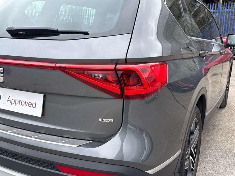 'Lights On' Reminder warning buzzer, 10.25" digital cockpit, Adaptive cruise control with speed limiter, Bluetooth audio streaming with handsfree system, Digital clock, Digital cockpit, e-Call (emergency call), Front assist city emergency braking and pedestrian protection, Full Link Smartphone Integration with Mirror Link, Apple Car Play, Google Android Auto, Lane assist, Low fuel warning light, Outside temperature gauge, Park assist system, Rear view camera, RPM counter, SEAT Drive profile - 4 different modes, progressive steering, 4Drive versions with off-road/snow, steering response, throttle response, gear shifts, Trip computer, Wash water level indicator, Comfort suspension, XDS electronic differential lock, Navigation system with 8" colour touchscreen with proximity sensor, 3D Map display, DAB, AM/FM Radio, 3 USB, Aux-in, 8 speakers, SD card, Steering wheel mounted audio/telephone controls, Auto dimming rear view mirror, Auto headlights with automatic coming and leaving home function, Automatic headlight adjustment, Body colour door mirrors and handles, Body coloured bumpers, Chrome front grille frame, Chrome roof rails, Chrome window trim, Dark tinted rear windows, Electric front/rear windows, Electrically adjustable and folding door mirrors, Front halogen fog lights with cornering function, Fuel door linked to central locking, Full LED headlights with LED rear lights, Hidden exhaust pipe, Illuminated aluminium front door sill with XCELLENCE logo, LED daytime running lights, LED licence plate lighting, Rain sensing wipers, Rear fog lights, Rear wash/wipe, 3 zone climate control, Ambient spot lighting and front footwell illumination, Baza cloth upholstery + sports seats, Black interior roof, Centre armrest in front with air outlet in rear, Driver and passenger sunvisor with covered and illuminated mirror, Driver/passenger lumbar adjustment, Easy fold rear seat system - second and third row, Folding table on front seat backrests, Forward and backward adjustable seats 2nd row, Four cargo rings in the boot, Front cupholders, Front seat back storage pockets, Gear shift indicator, Height adjustable driver's seat, Height adjustable front headrests, Height adjustable passenger seat, Illuminated boot, Instrument lighting with brightness control, ISOFIX points in outer 2nd row seats and front passenger seat with top tether anchorage points, Leather gear knob, Leather steering wheel, Leather wrapped multifunction steering wheel, Luggage compartment floor with split function, Rear armrest and easy back seat release mechanism from boot, Sliding boot cover, Storage draw under front passenger seat, Three 12V sockets, White ambient lighting in front and rear door panels + LED lights in interior door handles, ABS, Active front head restraints, Driver/front passenger airbag, Drivers knee airbag, Electronic parking brake with auto hold, Electronic stability control, Front passenger airbag deactivation, Front side airbags, Hill hold control, Seatbelt reminders for all seats, Tiredness recognition system, Traction control, Two curtain airbags, Tyre pressure monitoring system, Alarm, Central locking, Keyless enter and go with electric tailgate with virtual pedal, Locking wheel bolts, Power locking and remote control with two foldable keys and opening boot selector, Chrome interior detailing - door and dashboard decorative inserts, 19" Exclusive machined alloy wheels 37/1, Tool kit,
