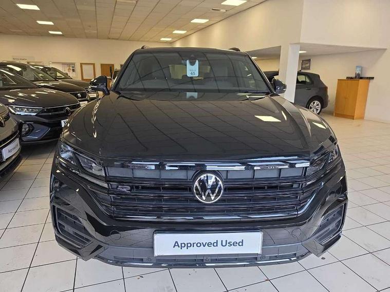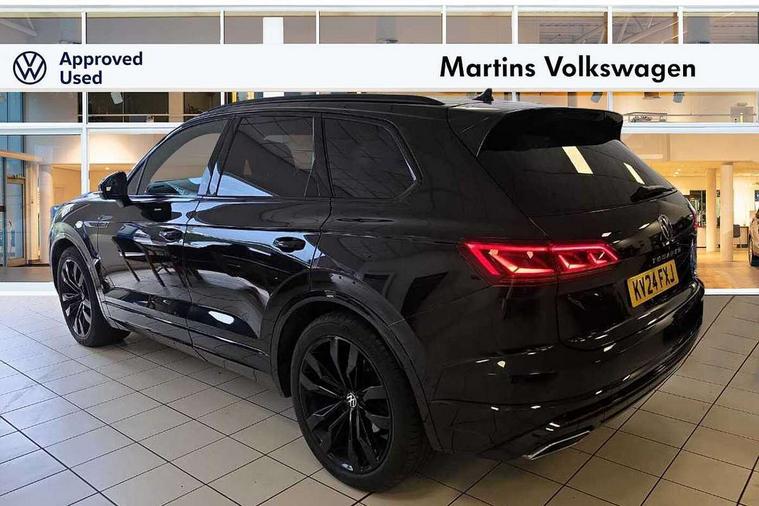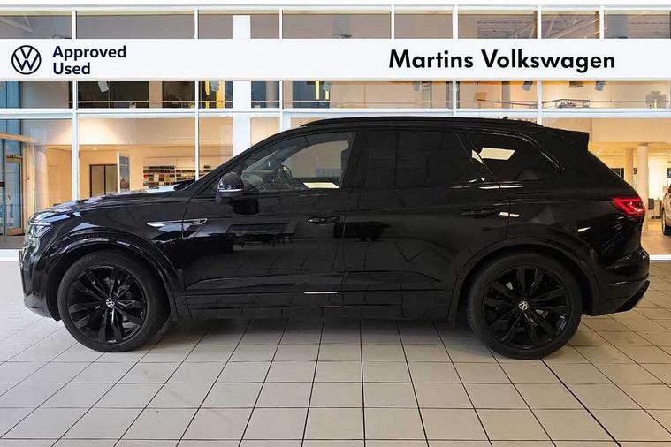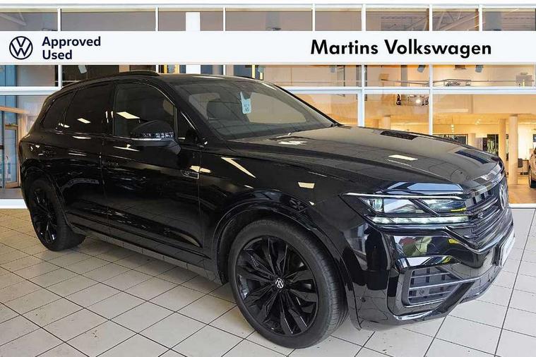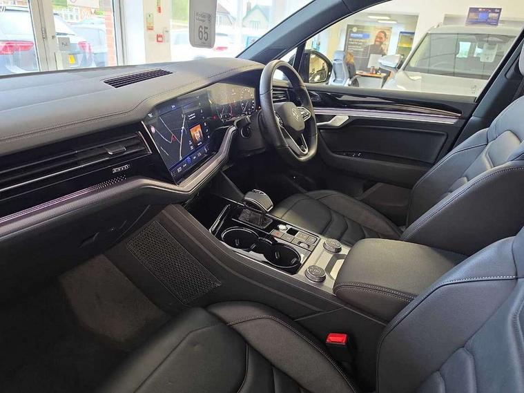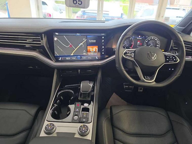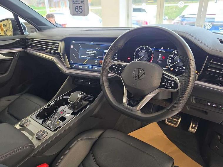 2D/3D map view, ACC - Adaptive cruise control with front assist, forward collision warning, distance monitoring, city emergency brake and speed limiter, Apple car play/Android Auto, Audible and visual fatigue detection system, Bluetooth hands free telephone connection, Car information display, Drive select with Damper control, Driver alert system, Driver profile selection, Dynamic road sign display camera controlled system with visual warning for traffic and road signs, eCall emergency system, Fully electric tailgate + keyless entry and start, Instrument cluster, MirrorLink, Multifunction camera, Multifunction computer premium with 7" colour display, One touch indicators with repeat function, Service interval indicator, Speed sensitive power steering, Start/stop system with regenerative braking, Tailgate power latch, Think blue trainer driver tips and journey analysis, Traffic sign recognition, Voice control system, Wireless Smartphone charger, 24 litre AdBlue tank, Torsen limited slip differential, DAB Digital radio, Dynamic navigation based on TMC+, Gesture control for infotainment system, Multi device interface (MDI) with illuminated USB-C connection, Music playback - MP3, WMA and AAC files, SD card slot, Simultaneous pairing of 2 compatible mobile devices, SMS functionality - read, compose and send SMS messages using touch-screen display, Title and cover art display, Volkswagen media control, Adaptive low beam for urban and motorway use, Auto dimming rear view mirror, Automatic coming/leaving home lighting function, Automatic headlights, Black anodised roof rails, Black door mirrors, Black rear diffuser, Black side window surrounds, Black upper and lower grille louvres extending into headlights and radiator grille, Body colour door handles, Body coloured wheel arches, C signature gloss black front air intake, Chromed tailpipe on the left and right integrated in the bumper with trapezoid design, Dusk sensor, Dynamic headlight range control, Electric front tilt/slide panoramic sunroof and fixed rear sunroof, Electrically power adjustable, heated, folding, auto dimming, front passenger exterior door mirror lowering function, Front and rear electric windows, Galvanised body, Gloss black finish B pillar, Gloss black rear diffuser, Headlight washers, Heat insulating darkened glass in side and rear windows, Heated windscreen washer jets, IQ.Light-LED matrix headlight, daytime running light with dynamic cornering light and indicator, LED 3rd brake light, LED rear fog light, LED rear number plate lights, Plastic scuff plates in door apertures, Poor weather light, Puddle lights, Rain sensor, Rear side wing doors, Rear wiper, 12V socket in front and rear centre console and boot, 2 Coat hooks on B pillar, 3 rear head restraints, 3 seat bench in 2nd row, 3 spoke sport heated leather multi-function sports steering wheel with gear shift paddles - generation 2, 4 way adjustable front head restraints, 4 way electric lumbar support for driver and front passenger, 4 zone climate control, 40:20:40 split folding slide/recline rear seat, B pillar vents, Black lower edge of door extending sills, Branded points of interest, Double sun visor for drivier and passenger with LED illuminated vanity mirrors, Electric luggage compartment cover, Folding rear centre armrest with 2 cupholders, Front + rear carpet mats, Front centre armrest with storage box, Gear shift indicator, Height/reach adjust steering wheel, Illuminated air conditioned glovebox, Isofix preparation for 2 rear child seats, Jack and tool kit, Leather trimmed gear knob with gloss black inlay/aluminum trim, Leatherette door trim, LED luggage compartment lighting, Load through provision, Luggage compartment with load lashing rings, Plastic loading edge protection, Rear seat remote release levers, Single front passenger seat, Soul black headlining, Stainless steel pedals, Innovision cockpit pack - Touareg, 3 point front seatbelts with pre-tensioners, ABS, Active bonnet, Automatic post collision braking system, Curtain airbags, Driver/Front Passenger airbags, EBD + Brake Assist, EDL, Electronic parking brake with auto hold, ESC with ASR, Front seat side impact airbags, Hill descent control, Hill start assist, Passenger airbag deactivate switch, Seatbelt warning lamp and buzzer, Three 3 point rear seatbelts, Two tone horn, Volkswagen roadside assistance, Warning triangle and first aid kit, Alarm with interior monitoring in cab, backup horn and towing protection, Child security locks for front and rear doors, Electronic engine immobiliser, Remote central locking, Black decorative trims on the side windows, High gloss black centre console,