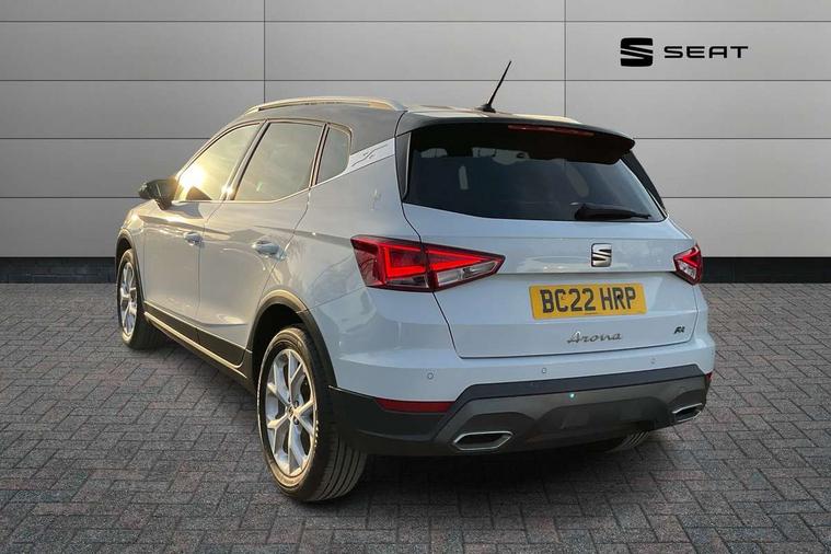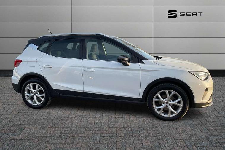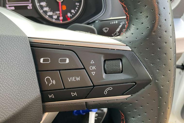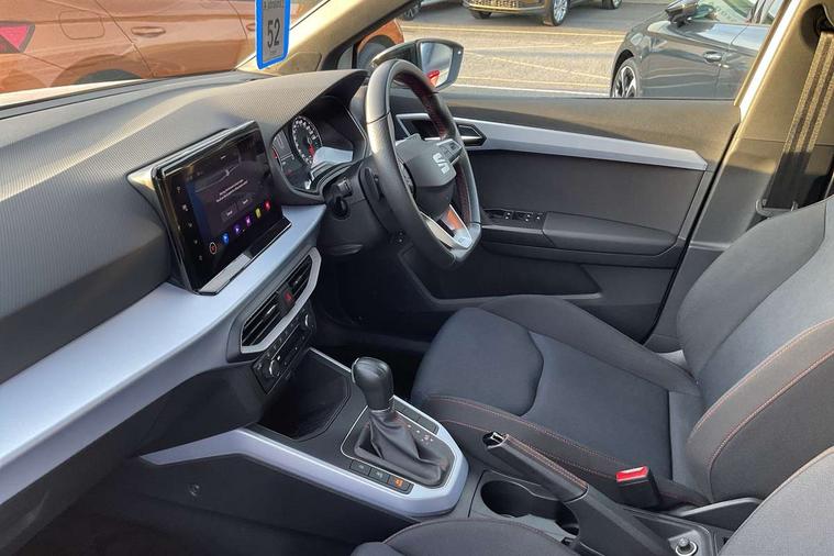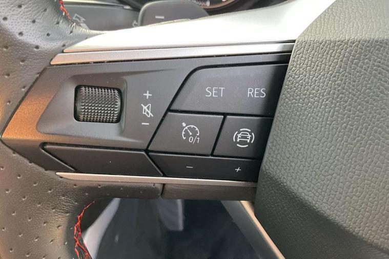 'Lights On' Reminder warning buzzer, Digital clock, E-call, Electric speed sensitive power steering, Full Link Smartphone Integration with Mirror Link, Apple Car Play, Google Android Auto with USB Type C cable for Apple and Android compatibility, Lane keeping system, Low fuel warning light, Outside temperature display, Rear parking sensor, RPM counter, Seat connect with safety, service, remote and online, SEAT Drive profile - Four different models normal-sport-eco-individual, steering response, throttle response and gear shifts mode, Trip computer, Bluetooth interface for hands free and audio streaming, DAB digital radio and AM/FM radio, Steering wheel mounted audio controls, Anti theft roof antenna, Auto dimming interior rear view mirror, Automatic activation of hazard warning lights, Body coloured bumpers, Body coloured door handle inserts, Chrome roof rails and window surrounds, Chrome window trim, Dark tinted rear windows, Electric front/rear windows, Electrically adjustable, heated and folding door mirrors, FULL LED automatic headlights with dynamic headlight range control, coming and leaving home, LED daytime running lights, LED rear tail lights and licence plate lights, Protective side mouldings, Rain sensing wipers, Rear side wing doors, Rear spoiler, Rear window wash/wipe, Roof colour door mirrors, Third brake light, Twin exhaust pipe styling hidden exhaust pipe, Visible VIN plate, Windshield wiper with intermittent control and potentiometer, 2 cupholders, 3 seat bench in 2nd row, 60/40 split folding rear seat, Aircare filter, Black interior roof, Cloth upholstery, Daring red Illuminated coloured air vent, Double boot floor, Driver sunvisor with covered mirror + card holder, Dual zone climate control, Front courtesy light with 2x front and 2x rear reading lights, Front sport seats, Gear shift indicator, Height adjustable front seats, Height/reach adjustable steering column, Illuminated boot, Instrument lighting with brightness control, Interior ambient lighting, Interior light in footwell, central console and door panel, ISOFIX points in outer rear seats with top tether anchorage points, Passenger sunvisor with vanity mirror, Perforated flat bottomed leather steering wheel/gear knob/handbrake with red stitching and FR logo, Single front passenger seat, Steering wheel mounted gearshift paddles, Two front and three rear height adjustable headrests, Connectivity pack plus - Arona, Interior chrome pack - Arona, 3 point seatbelts on all rear seats, ABS, Active front headrests, Child locks on rear doors, Driver and front passenger airbags with front passenger airbag de activation, front side and curtain airbags, Electronic stability control, Emergency Brake Assist (EBA) and front assist, Front and rear seatbelt reminder, Hill hold control, Multi-Collision braking, Tiredness recognition system, Traction control, Tyre pressure monitoring system, Alarm with back-up horn, Electronic engine immobiliser, Locking wheel bolts, Remote central locking + deadlocks, Tow away protection, Titan black dashboard, 17" Dynamic alloy wheels,
