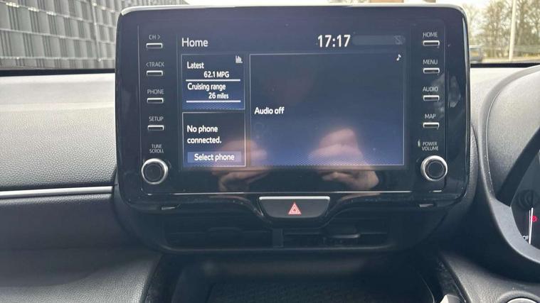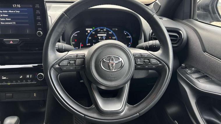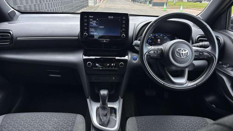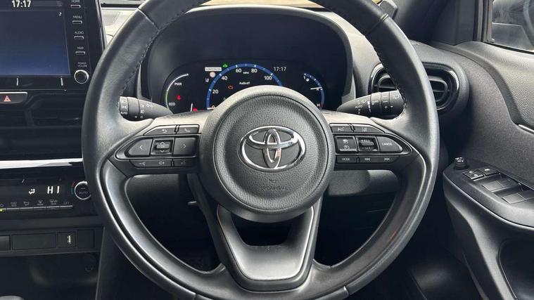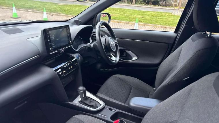 7" Multi information display screen, 8" Toyota touch 2 multimedia system with Smartphone integration with Apple CarPlay and Android auto, Adjustable speed limiter, Bluetooth connectivity, Driver attention alert system, eCall emergency system, Electric power steering, Full range intelligent adaptive cruise control, Hybrid system indicator, Key reminder warning, Lane trace assist, Multimedia, audio, telephone and voice recognition switches on steering wheel, My T Connected services, Pre-collision system enhanced with emergency steering assist, Reversing camera, Road sign assist - RSA, Steering assisted vehicle stability control, 6 speakers, DAB Digital radio, USB connection, 3rd brake light, Acoustic windscreen glass, Aluminium roof rails, Anti-jam protection on power windows, Auto high beam [AHB] with on/off switch, Automatic headlights, Black lower front grille, Black Shark-fin antenna, Black upper front grille, Black wheel arch mouldings, Body colour door handles, Body colour front bumper, Body colour rear bumper, Electric adjustable heated door mirrors, Follow me home headlights, Front and rear electric windows with auto up/down function, Front intermittent wipers, Headlight cut off reminder, Indicators integrated on door mirrors, Intermittent rear wiper, LED daytime running lights guide, LED front fog lights, LED front light guide, LED Indicators, LED projector headlights, LED rear light guide, Manual headlight levelling, Manually retractable door mirrors, Noise reduction layer on windscreen, Privacy glass, Rain sensor, Rear LED lights with sequential indicators, Rear side wing doors, Rear spoiler, Rear window defogger, 12v power outlet - front, 2x Rear coat hooks, 3 seat bench in 2nd row, 3 spoke leather steering wheel, 40:20:40 split folding rear bench seat, Adjustable speed limiter switch on steering wheel, Auto air conditioning, Black roof lining, Boot light, Central armrest, Centre console in light blue ambent lighting, Driver and front passenger personal lights, Fabric door trim, Fabric upholstery, Footwell in light blue ambient lighting, Front console box, Front cup holders, Front head restraints, Glovebox, Height adjustable driver's seat, Height adjustable front passenger seat, Hooks for luggage holding belts, ISOFIX child restraint system, Lane departure alert switch on steering control, Leather gearshift, Light blue ambient lighting on front doors, Manual telescopic and tilting steering wheel, Mirror on driver and passenger sun visor, Pollen air filter, Rear cup holders, Rear head restraints, Single front passenger seat, Soft tonneau cover, 3x3 point rear seat belts, ABS+EBD+Brake assist, Driver and passenger central airbags, Driver and passenger front airbags, Driver and passenger side airbags, Electronic parking brake, Emergency brake light system (EBS), Front seat belt reminder, Hill start assist control (HAC), Passenger airbag on/off switch, Pre-collision system with pedestrian and cyclist detection, Rear door child safety locks, Rear passenger side airbags, Rear seat belt reminder, Traction control, Tyre pressure warning system, Immobiliser, Intrusion alarm, Keyless smart entry with push button start, Power door locks, Power passenger window lock, Remote door lock, Tyre repair kit,