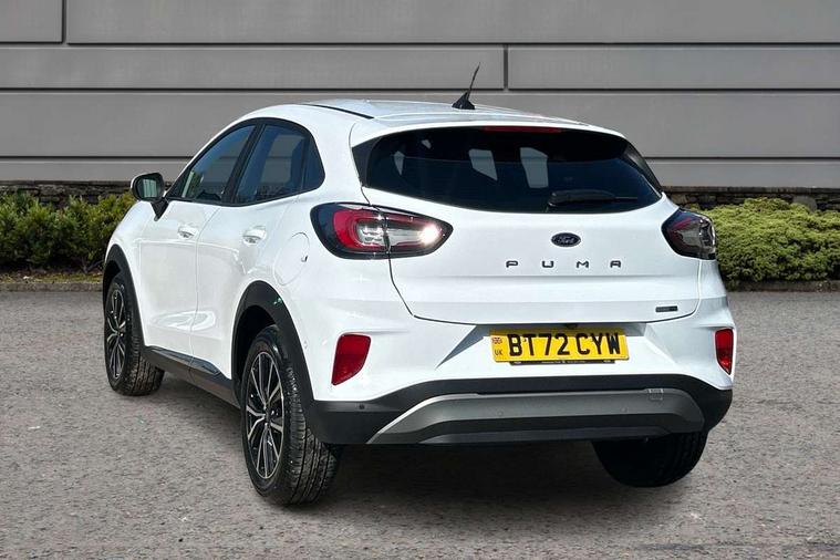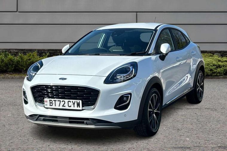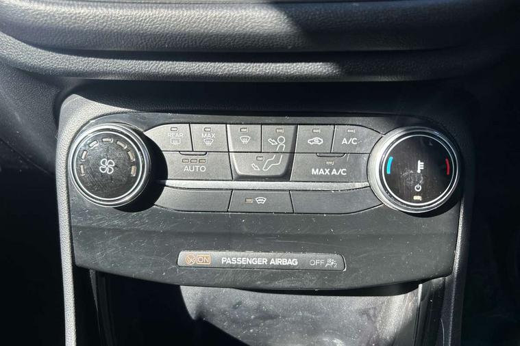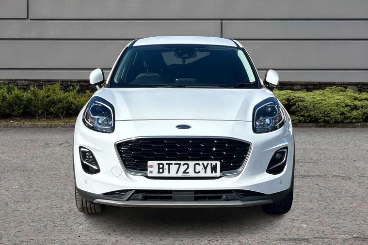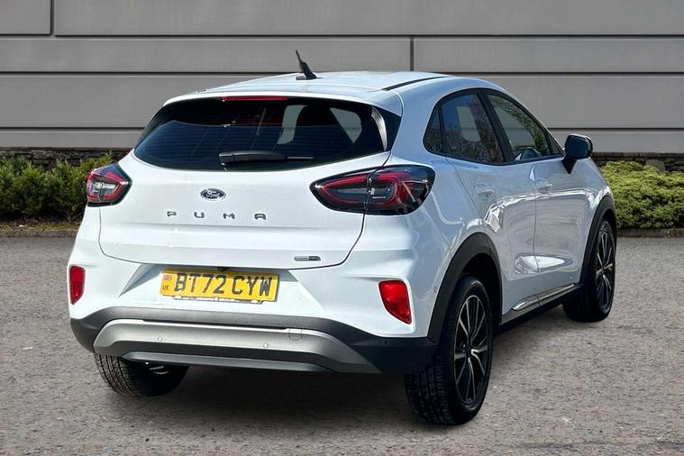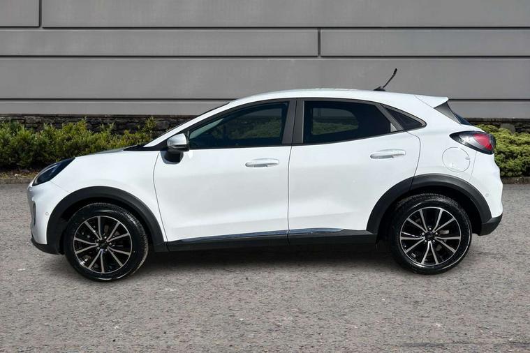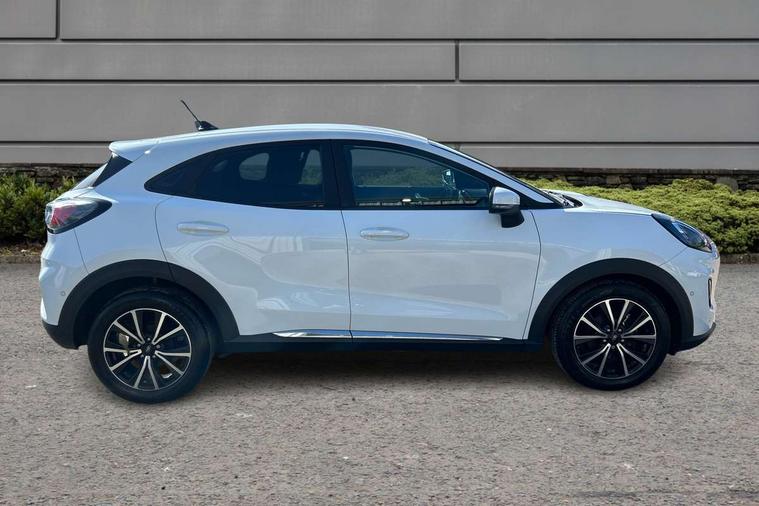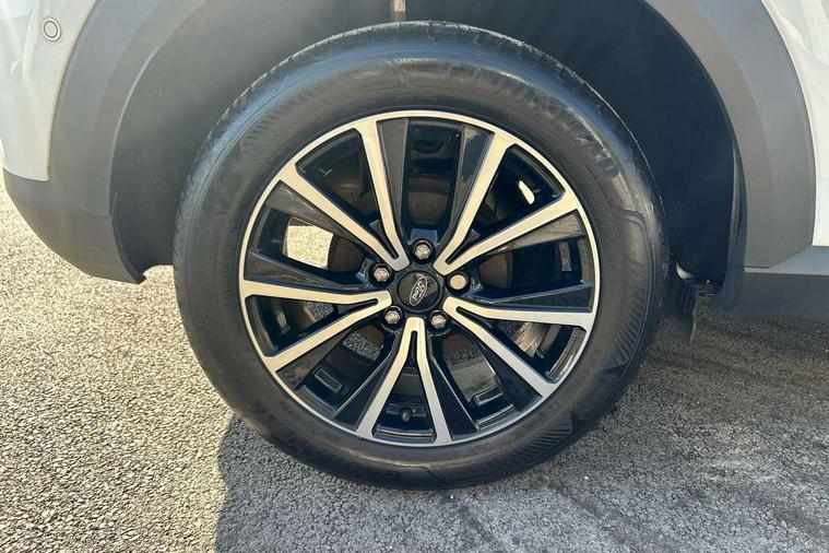 Driver impairment monitor, Emergency call service, Ford easy fuel, Lane keeping aid with lane departure warning, Power assist steering, Power start button, Rear parking sensor, Selectable drive modes(Normal, sport, Eco, trail, slippery), Speed sign recognition, Standard suspension, Automatic headlights with auto high beam, Automatic rain sensing wipers, Body colour rear spoiler, LED rear lamps, Power foldable heated door mirrors with puddle lamps, Projector headlamps with LED day time running lights and front fog lamps, Quickclear heated windscreen, Rear side wing doors, Rear wiper, Third brake light, 3 seat bench in 2nd row, Centre console with armrest and stowage, Electronic automatic temperature control (EATC), Ford megabox extended bootspace, Front and rear head restraints, Front floor mats, Manual 2 way passenger seat adjustment, Manual 4 way driver seat adjust with lumbar adjustment, Sensico leather steering wheel/gear knob/handbrake, Single front passenger seat, Titanium cloth upholstery, Ford SYNC 3 navigation pack - Puma, 3 rear seatbelts, Child safety lock, Electronic stability control (ESC) and hill start assist, Pedestrian/cyclist detection & post-collision braking, Pre collision assist system, Tyre pressure monitoring system (TPMS), Thatcham alarm, 17" 10 spoke absolute black machined finish alloy wheel,