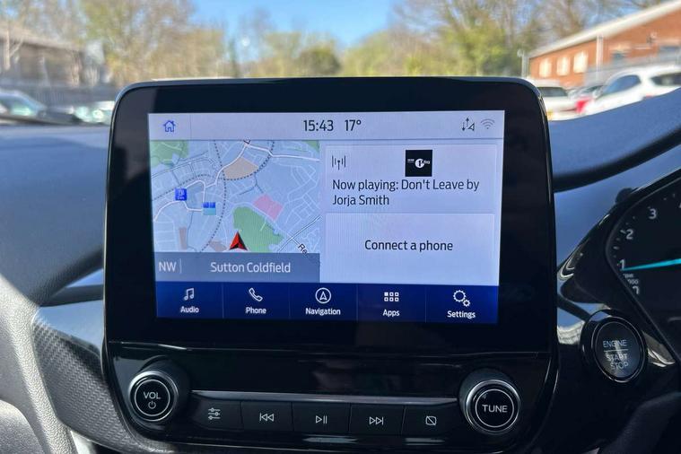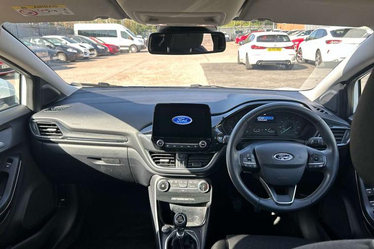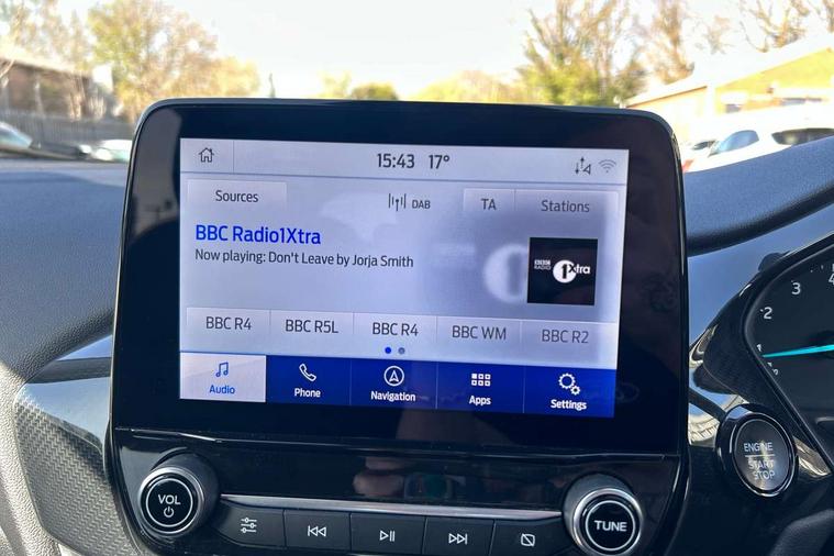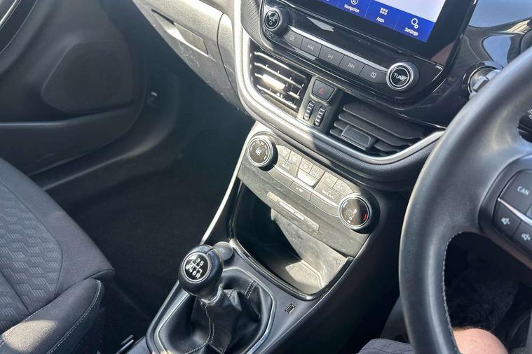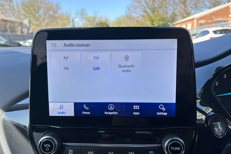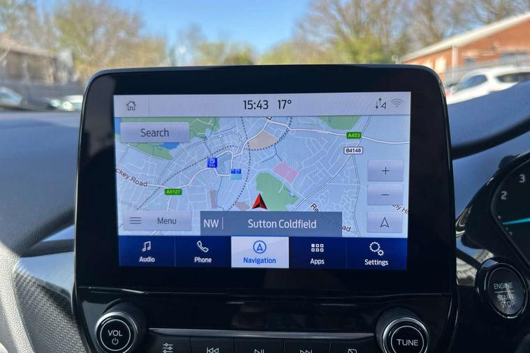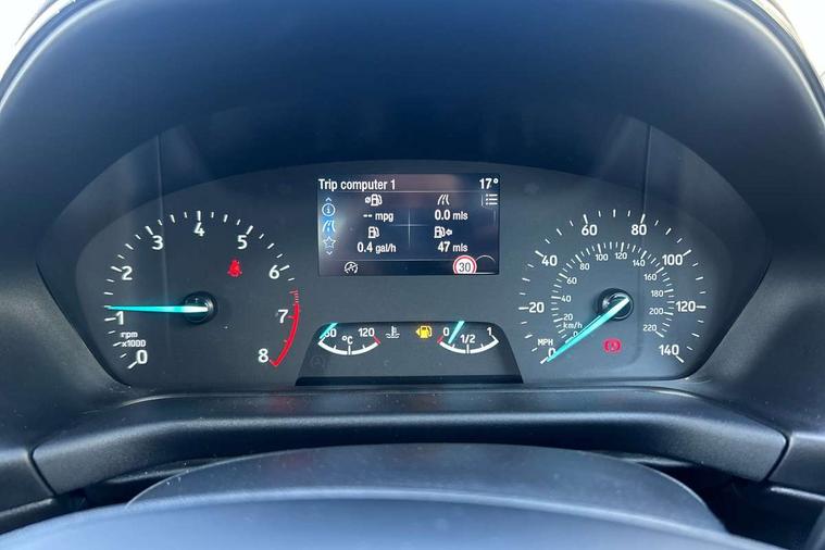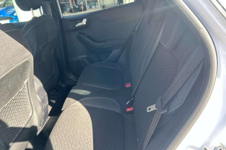 Driver impairment monitor, Emergency call service, Ford easy fuel, Lane keeping aid with lane departure warning, Power assist steering, Power start button, Rear parking sensor, Selectable drive modes(Normal, sport, Eco, trail, slippery), Speed sign recognition, Standard suspension, Automatic headlights with auto high beam, Automatic rain sensing wipers, Body colour rear spoiler, LED rear lamps, Power foldable heated door mirrors with puddle lamps, Projector headlamps with LED day time running lights and front fog lamps, Quickclear heated windscreen, Rear side wing doors, Rear wiper, Third brake light, 3 seat bench in 2nd row, Centre console with armrest and stowage, Electronic automatic temperature control (EATC), Ford megabox extended bootspace, Front and rear head restraints, Front floor mats, Manual 2 way passenger seat adjustment, Manual 4 way driver seat adjust with lumbar adjustment, Sensico leather steering wheel/gear knob/handbrake, Single front passenger seat, Titanium cloth upholstery, Ford SYNC 3 navigation pack - Puma, 3 rear seatbelts, Child safety lock, Electronic stability control (ESC) and hill start assist, Pedestrian/cyclist detection & post-collision braking, Pre collision assist system, Tyre pressure monitoring system (TPMS), Thatcham alarm, 17" 10 spoke absolute black machined finish alloy wheel,