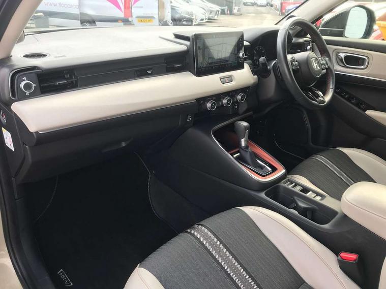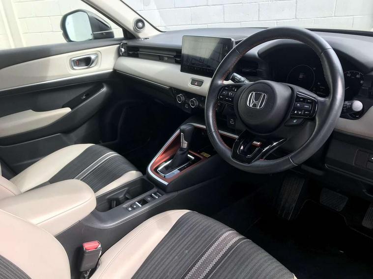 7" TFT instrument cluster, Adjustable speed limiter, Agile handling assist, BLIS (Blind Spot Information System) with Cross Traffic Monitor, Bluetooth hands free telephone connection, Drive modes select (Eco, normal and sport), eCall emergency system, Electric power steering, Emergency stop signalling system, Forward collision warning, Handsfree power tailgate with walkaway close, Honda CONNECT with navigation, 9" touchscreen, AM/FM/DAB/Apple Carplay and android auto, Honda sensing with blind spot information, adaptive cruise control and lane keep assist, Idle stop, Intelligent speed limiter, Low speed following, Rear parking sensors and rear view camera, Tachometer, Traffic sign recognition, WiFi connectivity, Wireless charger, Vehicle stability assist, 'Shark fin' mobile antenna, 2 USB sockets in rear, 2x USB Front socket (1 data & 1 charge), Premium audio system, Steering wheel mounted remote controls, Auto dimming rear view mirror, Auto headlight levelling, Auto high beam, Automatic coming home lighting, Automatic headlights, Automatic rain sensing wipers, Body colour bumpers, Body colour tailgate spoiler, Body coloured door handles, Electric front and rear windows, Electrically adjustable and heated door mirrors, Exterior and interior unique colour scheme (orange, white & blue accents), Front sequential turn, Front wiper de-icer, Headlight washers, Heated front windscreen, Heated rear window, High gloss side window surrounds, High level third brake light, LED cornering lights, LED daytime running lights, LED front fog lights, LED headlamps, Rear side wing doors, Rear wiper, Retractable/reverse auto tilt door mirrors, Roof rails, Smoked tail lights, Two tone roof, Variable front intermittent wipers, Windscreen shadeband, 3 rear headrests, 3 seat bench in 2nd row, 60/40 split folding rear seat, Ambient interior lighting, Cargo net hooks, Courtesy lights, Driver seat back pocket, Driver's seat height adjustment, Driver/passenger sunvisors with illuminated vanity mirrors, Dual automatic air conditioning, Front and rear map reading lights, Front head restraints, Front seat armrests, Heated front seats, Heated steering wheel, Isofix points, Luggage area under floor storage box, Magic seat flexibility system, Manual height/reach adjust steering wheel, Paddle shift controls, Passenger seat back pocket, Rear centre armrest, Rear ventilation, Single front passenger seat, Smooth leather steering wheel, Tonneau cover, Trunk cargo band, Trunk light, 3x3 point rear seatbelts, ABS+EBD+Brake assist, Anti-whiplash front headrests, Collision mitigation braking system, Collision mitigation throttle control, Deflation detection system, Dual front SRS airbags, Electric child locks, Electronic parking brake, Front and rear curtain airbags, Front and rear safety belts with Emergency Locking Retractor, Front side airbags, Hill descent control, Hill start assist, Low speed safety system, Passenger SRS airbag cut-off device, Regenerative braking system, Door deadlocks, Immobiliser, Keyless smart entry with push button start, Mirrors and windows key fob operation, Remote central locking with 2 remote folding keys, Security alarm, 18" Black cut alloy wheels, Tyre repair kit,