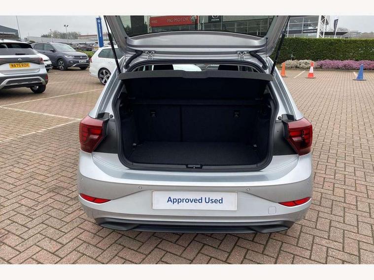 Advanced driver attention and drowsiness monitor, Bluetooth mobile phone interface, Dynamic road sign display, Emergency call service, Mobile phone preparation with inductive charging function, Multifunction front facing camera for distance control, Power assisted speed sensitive steering, Predictive adaptive cruise control without follow-to-stop and speed limiter, Preparation for navigation system with media and internet package, Preparation for We connect and We connect plus, Rear view camera, Speedo and rev counter, electronic odometer, trip, service interval display and exterior temperature gauge, Standard rear axle, Travel Assist - Lane keeping system and traffic jam assist, Travel assist including emergency assist, Trip computer, Warning signal and warning light for front and rear seatbelts not fastened, Washer fluid level indicator, Wireless app connect, Front wheel drive, Rear shock absorpion, Start-stop system with battery regeneration (recuperation - energy recovery during braking), DAB Digital radio, Diversity antenna for FM reception, Automatic dimming interior rear view mirror, Automatic headlight control with LED separate daytime running lights with coming/leaving home function, Body colour bumpers with chrome inserts, Body colour door handles, Body colour door mirrors, Electric front windows, Engine badge deletion, Headlight range adjustment, Heat insulating and laminated safety glass windshield, LED Headlights, LED rear combination lamps, Power folding adjustable/heated exterior mirrors and front passenger exterior mirror lowering function, Rain sensor, Rear electric windows, Rear fog light, Rear side wing doors, Rear tinted glass from B-pillar backwards approx 65% tinted, Rear windscreen washer and wiper with interval delay, Third brake light, 12V power socket in centre console, 2 front and 2 rear reading lights with switch off delay and dimmer, 2 USB-C ports in the front, 2 USB-C charging sockets on the center console in the rear, 3 rear head restraints, 60/40 split folding rear seat and rear seat bench not split, Ceramique roof lining, Chrome plated radiator grille inserts, air vent surrounds and light switch surrounds, Door and side trim panel, Driver and front passenger seat height adjustment, Driver/passenger sunvisors with illuminated vanity mirrors, Front centre armrest, Front seat backrest storage pockets, Front standard seats, Handbrake lever handle in leather, Hartley/Thomas cloth upholstery, Headliner in recycled material, Isofix child seat preparation easy-fit (for two outer rear seats, and front passenger seat) compatible with I-size, Leather trimmed gear knob, Luggage compartment cover, Luggage compartment lighting, Removable luggage compartment floor, Single front passenger seat, Standard climatic zones, Standard pedal cluster, Three spoke leather wrapped multifunction steering wheel with shifting paddles, Light and vision pack - Polo, 3 point height adj front seatbelts + pretensioners, 3 point seat belt for centre rear seat, 3 point seatbelts, outer rear with ECE lable, ABS, Driver and front passenger airbag with front passenger airbag deactivation, Drivers and front passengers safety optimised head restraints, ESC (Electronic stability control) + EDL (Electronic Differntial lock) and ASR (Traction control), Extended and predictive pedestrian/ cyclist protection, Front assist with autonomous emergency braking (for Adaptive Cruise Control ACC up to 130 mph), Front curtain and side airbags with center airbag, Front disc brakes, Hill hold control, Manual child lock in rear doors, Rear drum brakes, Single tone horn, Tyre pressure loss indicator, Alarm with interior protection, Anti-theft alarm system with interior monitoring, backup horn, and towing protection, Anti-theft wheel bolts, Electronic engine immobiliser, Lava stone black gloss/matt decorative inserts in dash and front door panels, 16" Torsby alloy wheels, Low rolling resistance tyres,