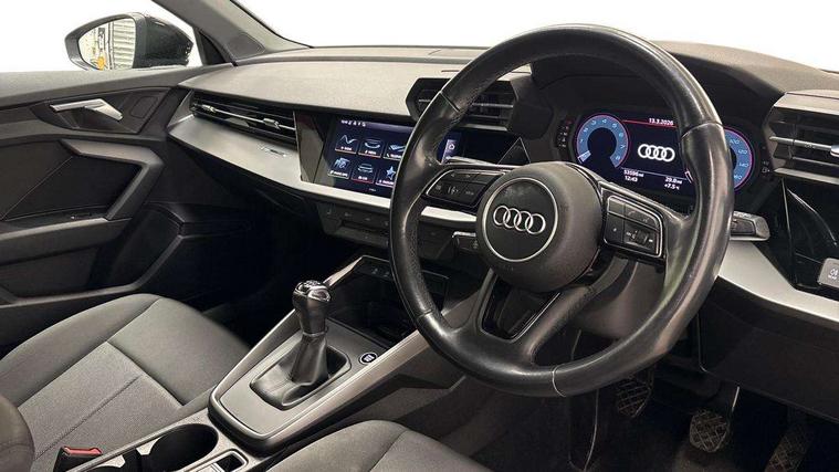Audi connect emergency call and service, Audi smartphone interface, Audi Virtual Cockpit - 10.25" digital and colour instrument cluster, Automatic start/stop system with recuperation, Bluetooth interface, Collision avoidance assistant, Cruise control, Electromechanical power speed sensitive steering, Lane departure warning system, MMI Navigation Plus with high resolution 10.1" colour touch screen display, Rear parking sensors, Service indicator, Trip computer, Voice control system with natural language interaction, Standard suspension, 1xUSB-A and 1xUSB-C connection, 6 passive loudspeakers, DAB Digital radio, Acoustic glass windscreen, Auto dimming frameless rear view mirror, Body colour exterior mirrors, Body colour front spoiler blade, Body colour roof spoiler, Electrically adjustable/heated/folding/auto dimming door mirrors with integrated LED indications + kerb view function for passenger side, Front electric windows, LED daytime running lights, LED headlights and halogen rear lights, Light and rain sensors, Radiator grille and frame in grained matt black and honeycomb look, Rear diffuser in grained matt black, Rear electric windows, Rear side air outlets in grained matt black, Rear window, rear door windows and rear side windows in clear glass, Rear wiper, Side air inlets in grained matt black, 12V socket and storage compartment in front centre console, 3 spoke leather multifunction steering wheel, 60/40 split folding rear seat bench, Front and rear headrests, Front centre armrest, Front/rear floor mats, Height and reach adjustable steering wheel, Interior lighting - Front and rear roof module including reading lights, glove compartment light and right hand side, Luggage compartment floor covering, Manual air conditioning, Manual boot compartment lid, Manually adjustable front seats, Seat side bolsters, Steel grey cloth headlining, 3x3 point rear seat belts, Driver and front passenger airbag with passenger airbag deactivation, Electronic Stabilisation Control (ESC) including ABS, ASR and EDL, First aid kit with warning triangle and 2 safety vests, Hill hold assist, Pre-sense front with pedestrian and cyclist detection, Seatbelt monitoring, Tyre pressure loss indicator, Anti theft alarm, Anti-theft wheel bolts, Electronically operated child lock, Immobiliser, Remote control central locking, Black decorative window trim, Inlays with silk effect paint in platinum grey, 16" 5 double arm alloy wheels,