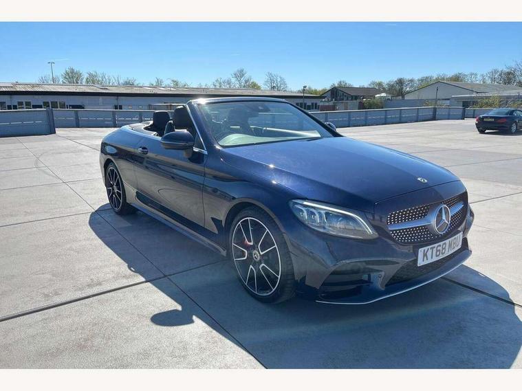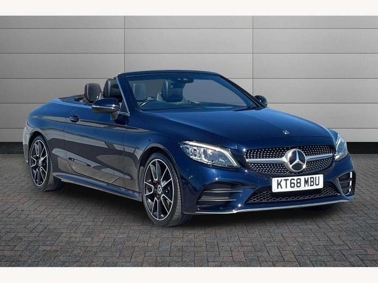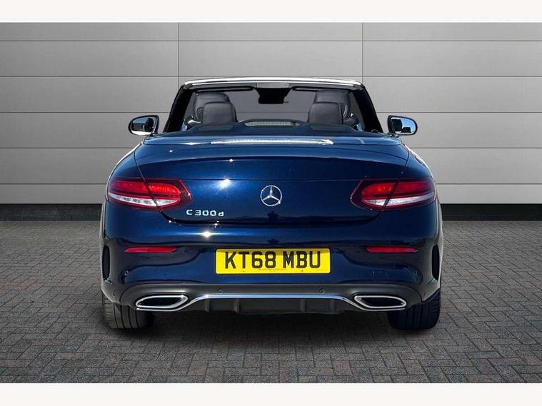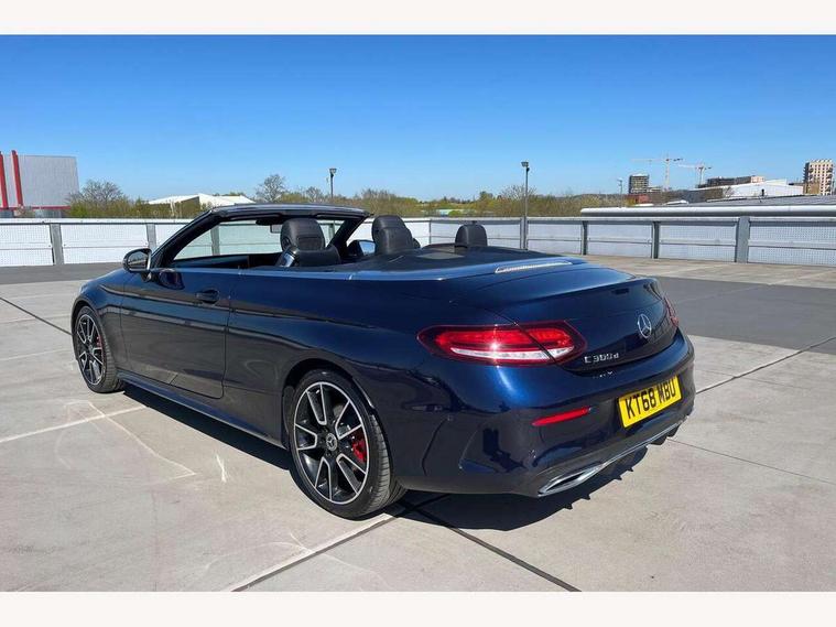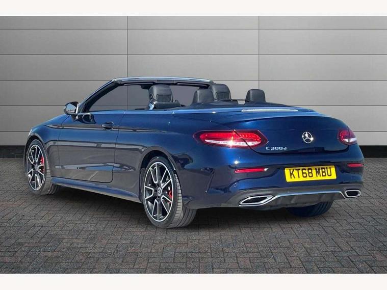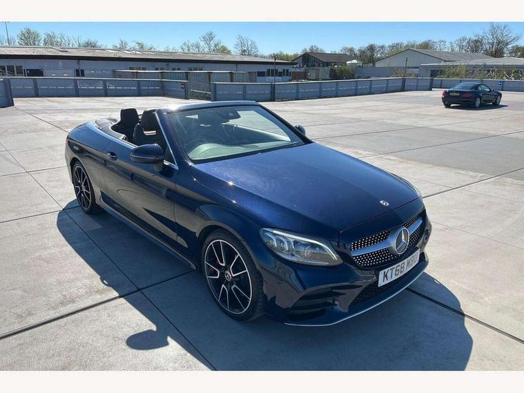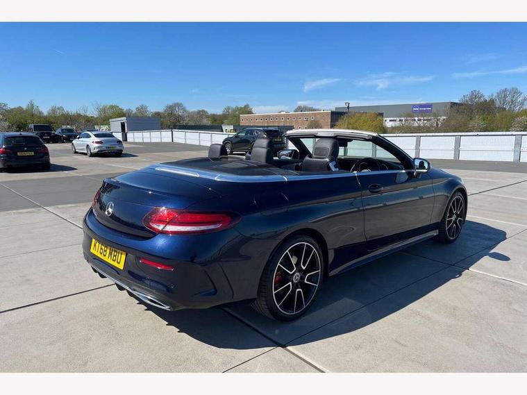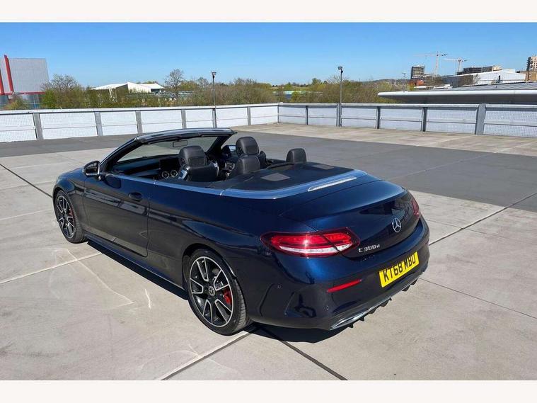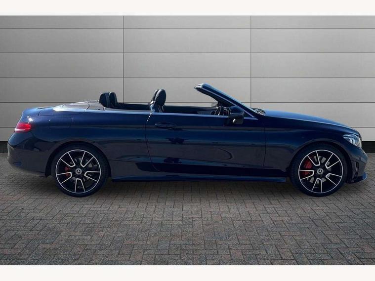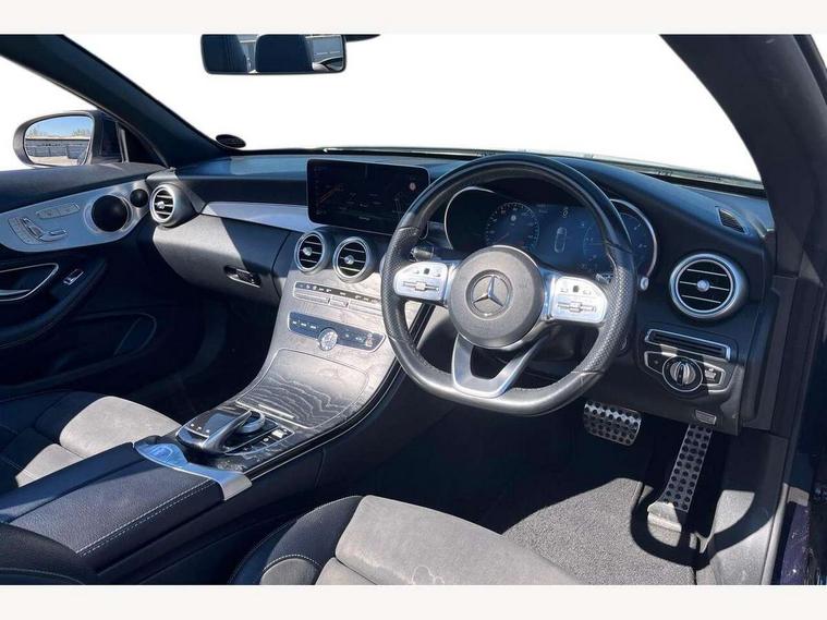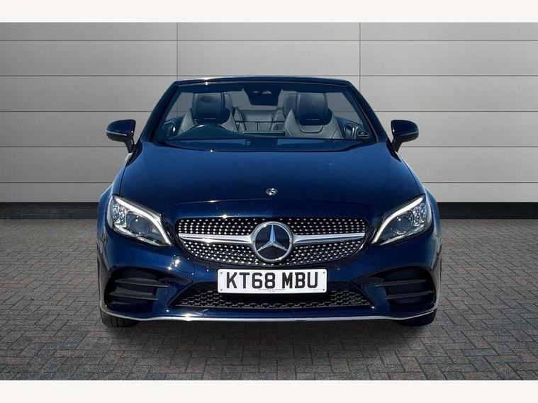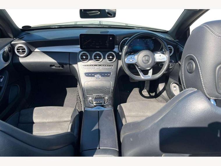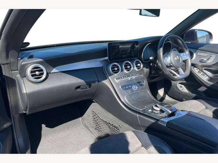 Active park assist with parktronic system, Attention assist, Automatic boot separator, Bluetooth interface for hands free telephone, Collision prevention assist plus, Comand Online HDD Nav with media interface, radio/CD/DVD/MP3, 10.25 screen, linguatronic voice control, DYNAMIC SELECT with a choice of driving modes (ECO, Comfort, Sport, Sport+ and Individual), Mercedes connect me with remote online, Multi function trip computer, Outside temperature gauge, Remote boot release, Reversing camera, Service indicator (ASSYST), Smartphone integration with Apple CarPlay and Android auto, Speed sensitive steering, Stop/start system, Wireless charging, Diesel particulate filter, 2 USB ports, Burmester surround sound system, DAB digital radio module, Mercedes Audio 20 radio/single CD, SD card slot, Acoustic soft-top with enhanced climate and noise comfort, Adaptive brake lights, AMG front, rear apron and side skirts, Auto dimming driver's door mirror, Auto dimming rear view mirror, Body coloured bumpers, Body coloured door mirrors, Chrome grille surround, Chrome pins diamond radiator grille with integrated stars, Door sill plates with "Mercedes-Benz" lettering, Electric adjustable/heated/folding door mirrors, Electric windows one touch open/close, Green tinted glass, LED daytime running lights, LED Indicators, LED tail lights, LED third brake light, Multi beam LED headlights, Radio aerial in side window, Rain sensor windscreen wipers, Side windows surround in polished aluminium, Twin exhaust tailpipes x2, Wind deflector, 2 cupholders in front centre console, 2 rear head restraints, 3 spoke flat bottom multi-function leather AMG steering wheel, 40:20:40 split folding rear seats, Airscarf - neck level heating, Ambient lighting, AMG floormats, Artico man-made leather upper dashboard and beltlines with contrast stitching, Auto dual-zone climate control system, Auto Mercedes-Benz child seat recognition sensor, Door courtesy lamps, Electrically adjustable front seats, Front centre armrest with storage compartment, Front footwell illumination, Heated front seats, Height adjustable front seats, Illuminated front/rear door handle recesses, Illuminated glovebox, Isofix rear child seat fastenings, LED reading lights, LED rear reading lights, Sports pedals with stainless steel surfaces and rubber studs, Sports seats with integrated headrests, Steering wheel audio controls, Steering wheel gearshift paddles, Sunvisors with illuminated vanity mirrors, Seat comfort pack - C Class, Stowage space pack - C Class, 2 rear seatbelts, 3 point automatic seatbelts, ABS, Active bonnet, Adaptive brake system, Black seat belts, Brake calipers with Mercedes-Benz lettering + perforated brake discs, Crash sensor, Drivers knee airbag, Drivers pelvis airbag, Dual stage driver/passenger airbags, Electronic parking brake, Electronic stability control, Front and rear window airbags, Front seatbelt pretensioners, Front side airbags, Hill hold control, Hill start assist, Tyre pressure monitoring system, Warning triangle and first aid kit, Alarm system/interior protection/immobiliser, Automatic door locking, Chrome surround electric key, Remote central locking, Tow away protection,