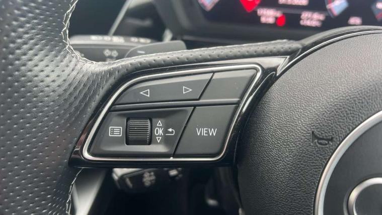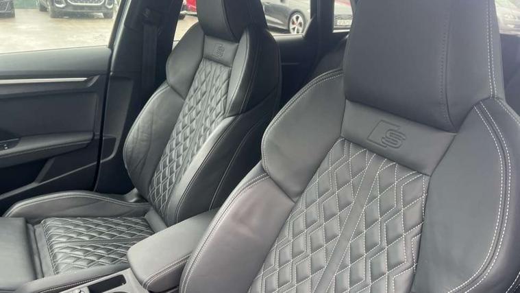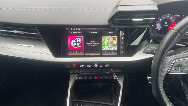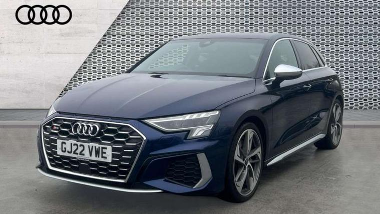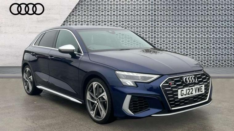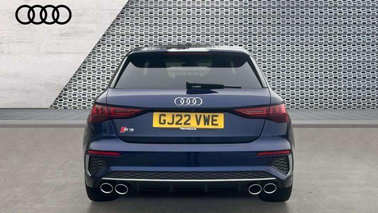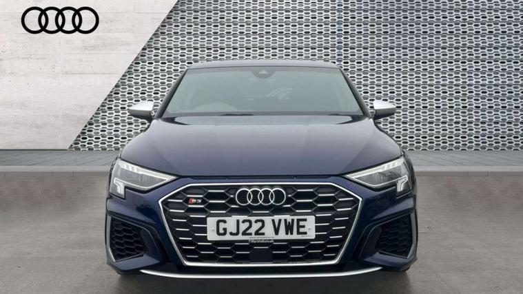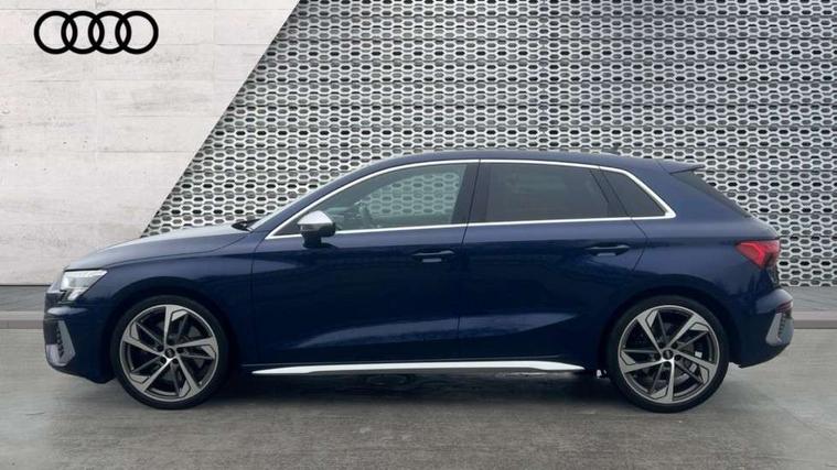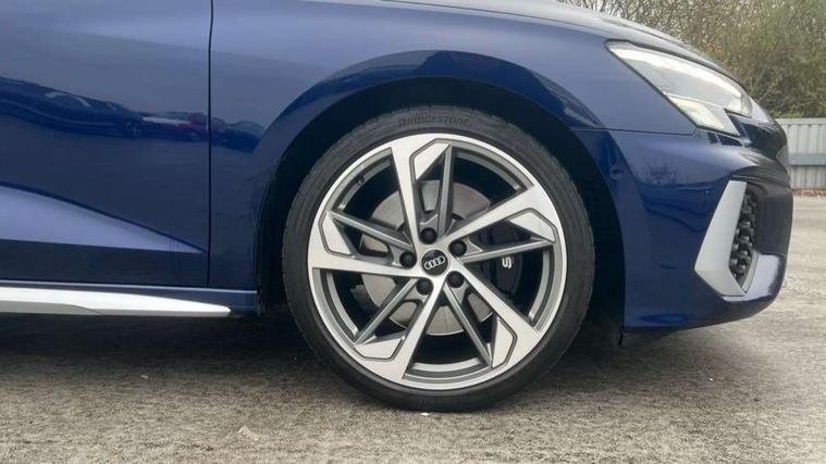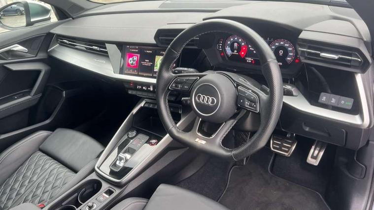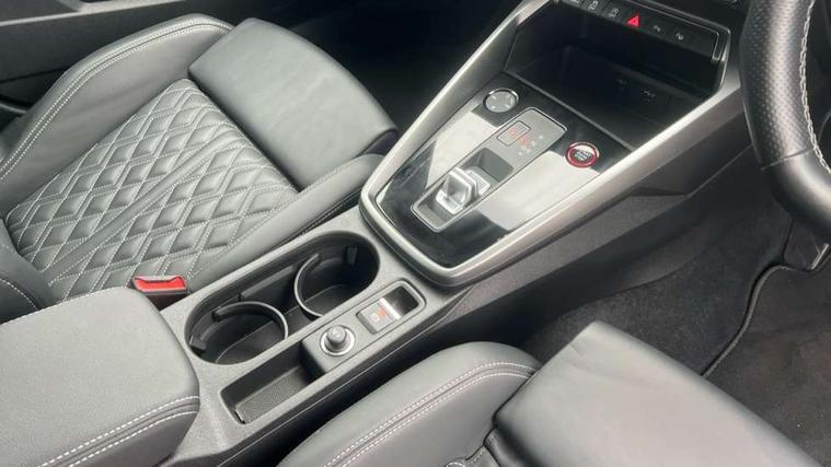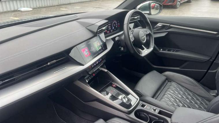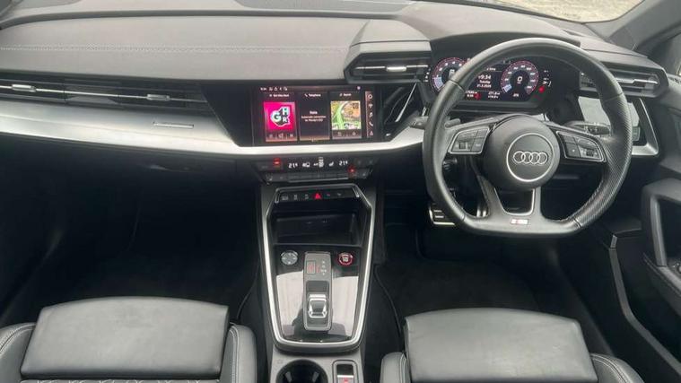 Audi connect emergency call and service, Audi drive select (Auto, Comfort, Dynamic, Efficiency and Individual), Audi smartphone interface, Audi Virtual Cockpit - 10.25" digital and colour instrument cluster, Automatic start/stop system with recuperation, Bluetooth interface, Collision avoidance assistant, Lane departure warning system, MMI Navigation Plus with high resolution 10.1" colour touch screen display, Progressive steering, Service indicator, Trip computer, Voice control system with natural language interaction, Quattro permanent all wheel drive, S sports suspension, 2xUSB-C connection with data and charging functions, 6 passive loudspeakers, DAB Digital radio, 3rd brake light, Acoustic glass windscreen, Aluminium window trim, Audi Beam uses LEDs to project the Audi S3 logo, Auto dimming frameless rear view mirror, Electrically adjustable/heated/folding/auto dimming door mirrors with integrated LED indications + kerb view function for passenger side, Front electric windows, Headlight washers, Illuminated aluminium inserts front door sills with S logo, LED daytime running lights, LED headlights with LED rear lights and dynamic rear indicators, Light and rain sensors, Privacy glass - dark tinted rear window, rear door and side windows, Rear electric windows, Rear side air outlets in grained matt black, Rear side wing doors, Rear wiper, 12V socket and storage compartment in front centre console, 3 seat bench in 2nd row, 40/20/40 split folding rear seat bench with cupholder, Black cloth headlining, Dual zone electronic climate control, Front and rear headrests, Front/rear floor mats, Heated front seats, Height and reach adjustable steering wheel, Illuminated vanity mirror, Interior lighting - glove compartment light and right hand side, Luggage compartment floor covering, Manually adjustable front seats, Seat side bolsters, Single front passenger seat, Stainless steel pedals and front footrest in black, Aluminium interior elements pack - A3 Sportback, Design body styling - A3 Sportback, Storage pack - A3 Sportback, 3x3 point rear seat belts, Driver and front passenger airbag with passenger airbag deactivation, Electronic Stabilisation Control (ESC) including ABS, ASR and EDL, First aid kit with warning triangle and 2 safety vests, Front side airbags with head airbags and interaction airbag, Pre-sense front with pedestrian and cyclist detection, Seatbelt monitoring, Tyre pressure loss indicator, Anti theft alarm, Anti-theft wheel bolts, Immobiliser, Manual child locks, Remote control central locking, Accent surfaces in the dashboard and centre console in platinum grey silk effect paint finish, Dark spectrum aluminium inlays,