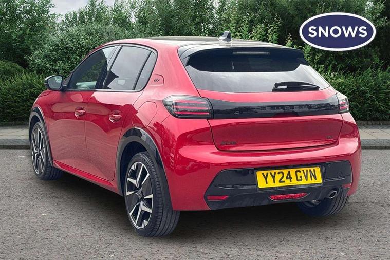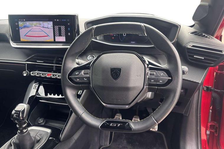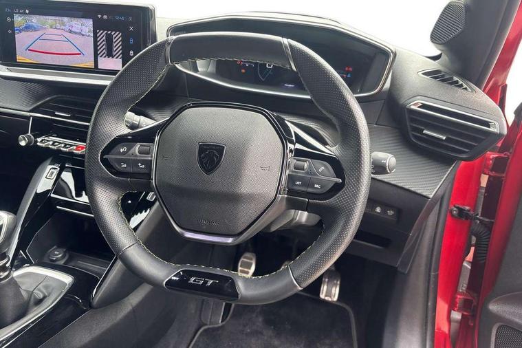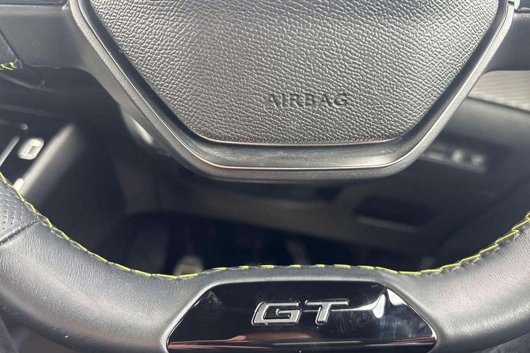 Bluetooth telephone facility, Drive mode select (Eco/Normal/Sport), Driver attention warning, Emergency call service, Exterior temperature indicator with ice warning, Front and rear parking sensors, Multi function trip computer, PEUGEOT i-Cockpit with 10" configurable 3D colour head up instrument panel, PEUGEOT i-Cockpit with 10" HD capacitive colour touchscreen, PEUGEOT i-Cockpit with compact steering wheel, PEUGEOT SOS and assistance, Push button start, Smart phone docking station, Smartphone 15W wireless charging plate, Speed limit recognition and recommendation, Start/stop system, Wireless mirror screen with apple carplay and android auto, 6 Speakers - 2 tweeters and 4 door speakers, DAB Digital radio, Peugeot i-connect infotainment system - 10in HD touchscreen, AM/FM/DAB digital radio, Wifi Mirroring, Bluetooth & 2 USB connection, USB-A socket (x1) and USB-C socket (x1) - rear, USB-C data and charge socket and USB-C charge socket in front, Voice recognition for radio, navigation and telephony features, 2 X Rear number plate lights, Acoustic windscreen, Antenna - Gloss Black 'fin' design, Automatic hazard light activation upon heavy brake application, Body coloured exterior door handles, Dark tinted rear side and tailgate windows, Diamond black rear spoiler (roof), Door sills protection with PEUGEOT signature lettering, Electric heated and power folding door mirrors with courtesy floor lighting, Frameless electrochrome interior rear view mirror, Full LED headlights with automatic height adjustment and PEUGEOT smartbeam assist, Gloss black B pillar, Gloss black door mirror shells, Gloss black front bumper grille with body colour accents, Gloss black rear cluster connecting strip, Gloss black wheel arch extensions, Gloss black window weatherstrips, GT model designation badging on C pillar, GT model designation badging on tailgate, Headlights left on audible warning, LED 3 claw horizontal rear lighting signature (with daylight function) and LED brake lights, indicators and reversing lights, LED daytime running lights with distinctive 3 claw signature, LED front indicators, LED third brake light, Model designation badges front and rear in basalt grey, One touch electric front/rear windows with pinch protection, Rear bumper with gloss black finish, Rear reversing lights, Rear side wing doors, Rear windscreen wiper triggered automatically in reverse gear, Roof spoiler, Tailgate with heated rear windscreen and wiper blade, Variable front intermittent wipers, 1/3 to 2/3 split folding rear seats, 12V socket, 3 seat bench in 2nd row, 8 Colour personalisable ambient lighting, Adamite green contrast stitching to front and rear armrest, front centre console, dashboard facia, Aluminium pedals, Automatic mono zone climate control air condition, Boot lighting, Driver and front passenger dynamic seats, Driver and front passenger seat manual adjustment in longitudinal and back rest angle, Driver and front passenger seat mechanical height adjustment, Driver and passenger sun visors, front footwells and central storage with LED lighting, Electric power steering with reach and rake adjustable steering column, Front centre armrest with storage compartment, Front LED interior light, front LED reading spotlights(x2), rear LED reading spotlight(x2), Gear shift indicator, High centre console with 2 cup holders, Luxury carpet mats, Map pockets on the backs of the front seats, Multi function full grain perforated leather steering wheel with adamite green stitch detail and 'GT' emblem, Passenger seat height adjuster, Piano keys gloss black plated toggle switches to access main functions of the vehicle, Rear centre headrest, Roof lining - Mistral black, Seatbelt unfastened on the move audible and visual alert for front and rear seats, Single front passenger seat, Visibility pack - 208, 2x Isofix child seat fitting on outer rear seats, 3 rear 3 point seatbelts, ABS (Anti-lock Braking System) with EBD (Electronic Brakeforce Distribution) and EBA (Emergency Braking Assistance), Active safety brake with night function/cyclists/pedestrians, Child locking functionality on rear doors, Driver and front passenger airbag with passenger airbag deactivation, Driver/front passenger side airbags, Electric parking brake, ESP with Hill Assist, Front and rear curtain airbags, Front and rear disc brakes, Front optimised safety headrests and 3 x rear retractable headrests with height adjustable, Front three point retractable seatbelts with force limiters, Remote plip(x2) for locking, unlocking, includes emergency key blade, Tyre pressure monitoring system, Acoustic vehicle alert system (AVAS), Alarm - Connected, volumetric , perimetric, anti lift sensor, Automatic door locking when moving off, Deadlock, Electronic code immobiliser, Peugeot Open and Go System, Remote central locking, Carbon effect Dashboard, front and rear door panel finish, 17" Yanaka two tone diamond cut alloy wheels wheels includes gloss black inserts, Space saver spare wheel,
