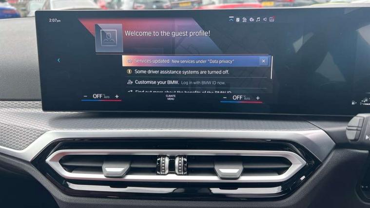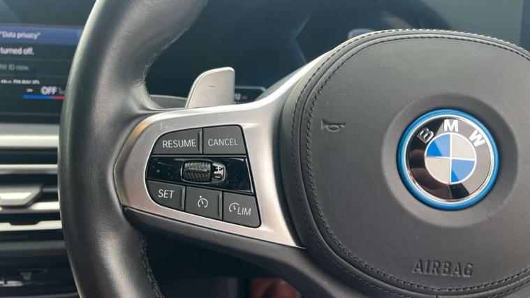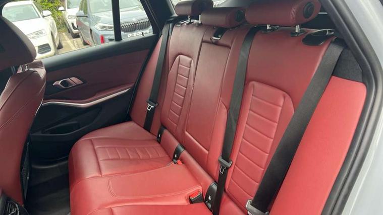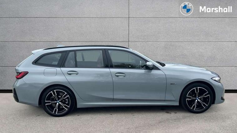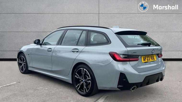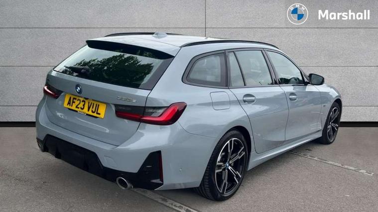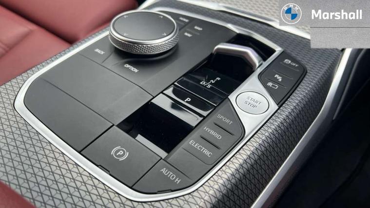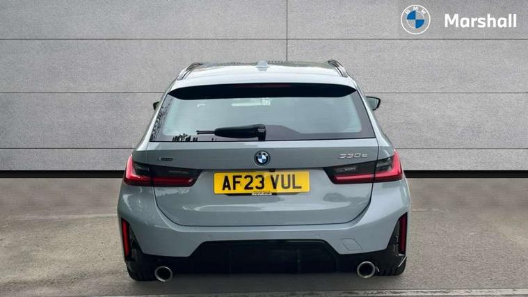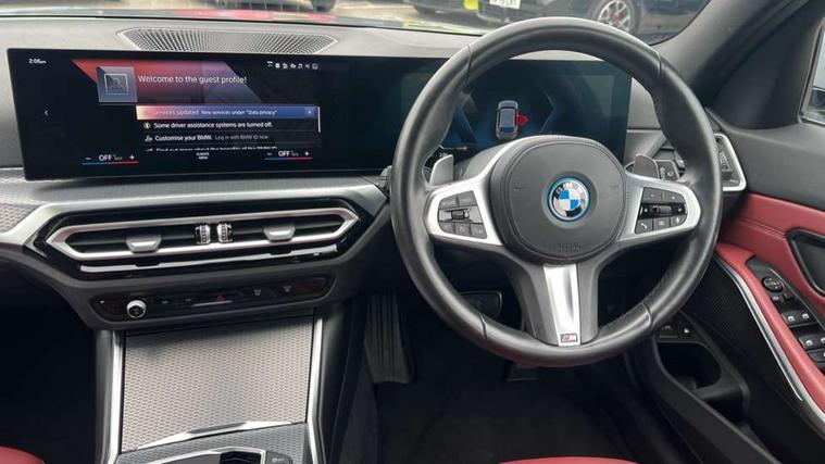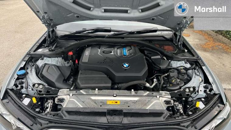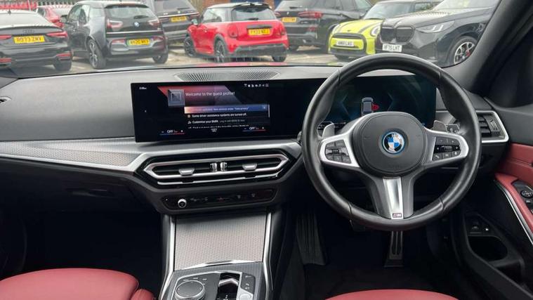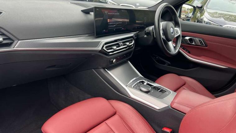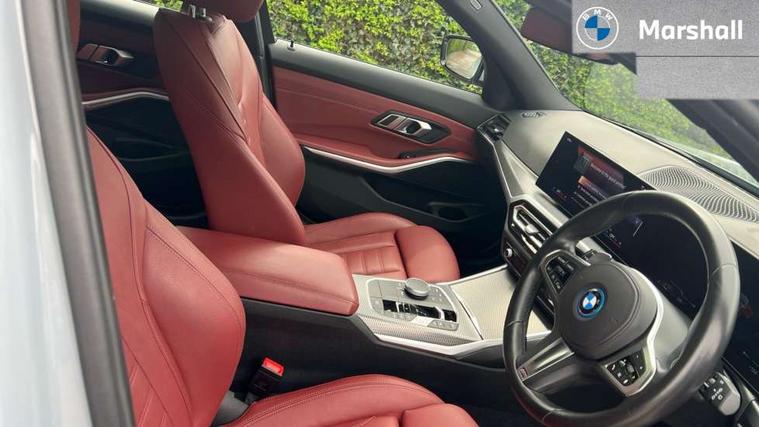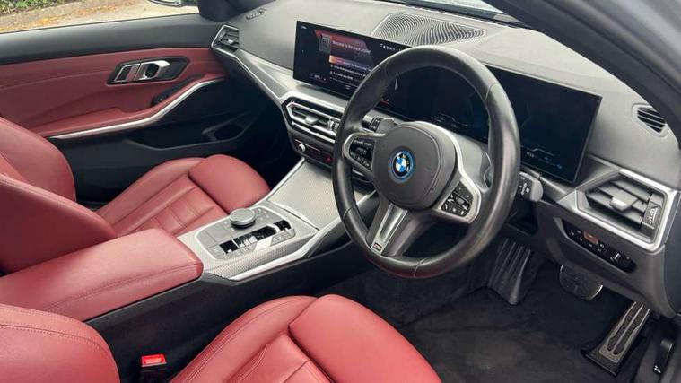 Active guard plus, Attentiveness assist, Automatic Start/stop button, BMW iDrive, BMW Teleservices, Condition based service, ConnectedDrive Services, Driving experience switch, Live cockpit plus with Navigation + 12.3" instrument display + 14.9" display, Intelligent voice assist, 2 USB, 4G LTE connect, Oil sensor for level and grade, PAS, Preparation for driver assistance, Shifting point display, Double joint spring strut front axle, Electronic differential lock control (EDLC), Fast charging cable - Mode 3, Flexible charger (Mode 2), Fuel tank breather system, Sport automatic transmission with steering-wheel mounted gearshift paddles and launch control, Standard suspension, DAB tuner, "Electrified by i" exterior badging on charging flap, 3rd brake light, Acoustic glazing, Automatic headlight beam throw control with load dependent regulating reaction, dynamic compensation of braking dive and acceleration squat, BMW emblem, engine compartment lid and tailgate, Body colour roof fin, Door sill strips, Electric windows - front and rear, with open/close fingertip control, anti-trap facility and comfort closing, Follow me home headlight function, Front and rear bumper system with replaceable deformation elements, Front apron plastic in body colour, Fuel filler flap - right rear in body colour, Heated washer jets, High gloss shadow line exterior trim, High gloss shadow line roof rails, Illuminated bow type door handles in body colour drivers side with door lock, Interior rear view electrochromatic mirror with automatic anti dazzle function, LED rear lights, Licence plate panel integrated into front bumper and tailgate, Matt black B-pillar finsher, Matt black window recess cover, Model designation on right side of tailgate, One piece front bumper cover including towing eye cover in body colour, Rain sensor with automatic headlight activation, Rear side wing doors, Rear wiper, Reversing lights, Side frame decorative moulding black matt, Visible exhaust tailpipe finisher, Welcome lights in interior and door handle area, 12V power socket in front storage compartment, 2 front cupholder in centre console with clamping elements and matt black inlay, 3 seat bench in 2nd row, 3 zone automatic air conditioning, 40:20:40 split folding rear seat with loading system, Ambient inside door handle light, Ambient light design projected onto the left and right entering and exiting area, Ambient lighting front and rear with 9 selectable colours, Ambient storage compartment lighting in the centre console, Anthracite headlining, Armrest integrated in front and rear door trim + front centre console armrest, Battery in luggage compartment, BMW ID, Contour lighting in instrument panel and door trim panel, Cruise control operation in steering wheel, Driver backrest width adjustment, Folding rear centre armrest with 2 cupholders, Front and rear ambient footwell lighting, Front and rear door exit lighting (left / right), Front and rear headrests, Front and rear reading lights, Front and rear velour floor mats, Front sport seats, Heated front seats, Height adjustable mechanically and infinitely variable steering column, Illuminated armrest storage compartment, Illuminated glove compartment, Illuminated luggage compartment, Lashing eyelets in luggage compartment, M Sport multifunction leather steering wheel, Make-up mirror lights, Single front passenger seat, Standard seat for driver and passenger with manual adjustment, Sunvisors with vanity mirrors and ticket pocket, Toolkit located in luggage compartment, Connected pack professional - 3 Series Saloon/Touring, Interior and exterior mirror pack - 3 Series Touring/Saloon, M Aerodynamics package - 3 Series Saloon/Touring, M sport exterior styling pack - 3 Series Saloon/Touring, Storage compartment pack - 3 Series Saloon/Touring, 3x3 point rear seatbelts, BMW emergency call, Child locks on rear doors, Crash sensor activating of airbags, Unlocking doors, hazard warning lights, interior light, safety battery terminal, Driver and front passenger with seat occupancy detection for driver's and passenger side, Driver and passenger side airbags, body protection at side and airbags deploy from seat backrests, Dynamic brake control, Dynamic stability control + (DSC+) - Anti-lock Braking System (ABS) with brake assist and cornering brake control + Automatic Stability Control (ASC), Dynamic Traction Control - DTC, Electric parking brake including automatic hold function and automatic release of the parking brake when driving off, Head airbags in 1st and 2nd row, head protection at side, curtain airbags open from headliner above 1st and 2nd row, Plastic fuel tank, Side impact protection, Tyre pressure monitoring with three level warning strategy, Ventilated front and rear disc brakes, Warning triangle and first aid kit, Alarm system, Centre lock switch, Closing system with central locking, Electronic vehicle immobiliser,