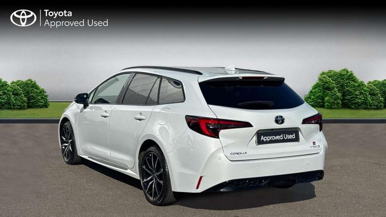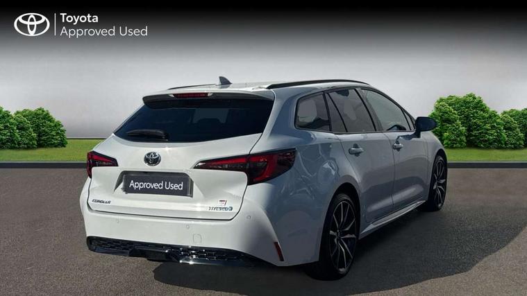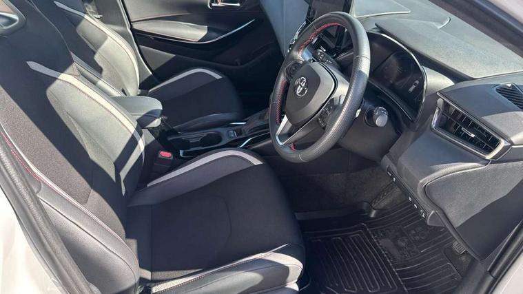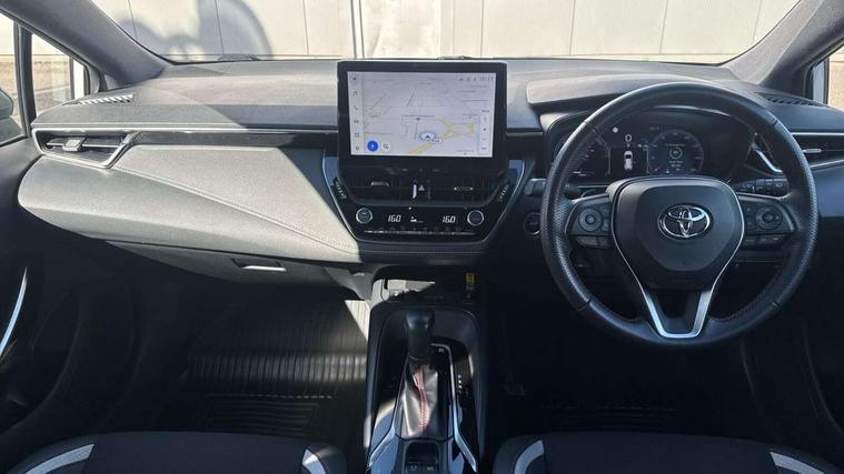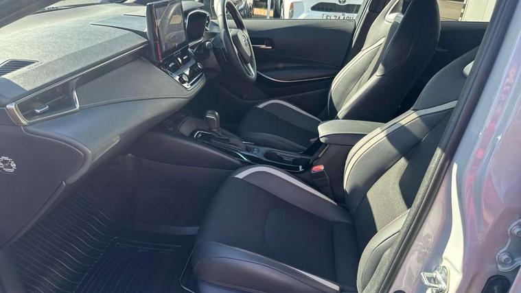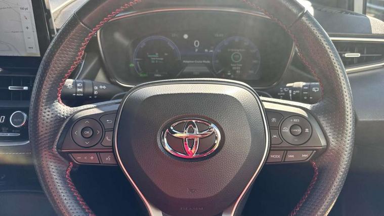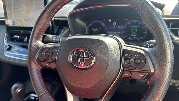 10.5" Multimedia display screen, Attention assist, Bluetooth telephone connectivity, Connected car functionality upgrade, tracker, remote status and e-care, Drive mode select (Eco, Normal), E-call, Electrically assisted power steering, EV drive indicator, Front and rear parking sensors with auto brake, Full Digital 12.3" TFT Digital Combimeter, Key reminder warning, Lane Departure Alert (LDA) switch on steering wheel, Memory on adjustable speed limiter, MyT connected services, Proactive driving assist (PDA), Reversing camera, Smart entry and push button start with GR Logo, Smartphone integration with Apple CarPlay and wired android auto, Tailgate, Toyota remote services, Toyota smart connect navigation, Wireless charger, Gasoline particulate filter, Vehicle Stability Control (VSC), 6 speakers, AM/FM radio, DAB Digital radio, Front USB-C in centre console, Front USB-C in dashboard, Smart voice assist/ Voice recognition, USB and Aux in connectors + 12V front outlet, Anti-jam protection on power windows, Auto up and down function on all power windows, Automatic folding mirrors, Automatic headlights with high beam assist, Black centre and side air vents, Black roof rails, Black toyota logo in front, Body coloured bumpers, Body coloured door mirrors, Body coloured outside door handles, Dark chrome lower grille, Electrochromatic mirror, Follow me home headlights, GR Sport dark chrome front mesh grille and black rear grille, GR Sport exclusive under guard, GR sport scuff plates, Height memory opening on power tailgate, LED daytime running lights, LED dual beam projector headlights, LED front fog lights, LED High mounted stop light, LED rear combi lights with LED lightguide, Manual headlight levelling system, New grille pattern, Noise reduction layer on front windows, Noise reduction layer on windscreen, Piano black diffuser, Power adjustable heated door mirrors, Power front windows, Power rear windows, Power tailgate with kick sensor, Privacy glass with UV filter, Rain sensing wipers, Rear side wing doors, Rear window defogger, Rear window wiper, Remote tailgate release on key, Reverse tilting door mirrors, Rocker and door lower moulding, Roof spoiler, Satin chrome insert on front air vents, Satin chrome insert on front door assist grips, Satin chrome inserts on rear passenger air vents, Satin silver front spoiler, Shark fin antenna, Tailgate release with push button, Tailgate remote release in cabin, Time adjustment on intermittent wiper, Turning signal integrated indicators in door mirrors, Unique lower skirt, Unique side rocker with black insert, UV-filter on driver and passenger windows, 12v power outlet - luggage side, 2 Shopping bag hooks in luggage compartment, 3 rear headrests, 3 seat bench in 2nd row, 3 spoke leather steering wheel with satin insert/red stitching + gear knob, 4 tie down hooks in luggage compartment, 60/40 split folding rear seat, Adaptive cruise control (ACC) switch on steering wheel, Adjustable speed limiter switch on steering wheel, Audio, multimedia and telephone switches on steering wheel, Black armrest on centre console box, Black gear shift console, Boot underfloor storage, Driver and front passenger personal light, Driver and passenger assist grip, Driver and passenger seatback pockets, Driver and passenger sun visor with mirror and light, Dual level boot floor, Dual sided deck board in boot, Dual zone automatic air conditioning with ECO mode switch, Fabric/synthetic leather upholstery, Front and rear cup and bottle holders, Front and rear door pockets, Front head restraints, Front passenger seat, Front sliding synthetic leather armrest, GR Sports seats with partial leather bolsters, Heated seats, Illuminated entry system in room lamp, ISOFIX seat fixing (2 fixings on rear outer seats), LED boot light, Luggage utility boot rails, Manual height adjustable for driver and front passenger seat, Manually tilt with sliding driver and front passenger seat, Paddle shifts, Pollen filter, Power window switches with satin chrome inserts, Rear armrest with 2 cupholders, Rear passenger coat hooks (2), Rear passenger personal lights, Red stitching on gear shift, Remote air conditioning, Retractable tonneau cover with luggage partition net, Satin chrome inside door handles, Satin chrome surround on heater control panel, Satin chrome surround on speedometer, Side storage in boot, Sliding armrest on centre console box, Slow opening glovebox with lights, Textile floor mats, Tilt/telescopic steering column, Tonneau cover with under floor storage, Toyota easy flat system, Voice recognition switch on steering wheel, Whiplash Injury Lessening (WIL) feature (active headrest) for seats, White ambient lighting on open tray and front cup holder, Toyota safety sense 3 pack - Corolla, 3x3 point rear seatbelts, Adjustable driver and front passenger seat belt extender to top anchor point, Anti lock braking system + Electronic brake force distribution, Brake assist function, Child locks on rear doors, Downhill Assist Control (DAC), Electronic parking brake, Emergency brake light signal (EBS), Front passenger airbag on/off switch, Front seatbelt reminder, HAC-Hill-start Assist Control, Rear seat belt reminder, Seatbelt pretensioners and force limiters, Supplemental restraint system (SRS) 7 airbags - dual driver, dual side curtain, side impact and driver knee airbags, Traction control, Tyre pressure warning system, Acoustic vehicle alert system (AVAS), Alarm with motion sensor and immobilizer, Power passenger window lock, Remote central locking + deadlocks, GR Sport interior styling with accents and exterior styling, Satin chrome dash trim, Soft touch texture on upper dashboard, Stitching on lower dashboard, 18" Black machined face 10 spoke alloy wheels, Tyre repair kit, Unique wheel finish with red wheel cap,