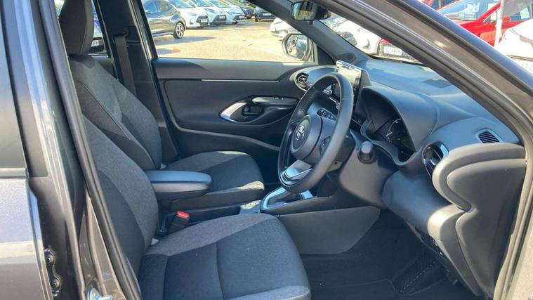 7" Multi information display screen, 8" Toyota touch 2 multimedia system with Smartphone integration with Apple CarPlay and Android auto, Adjustable speed limiter, Bluetooth connectivity, Driver attention alert system, eCall emergency system, Electric power steering, Full range intelligent adaptive cruise control, Hybrid system indicator, Key reminder warning, Lane trace assist, Multimedia, audio, telephone and voice recognition switches on steering wheel, My T Connected services, Pre-collision system enhanced with emergency steering assist, Reversing camera, Road sign assist - RSA, Steering assisted vehicle stability control, 6 speakers, DAB Digital radio, USB connection, 3rd brake light, Acoustic windscreen glass, Aluminium roof rails, Anti-jam protection on power windows, Auto high beam [AHB] with on/off switch, Automatic headlights, Black lower front grille, Black Shark-fin antenna, Black upper front grille, Black wheel arch mouldings, Body colour door handles, Body colour front bumper, Body colour rear bumper, Electric adjustable heated door mirrors, Follow me home headlights, Front and rear electric windows with auto up/down function, Front intermittent wipers, Headlight cut off reminder, Indicators integrated on door mirrors, Intermittent rear wiper, LED daytime running lights guide, LED front fog lights, LED front light guide, LED Indicators, LED projector headlights, LED rear light guide, Manual headlight levelling, Manually retractable door mirrors, Noise reduction layer on windscreen, Privacy glass, Rain sensor, Rear LED lights with sequential indicators, Rear side wing doors, Rear spoiler, Rear window defogger, 12v power outlet - front, 2x Rear coat hooks, 3 seat bench in 2nd row, 3 spoke leather steering wheel, 40:20:40 split folding rear bench seat, Adjustable speed limiter switch on steering wheel, Auto air conditioning, Black roof lining, Boot light, Central armrest, Centre console in light blue ambent lighting, Driver and front passenger personal lights, Fabric door trim, Fabric upholstery, Footwell in light blue ambient lighting, Front console box, Front cup holders, Front head restraints, Glovebox, Height adjustable driver's seat, Height adjustable front passenger seat, Hooks for luggage holding belts, ISOFIX child restraint system, Lane departure alert switch on steering control, Leather gearshift, Light blue ambient lighting on front doors, Manual telescopic and tilting steering wheel, Mirror on driver and passenger sun visor, Pollen air filter, Rear cup holders, Rear head restraints, Single front passenger seat, Soft tonneau cover, 3x3 point rear seat belts, ABS+EBD+Brake assist, Driver and passenger central airbags, Driver and passenger front airbags, Driver and passenger side airbags, Electronic parking brake, Emergency brake light system (EBS), Front seat belt reminder, Hill start assist control (HAC), Passenger airbag on/off switch, Pre-collision system with pedestrian and cyclist detection, Rear door child safety locks, Rear passenger side airbags, Rear seat belt reminder, Traction control, Tyre pressure warning system, Immobiliser, Intrusion alarm, Keyless smart entry with push button start, Power door locks, Power passenger window lock, Remote door lock, Tyre repair kit,