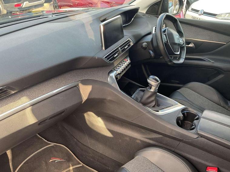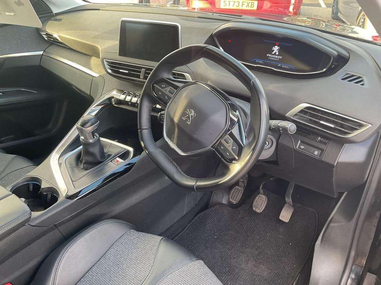 'Lights On' Reminder warning buzzer, 3D connected navigation + voice control + Peugeot connect SOS and assistance, Bluetooth telephone facility, Digital clock, Exterior temperature indicator with ice warning, Front and rear parking sensors, Lane departure warning system, Mirror screen with mirror link, apple carplay and android auto, Multi function trip computer, PEUGEOT i-Cockpit with 8.0" capacitive touchscreen in centre console, PEUGEOT i-Cockpit with compact sports steering wheel, PEUGEOT i-Cockpit with configurable 12.3" Head-up digital instrument panel, Speed limit recognition and recommendation, Diesel particulate filter, Dynamic stability control and electronic anti-skid system, DAB Digital radio, Steering wheel mounted controls, USB socket, 2 X Rear number plate lights, Aluminium longitudinal roof bars, Automatic hazard light activation upon heavy brake application, Automatic triggered rear windscreen wiper in reverse gear, Black and chrome front wing trim, Black rubber side window trim, Body colour door handles, Body colour door mirror shells, Body colour rear spoiler with stainless steel edging trim, Body coloured bumpers, Body protectors (bottom of front and rear bumpers + wheel arches + protection at bottom of doors) in black, Chrome front fog light trim, Chrome rear bumper facia, Dark tinted rear side windows + tailgate window, Door mirror mounted LED courtesy approach lights, Electric operated/heated door mirrors, Front windscreen wiper with magic wash cleaning system, Gloss black B and C pillar and aerodynamic deflector trim, Gloss black rear cluster connecting strip, Gloss black windscreen surround, Headlights left on audible warning, Heated rear windscreen with integrated antenna, LED daytime running lights, LED side indicator lights integrated into door mirrors, Lion grey front bumper scuff plate, One touch electric front/rear windows with pinch protection, Power folding door mirrors with blind spot detection indicator and auto dipping function in reverse gear, Radiator grille in chrome edge trim and facets, Rear LED Peugeot signature 'Claw Effect' lights, Stainless steel roof arches, 1/3 to 2/3 split folding rear seats, 12V Sockets in dashboard, rear cabin and load area, 2 cupholders in front centre console, 2 rear reading spotlights, 2x Rear coat hooks, 3x Isofix child seat fittings in the front passenger and outer rear seats, 4 Grab handles retractable and damped, Blue ambient lighting for connecting zone, Blue ambient lighting to front door panels, central storage and cupholders, Blue ambient lighting to head up instrument panel, Centre front armrest with butterfly wing opening and illuminated storage compartment, Driver and front passenger seat height adjustment, Driver seat manual adjustment, Dual zone automatic climate control, Electric power steering with reach and rake adjustable steering column, Fixing rings 4 in load compartment, Flocked glovebox interior, Fold flat front passenger seat with picnic table, Footwell illumination, Front interior light with 2 reading spotlights and rear interior light with timer, Front passenger seat manual adjustments, Front seat back map pockets, Gear shift indicator, Illuminated glovebox, Illuminated vanity mirrors, Leather steering wheel with detail stitch, Rear armrest with ski flap and two cup holders, Rear centre console ventilation system, Reclining front seats, Roof LED interior lighting, Roof lining - Salin light grey, Satin chrome dashboard trim, Satin chrome digital instrument panel and touchscreen trim, Satin chrome front door panel recess trim, Satin chrome gear lever, Satin chrome interior door handles, Satin chrome scorpion's tail and toggle switch trim, Seatbelt not fastened audible and visual alert for front seats, Seatbelt unfastened on the move audible and visual alert for front and rear seats, Two position boot floor, Safety pack - 3008, Safety Plus Pack - 3008, Visibility pack - 3008, 3x Rear three-point retractable seatbelts with force limiters in the outer rear seats, Adaptive driver and front passenger airbags with passenger airbag deactivation function, Anti lock braking system + Electronic brake force distribution, Driver and front passenger side airbags, Electric child locking functionality on rear windows and doors, Electric parking brake, Front and rear curtain airbags, Front optimised safety headrests and 3 x rear retractable headrests with height adjustable, Front three point retractable seatbelts with pre tensioners and force limiters, Front ventilated disc brakes and rear disc brakes, Height adjustable front seatbelts, Hill start assist, Tyre pressure sensor, Anti theft alarm, Automatic door locking when moving off, Central locking button on dash, Deadlocks, Electronic immobiliser, Locking wheel bolts, Remote control central locking with two plip keys, Brumeo fabric Dashboard, front and rear door panel finish,