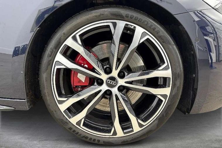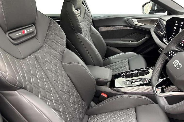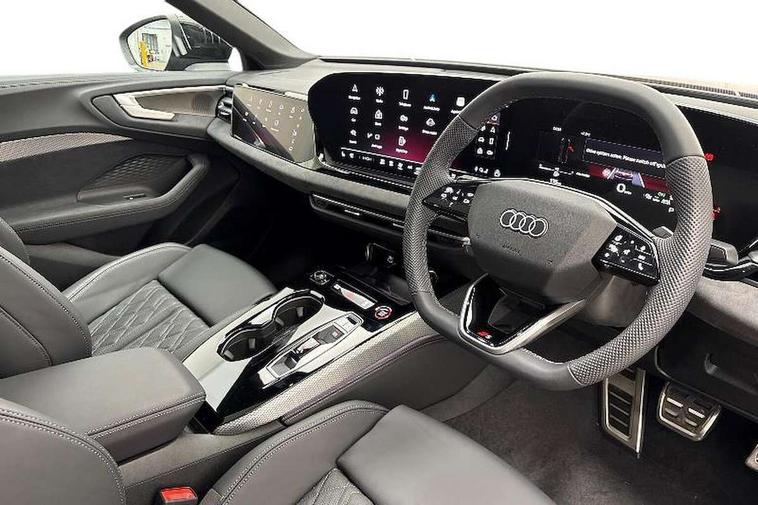 Adaptive cruise assist plus with steering intervention, Advanced driver attention and fatigue montior, Audi application store, Audi assistant, Audi connect emergency call and service, Audi drive select, Audi virtual cockpit plus with 11.9" OLED colour display, Automatic start/stop system with coasting functionality, Camera based traffic sign recognition, Garage door opener, Intersection assist, Lane change assistant with exit warning system, rear cross traffic alert and rear turn assist, Lane departure warning with emergency assist, MMI 10.9" front passenger touch display, MMI navigation plus with high resolution 14.5" OLED touchscreen colour display, Park assist plus, Parking system plus with 360 display, Progressive steering with servotronic, Smartphone interface, Swerve assist and turn assist, Top view camera, Traffic sign based speed limiter, Quattro with sport differential, S sports suspension with damper control lowered by 20mm, 2 USB-C ports in both the front and rear, DAB digital radio reception, Smartphone compartment with wireless charging, Aluminium window trims, Auto dimming rear view mirror, Black door handles, Black roof rails, Dark chrome-plated tailpipe trims, Digital OLED tail lights including communication light, Door mirrors - electrically adjustable, heated, folding and auto dimming on both sides, Fixed panoramic glass roof with switchable transparency, Front and rear electric windows, Front door sill trims with aluminium inlays, illuminated with 'S' logo, Headlight cleaning system, High beam assist, LED daytime running lights, LED third brake light, Matrix LED headlights with eight light signatures selectable via the MMI or the myAudi app, Privacy glass, Rear and side windows with heat insulating glass, Rear side wing doors, Rear wash/wipe, Red S rhombus badging with S lettering on rear, S bumpers, radiator grille and diffuser in titanium matt black and diffuser insert in matt silver, White rhombus logo projection light in exterior mirrors, Windscreen with acoustic glazing, 3 rear headrests, 3 seat rear bench, 3 spoke leather steering wheel with multi-function buttons with touch control, flattened on top and bottom, with S badging and contrast stitching, 3-zone automatic climate control, 40:20:40 split folding rear seat bench with centre armrest and cup holders, Comfort front centre armrest, Electric steering wheel adjustment, Electrically adjustable front seats, Front and rear floor mats, Front sport seats plus with integrated headrest and S embossed logo, Headlining in black cloth, Heated front and outer rear seats, Heated steering wheel, i-Size child seat mounting on the front passenger side and outer rear seats, i-Size and top tether on the outer rear seats, Luggage compartment lid, electrically opening and closing, Memory function for driver seat, Pearl Nappa leather upholstery, Pneumatically adjustable lumbar support, Single front passenger seat, Stainless steel pedals and footrest, Steering wheel grips in perforated leather and shift paddles, Ventilation seat and massage function for the driver and front passenger, Black styling package plus - A5, Sound and vision pack - A5, 3x3 point rear seat belts, Acoustic vehicle alerting system, Convenience key with safelock, Driver airbag, Electric child safety locks, First aid kit with warning triangle and vests, Front emergency brake assist, Front passenger airbag, Front passenger airbag deactivation, Hill hold assist, Occupant detection in rear seat area, Proactive passenger protection system for front, sides and rear, Red brake calipers, Seat belt monitoring with rear seat occupant reminder, Side airbags in front and rear with head airbag system and front interaction airbag, Tyre pressure loss indicator, Anti theft alarm, Anti-theft wheel bolts, Keyless Go, Accent surfaces and control buttons in gloss black, Black dashboard with contrast stitching, Softwrap in Dinamica with contrast stitching, Upper and lower interior elements in dinamica microfiber, 20" 5 twin spoke design Audi Sport alloy wheels in metallic black and gloss turned finish, Tyre repair kit,