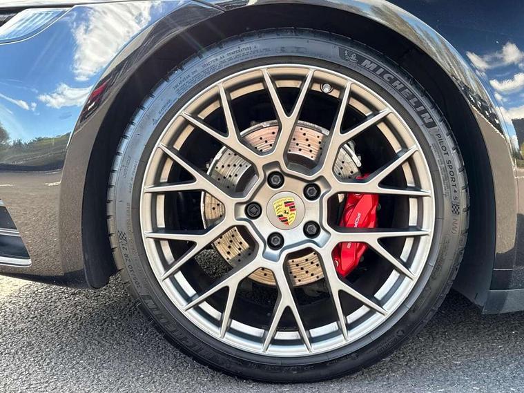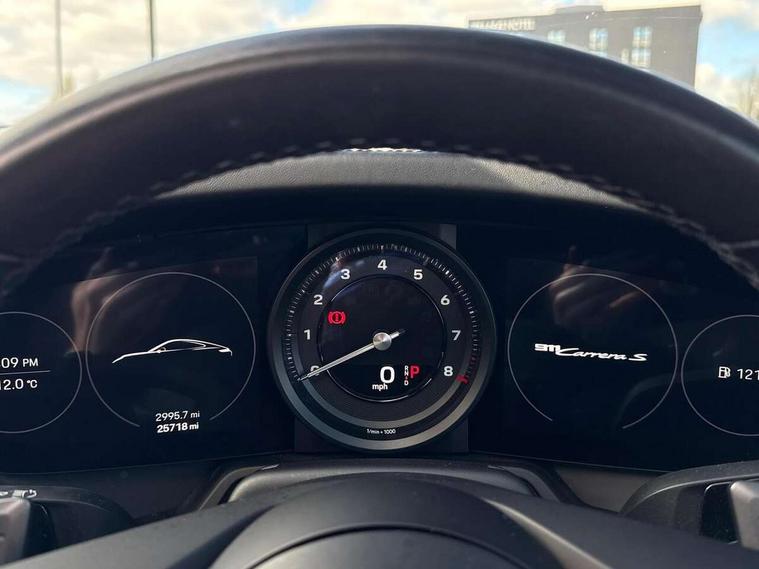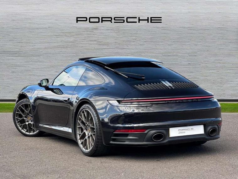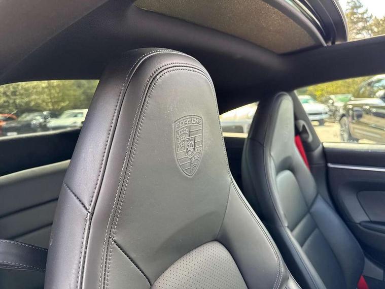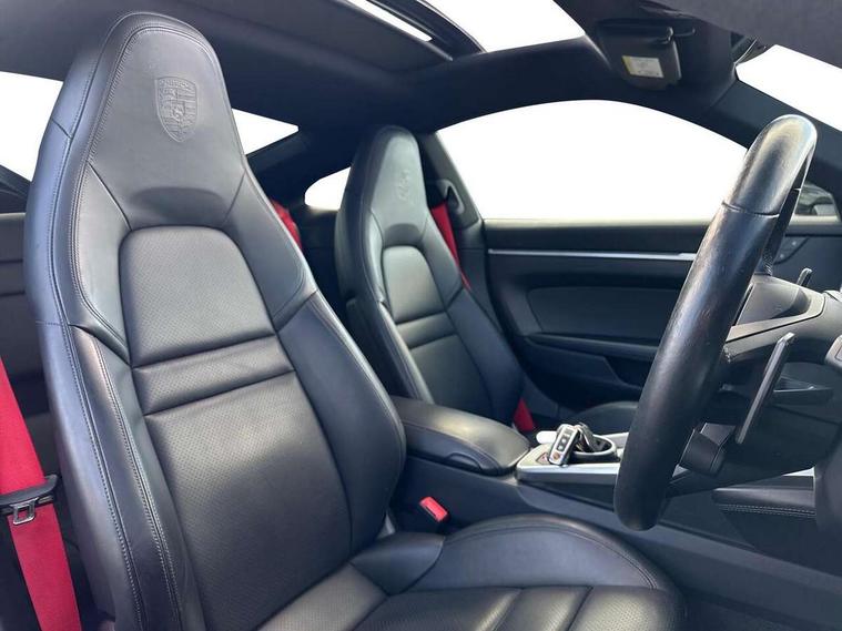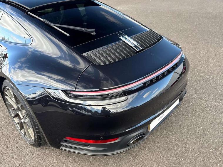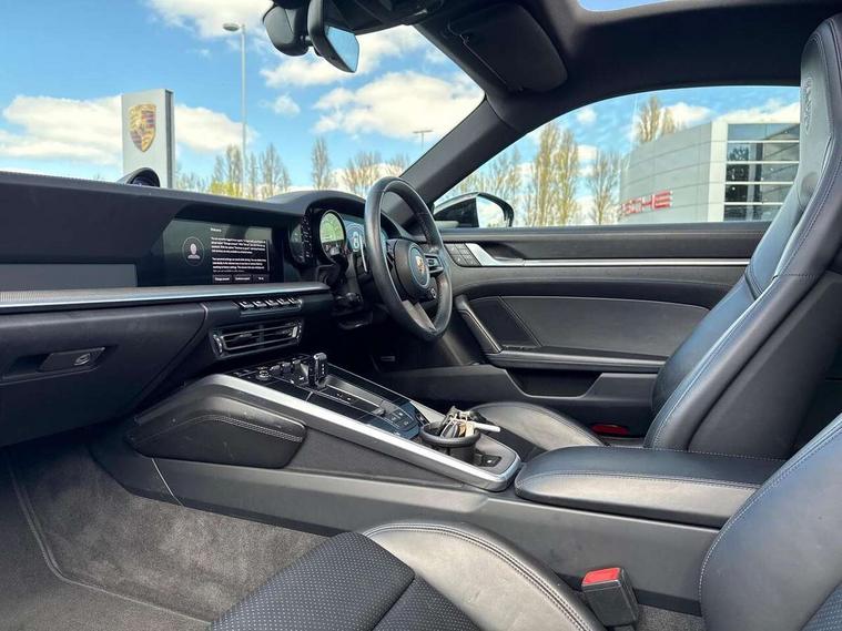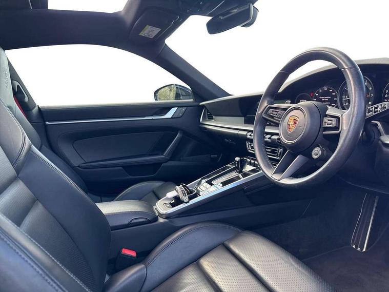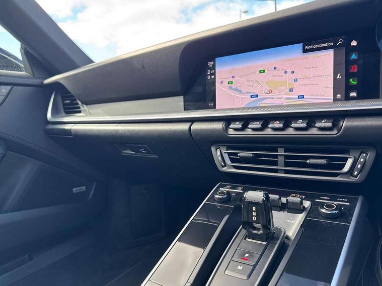 10.9 inch centre display, Apple car play and Android auto, Automatic start/stop system, Digital display for selected gear in rev counter, eCall emergency system, Gear indicator in rev counter, Instrument cluster with central analogue rev counter and two 7-inch TFT displays, Porsche Communication Management (PCM) including online navigation module, mobile phone preparation, audio interfaces and voice control system, Porsche connect plus, Apple carplay, LTE telephone module with Sim card reader, wireless internet access and other Porsche connect services, Porsche WET Mode, Service indicator, Stationary management with HOLD function, Trip computer, Warn and Brake Assist with intergrated front cameras, 8 Speed Porsche Doppelkupplung (PDK), Aluminium block and cylinder heads, Direct fuel injection (DFI), Expansion intake manifold, Four valve per cylinder, Integrated dry-sump lubrication with an on-demand oil pump, McPherson-strut suspension with anti-roll bar at front, Multi-link suspension with anti-roll bar at rear, Porsche Stability Management (PSM), ABS with extended brake functions, Porsche Torque Vectoring Plus (PTV Plus) inc electronically regulated rear differential lock and fully variable torque distribution, Rear wheel drive, Twin turbocharger intercooled, Two gasoline particulate filter, Two three-way catalytic converters and on-board diagnostics for monitoring emission control system, VarioCam Plus variable valve timing and switchable valve lift, Water cooled with thermal management, 2 USB-C connectivity and charge ports in the centre console storage compartment, DAB Digital radio, "PORSCHE" lettering integrated in taillight strip, Auto deploying rear spoiler, Automatic headlight activation including welcome home lighting, Black trim strips, Body coloured bumpers, Electrically adjustable heated exterior mirrors on door waist rails, aspherical on driver's side, Engine compartment cover grille with vertical slats in black (high-gloss), Green tinted heat insulating glass, Heated rear windscreen, Intelligent lightweight body in Aluminium/Steel composite construction, LED auxiliary light units in the front end with position lights, direction indicators and side indicators, Power windows with one touch operation and door seal protection, Rear lid grille with vertical slats in high gloss black, Retractable door handles, Side air intakes at front with active cooling flaps and air blades, Side skirts trim in black, Side window trim strips in black, Taillight strip including integral parking lights and rear driving lights, Trims on sideskirts in black, Windscreen washer system with aero wiper blades and washer jets, 12V socket in front passenger footwell, 2+2 seater with rear engine, 2-zone automatic climate control with separate temperature settings for driver and front passenger, Ascending centre console with storage compartment, Clothes hooks on seat backrests, Dashboard trim strip, centre console trim and door panel trim strips in diamar darksilver, Driver and front passenger illuminated vanity mirrors, Embossed leather on front center seat, side bolsters and front seat headrests, Front and rear head restraints, Heated front seats, ISOFIX child seat mounting points on passenger seat, LED door lights, LED footwell lights, LED glove compartment lighting, LED ignition light, LED luggage compartment lighting, LED orientation light, LED reading lights, Lockable glove compartment, Luggage compartment at front, Luggage compartment lid release, Particle/pollen filter with active carbon filter, PDK gear selector with automatic mode, manual gear selection via shift paddles on the steering wheel, Smooth finish leather on steering wheel rim, door handles, door panel armrests and centre console storage compartment lid, Split folding rear seats, Storage compartments in each doors, Two individual cupholders 1x as inlet in centre console and 1x passenger side, Brake discs with 350mm diameter at front and 350mm at rear, internally vented and cross-drilled, Electric parking brake, Electromechanical power brake, Full size two stage airbags for driver and front passenger, Pedestrian protection, Porsche side impact protection system includes side impact protection in doors, curtain, head/thorax airbags for driver/front passenger in each door, Tyre pressure monitoring system, Engine immobiliser with remote central locking and alarm system with ultrasonic sound based interior surveillance, Porsche vehicle tracking system (PVTS Plus),