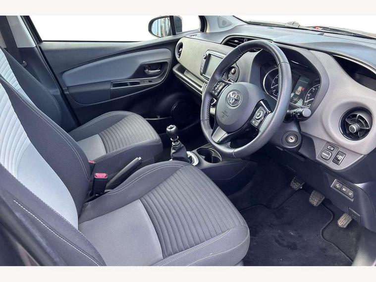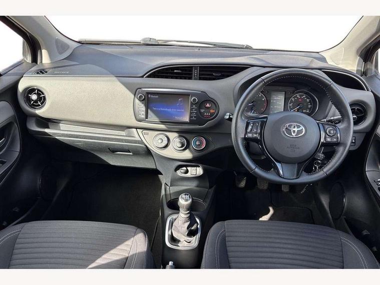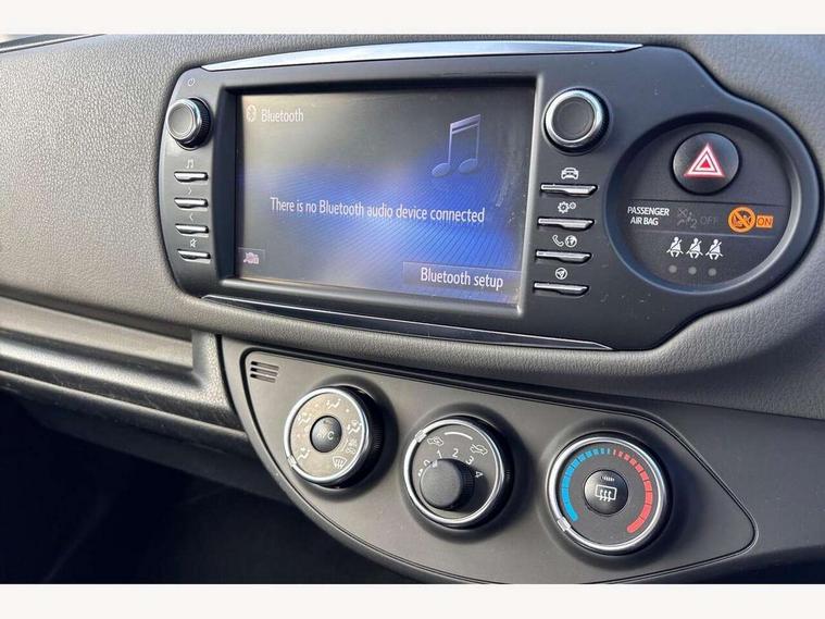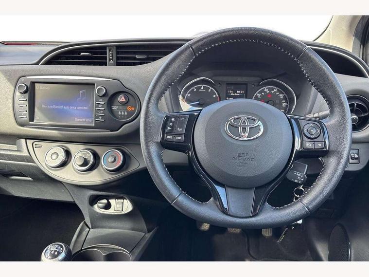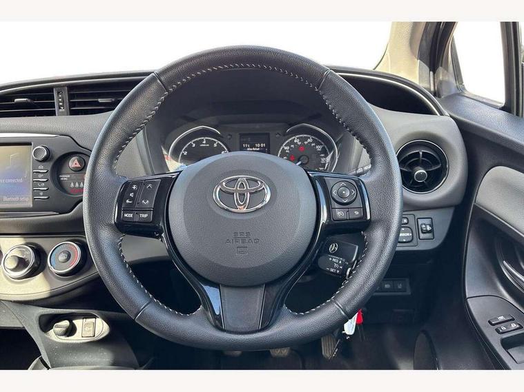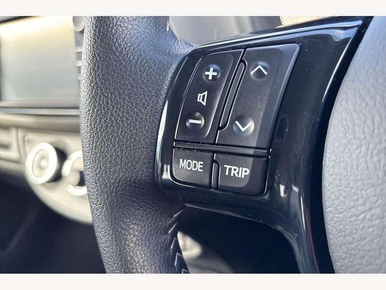 4.2" coloured LED TFT multi information display, Analogue speedometer, Analogue tachometer, Auto speed limiter, Bluetooth connectivity, Cruise control, External temperature gauge, Fuel indicator with low level warning, Key reminder warning, Lights on warning, Multi information display switches on steering wheel, Power Steering, Reversing camera, Trip computer, 6 speakers, Auxiliary input socket, Steering wheel mounted audio/telephone switches, Toyota Touch 2 with DAB, USB connection, Auto up and down function on drivers window, Automatic wipers, Black lower front grille, Body colour bumpers, Body colour door handles, Body coloured door mirrors, Daytime running lights, Electric adjustable heated door mirrors, Electric front windows, Follow me home headlights, Front fog lights, Headlight cut-off reminder, LED High mounted stop lamp, Manual dimming rear view mirror, Projector headlights, Rain sensitive windscreen wipers, Rear combination lights bulb type, Rear window defogger, Rear wiper, Turning signal integrated indicators in door mirrors, 12v power outlet - front, 3 adjustable rear headrests, 3 spoke leather steering wheel, 60/40 split folding rear seat, Active headrests, Boot light, Data Communication Module (DCM) connected services, Driver and front passenger personal light, Driver and front passenger Whiplash Injury Lessening seats, Driver/passenger vanity mirrors with covers, Front and rear cup holders, Front map reading lights, Front seats with lumbar support, Glovebox, Height adjustable driver's seat, Height adjustable front head restraints, Illuminated entry system, Isofix seat fixing, Leather gearshift, Manual air conditioning, Map pockets on the backs of the front seats, Pollen filter, Removable rear parcel shelf, Sliding front seats, Soft touch inner door garnish, Spirit fabric upholstery, Tilt/telescopic steering column, 3 point seatbelts on all rear seats, ABS+EBD+Brake assist, Collision mitigation braking system, Emergency brake light system (EBS), Front passenger airbag on/off switch, Front seatbelt reminder, Height adjustable front seatbelts with pre-tensioners and load limiters, Hill start assist control (HAC), Rear child proof door locks, Rear seat belt reminder, Road sign information display, Seatbelt warning lamp and buzzer, Supplemental restraint system (SRS) airbags - 7 airbags including driver, front passenger, curtain, side and knee airbags, Toyota safety sense including Road sign assist, Pre collision system, auto high beam and lane departure alert), Tyre pressure warning system, Vehicle stability control VSC + traction control, Engine immobiliser, Power and remote door locking, Soft touch instrument panel, Space saver spare wheel,