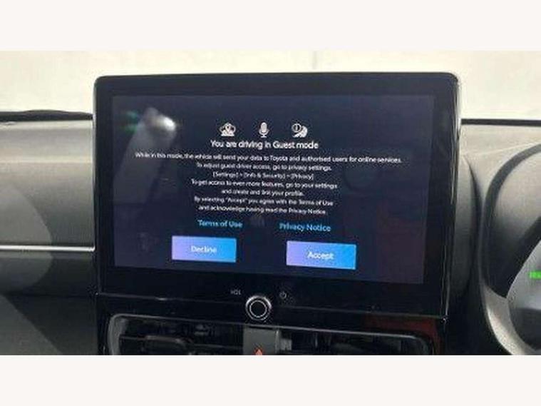 10.5" Multimedia display screen, 7" Multi information display screen, Adaptive cruise control, multi info switches on steering wheel, Adjustable speed limiter, Bluetooth connectivity, Color multi-information display, Digital speedometer, Digital tachometer, Drive mode selector, Driver attention alert system, eCall emergency system, Electric power steering, Emergency driving stop system, Full range intelligent adaptive cruise control, Hybrid system indicator, Intersection turn assist, Key reminder warning, Lane trace assist, My T Connected services, Pre-collision system enhanced with emergency steering assist, Reversing camera, Road sign assist - RSA, Static guide lines on reversing camera, Tailgate, Telephone switch on steering wheel, Wireless Smartphone integration incl Apple CarPlay, Steering assisted vehicle stability control, 6 speakers, DAB Digital radio, Front USB Type-C connector, Front USB-C device charger, Acoustic windscreen glass, Anti-jam protection on power windows, Auto high beam [AHB] with on/off switch, Auto intermittent windscreen wipers, Automatic headlights, Automatic headlights cut-off, Black door moulding, Black lower front grille, Black protection moulding on side doors, Black roof rails, Black upper front grille, Black wheel arch mouldings, Body colour door handles, Body colour front bumper, Body colour rear bumper, Electric adjustable heated door mirrors, Follow me home headlights, Front and rear electric windows with auto up/down function, Headlight cut off reminder, Indicators integrated on door mirrors, Intermittent rear wiper, LED 3rd brake light, LED daytime running lights guide, LED front fog lights, LED front light guide, LED Indicators, LED projector headlights, LED rear lights with sequential indicators, Manual day/night rear view mirror, Manual headlight levelling, Manually retractable door mirrors, Noise reduction layer on windscreen, Pre wiring for towing hook, Privacy glass, Rain sensor, Rear roof spoiler, Rear side wing doors, Rear window defogger, Shark fin antenna, 12v power outlet - front, 2x Rear coat hooks, 3 seat bench in 2nd row, 3 spoke leather steering wheel, 40/60 split deckboard, 40:20:40 split folding rear bench seat, Adjustable rear headrests, Adjustable speed limiter switch on steering wheel, Auto air conditioning, Black roof lining, Boot light, Central armrest, Driver and front passenger personal lights, Driver and front passenger Whiplash injury Lesseing seats, Fabric door trim, Fabric upholstery, Front console box, Front cup holders, Front door pockets, Front head restraints, Front/rear assist grips, Gear shift indicator, Gloss black surround on gear shift console, Height adjustable driver's seat, Height adjustable front passenger seat, Hooks for luggage holding belts, ISOFIX child restraint system, Lane departure alert switch on steering control, Leather gearshift, LED centre room light, Manual telescopic and tilting steering wheel, Mirror on driver and passenger sun visor, Pollen air filter, Power adjustable lumbar support on driver seat, Rear cup holders, Rear door pockets, Rear head restraints, Remote air-conditioning system, Single compartment glovebox, Single front passenger seat, Soft tonneau cover, Storage box under boot floor, Voice recognition switch on steering wheel, Yaris cross floor mats, 3x3 point rear seat belts, ABS+EBD+Brake assist, Driver and passenger central airbags, Driver and passenger front airbags, Driver and passenger side airbags, Electronic parking brake, Emergency brake light system (EBS), Front seat belt reminder, Hill start assist control (HAC), Passenger airbag on/off switch, Pre-collision system with pedestrian and cyclist detection, Rear door child safety locks, Rear passenger side airbags, Rear seat belt reminder, Traction control, Tyre pressure warning system, Immobiliser, Intrusion alarm, Keyless smart entry with push button start, Power door locks, Power passenger window lock, Remote door lock, Gloss black side air vent surrounds, Tyre repair kit,