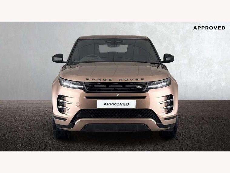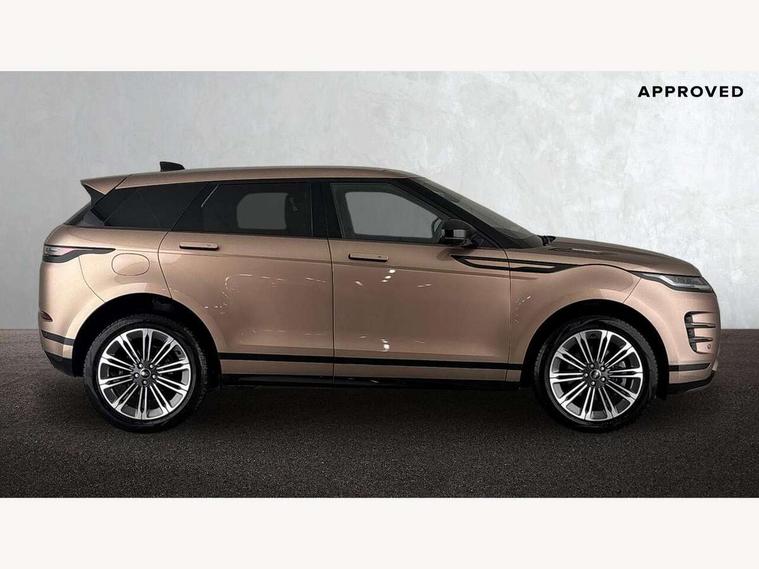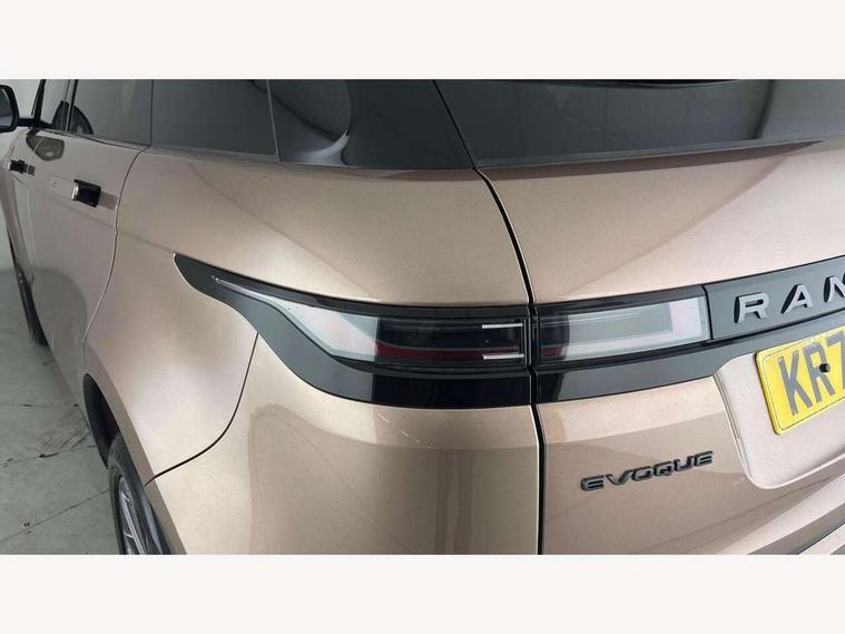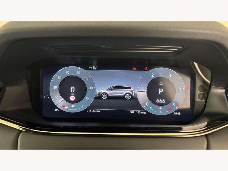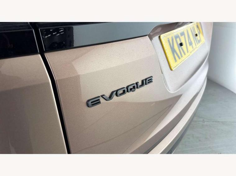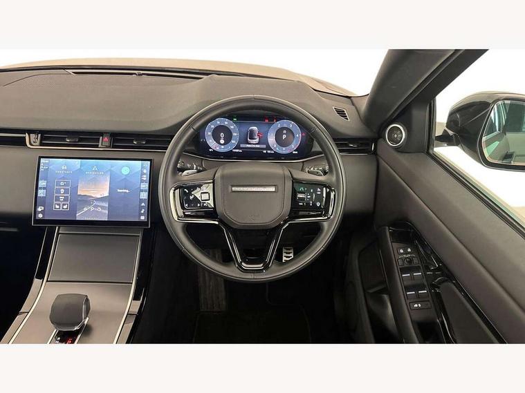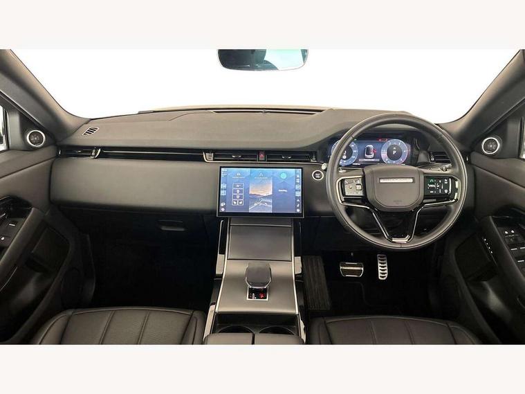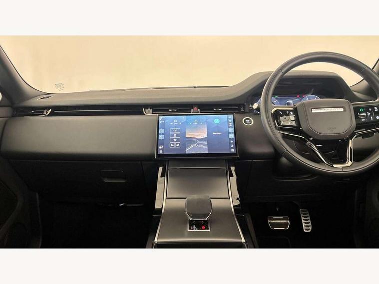 11.4" touch screen, Adaptive cruise control, Android Auto, Apple car play, Blind spot assist, Bluetooth connectivity, Brake pad wear indicator warning light, Driver condition monitor, eCall emergency system, Eco mode, Electronic power assisted steering (EPAS), Front and rear parking aid, InControl remote, Interactive driver display, Land Rover InControl apps, Lane keep assist, Pivi pro connected includes diamond pivi variant, smart settings, connected navigation pro, nuance speech licence, Powered tailgate/boot lid, Rear collision monitor, Rear traffic monitor, Traffic sign recognition with adaptive speed limiter, Voice control system, Wireless device charging, All terrain progress control, Diesel exhaust fluid (DEF) large tank, Efficient Driveline, Large fuel tank, Passive suspension, Terrain Response 2, Digital Audio Broadcast radio-DAB, Steering wheel mounted controls, Acoustic laminated windscreen, Auto headlights, Automatic headlight levelling, Electric windows with one touch open/close and anti trap, Flush deployable exterior door handles, Front and rear recovery eyes, Heated rear window with timer, Heated washer jets, Heated windscreen, Pixel LED headlights with signature DRL and LED tail Lights, Power fold, auto-dimming, heated door mirrors with approach lights and auto dimming driver side, Rain sensing windscreen wipers, Rear animated directional indicators, Rear fog lights, Rear side wing doors, Rear wiper, Side repeater indicators in mirror, Tailgate spoiler, Third brake light, Winter wiper park position, 14 way driver memory electric front seats with 2 way manual headrests + 4 way lumbar support, bolsters, 40:20:40 split folding rear seats with centre headrest and armrest, Ambient interior lighting, Bright metal pedals, Carpet mats, Chrome tread plates with range rover branding Includes stainless steel loadspace scuff plate with etched graphic, Customer configurable single point entry, Electrically adjustable steering column with memory function and easy entry/exit, Front and rear cupholders, Heated steering wheel, Isofix system on outer rear seats, Overhead lighting console, Overhead stowage for sunglasses, Passive front head restraints, Rear air vents, Rear head restraints, Satin chrome gearshift paddles, Single passenger seat, Sunvisors with illuminated vanity mirrors, Twin sliding front centre armrest, Online pack with data plan - Evoque, Power socket pack 2 - Evoque, 3 rear 3 point seatbelts, Anti-lock braking system (ABS), Brake hold function, Customer configurable autolock, DSC - Dynamic Stability Control, Electronic brake force distribution, Electronic parking brake, Electronic traction control, Emergency braking, Front and rear seatbelt reminder, Hill descent control, Hill launch assist, Low traction launch, Occupant protection assist, Passenger seat occupant detector, Power operated child locks, Roll stability control, Six airbags - Driver and passenger airbags/driver knee airbag/front side airbag and curtain airbags, Torque vectoring brake, Tyre pressure monitoring system, Alarm, Immobiliser, Intrusion sensor, Keyless entry, Locking wheel nuts,