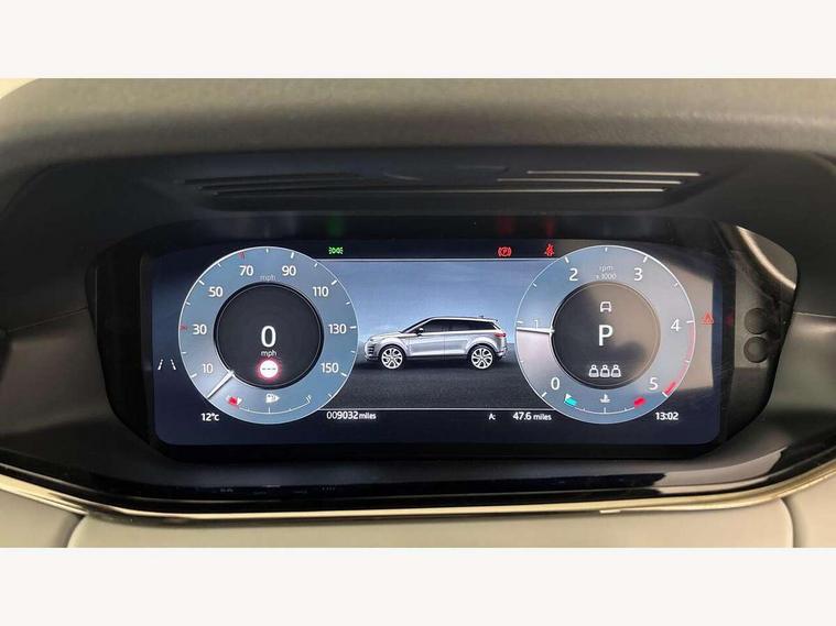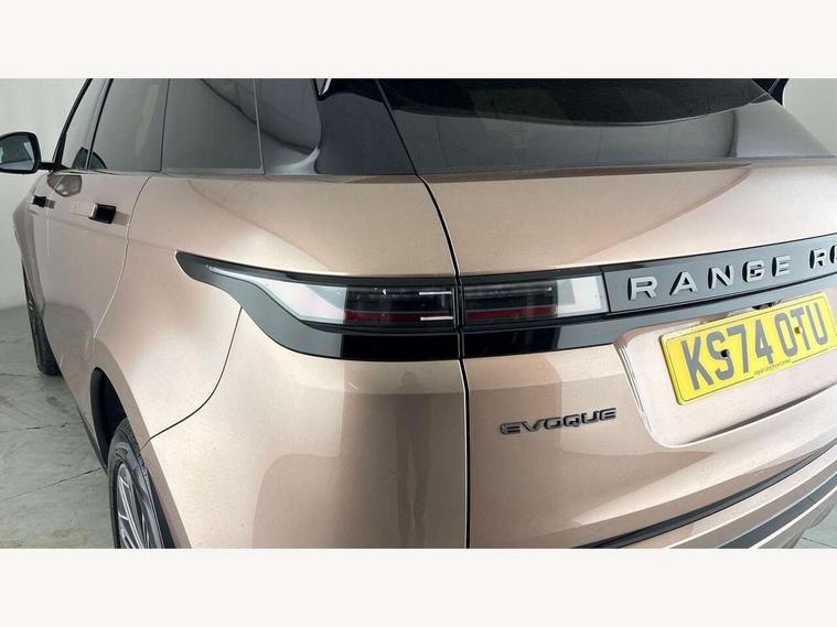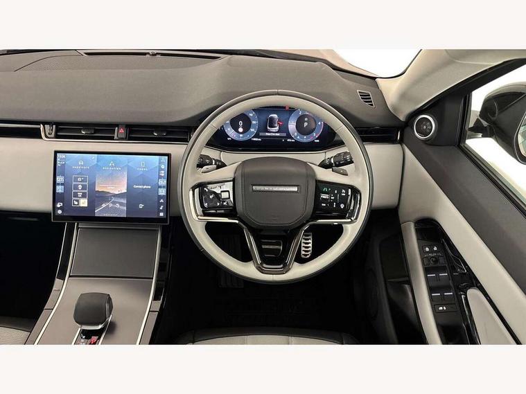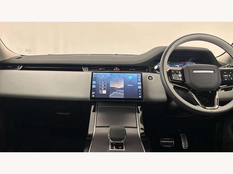 11.4" touch screen, Adaptive cruise control, Android Auto, Apple car play, Blind spot assist, Bluetooth connectivity, Brake pad wear indicator warning light, Driver condition monitor, eCall emergency system, Eco mode, Electronic power assisted steering (EPAS), Front and rear parking aid, InControl remote, Interactive driver display, Land Rover InControl apps, Lane keep assist, Pivi pro connected includes diamond pivi variant, smart settings, connected navigation pro, nuance speech licence, Powered tailgate/boot lid, Rear collision monitor, Rear traffic monitor, Traffic sign recognition with adaptive speed limiter, Voice control system, Wireless device charging, All terrain progress control, Diesel exhaust fluid (DEF) large tank, Efficient Driveline, Large fuel tank, Passive suspension, Terrain Response 2, Digital Audio Broadcast radio-DAB, Steering wheel mounted controls, Acoustic laminated windscreen, Auto headlights, Automatic headlight levelling, Electric windows with one touch open/close and anti trap, Flush deployable exterior door handles, Front and rear recovery eyes, Heated rear window with timer, Heated washer jets, Heated windscreen, Pixel LED headlights with signature DRL and LED tail Lights, Power fold, auto-dimming, heated door mirrors with approach lights and auto dimming driver side, Rain sensing windscreen wipers, Rear animated directional indicators, Rear fog lights, Rear side wing doors, Rear wiper, Side repeater indicators in mirror, Tailgate spoiler, Third brake light, Winter wiper park position, 14 way driver memory electric front seats with 2 way manual headrests + 4 way lumbar support, bolsters, 40:20:40 split folding rear seats with centre headrest and armrest, Ambient interior lighting, Bright metal pedals, Carpet mats, Chrome tread plates with range rover branding Includes stainless steel loadspace scuff plate with etched graphic, Customer configurable single point entry, Electrically adjustable steering column with memory function and easy entry/exit, Front and rear cupholders, Heated steering wheel, Isofix system on outer rear seats, Overhead lighting console, Overhead stowage for sunglasses, Passive front head restraints, Rear air vents, Rear head restraints, Satin chrome gearshift paddles, Single passenger seat, Sunvisors with illuminated vanity mirrors, Twin sliding front centre armrest, Online pack with data plan - Evoque, Power socket pack 2 - Evoque, 3 rear 3 point seatbelts, Anti-lock braking system (ABS), Brake hold function, Customer configurable autolock, DSC - Dynamic Stability Control, Electronic brake force distribution, Electronic parking brake, Electronic traction control, Emergency braking, Front and rear seatbelt reminder, Hill descent control, Hill launch assist, Low traction launch, Occupant protection assist, Passenger seat occupant detector, Power operated child locks, Roll stability control, Six airbags - Driver and passenger airbags/driver knee airbag/front side airbag and curtain airbags, Torque vectoring brake, Tyre pressure monitoring system, Alarm, Immobiliser, Intrusion sensor, Keyless entry, Locking wheel nuts,