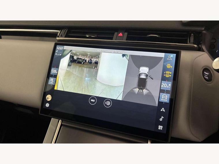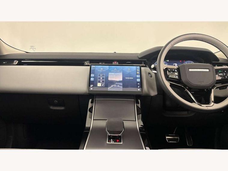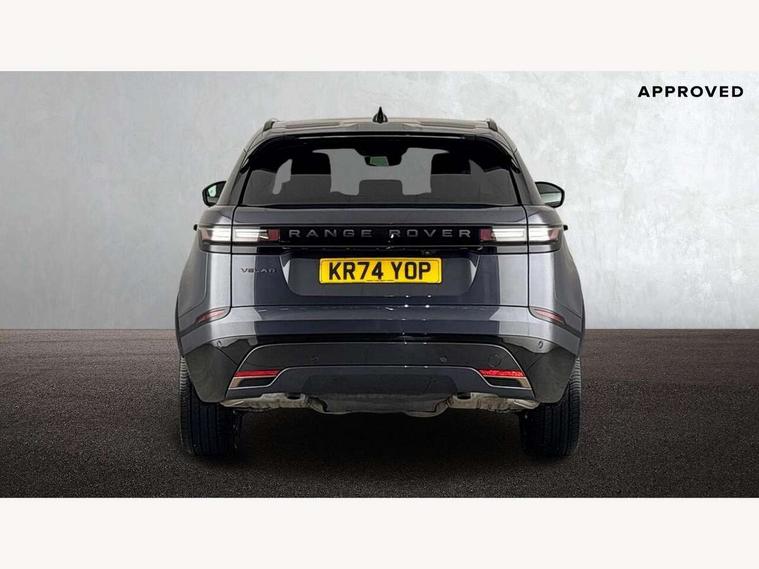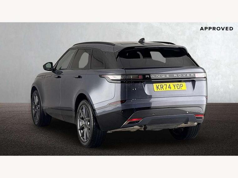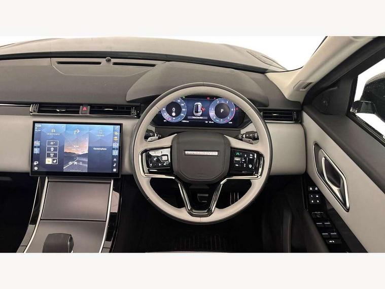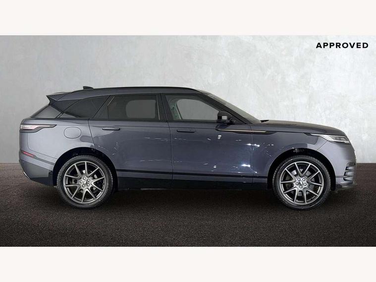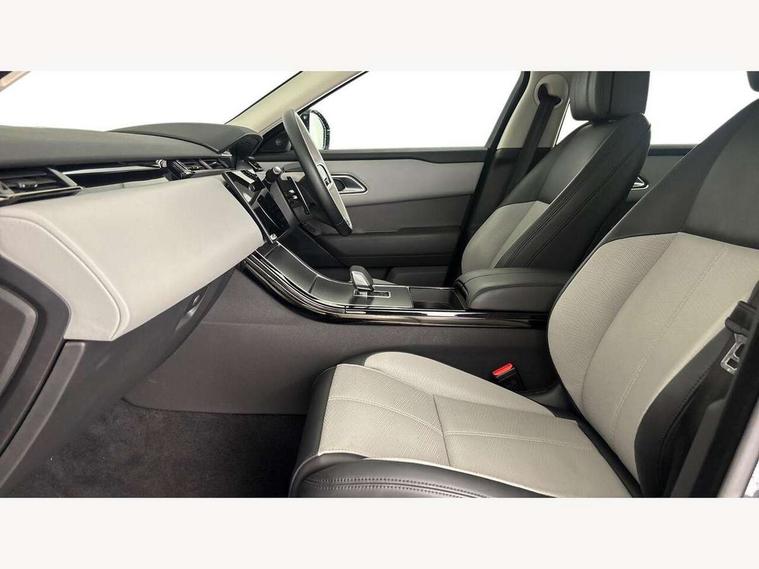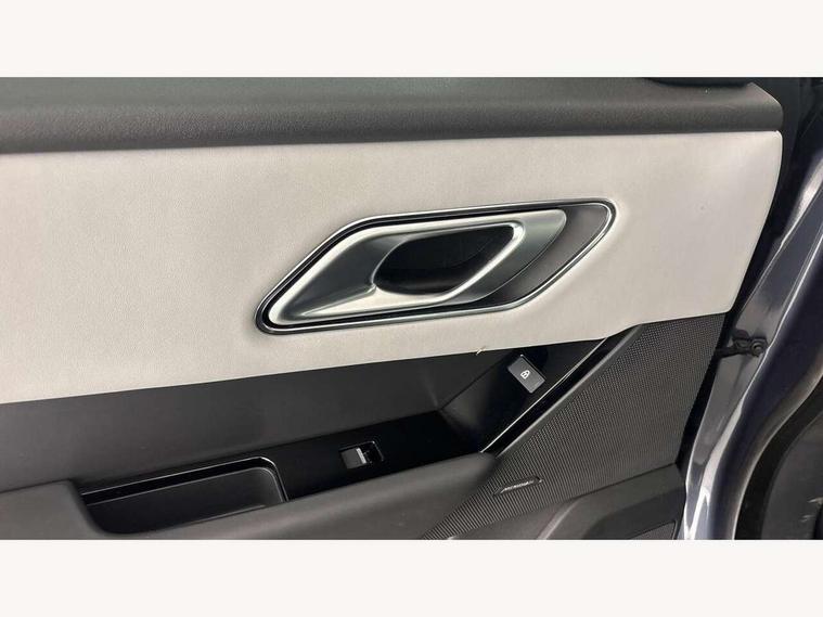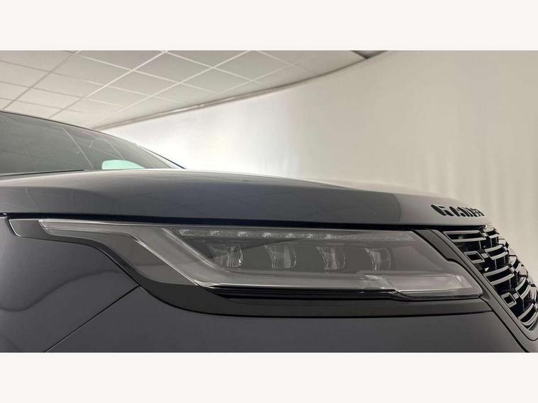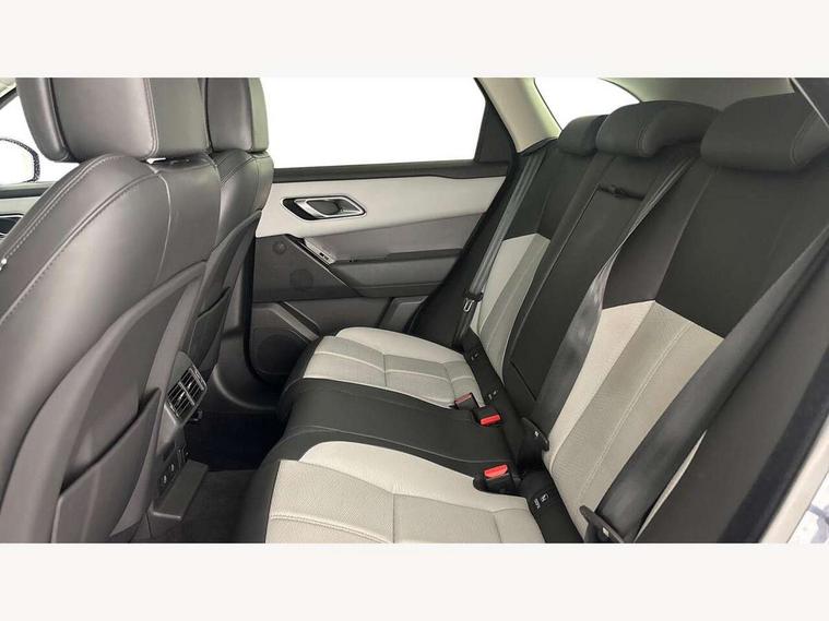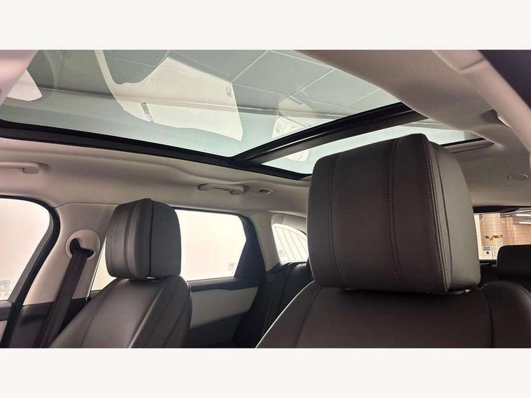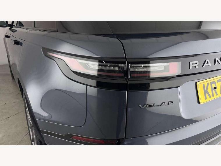 Adaptive cruise control with steering assist, Android Auto, Apple CarPlay, Blind spot assist, Bluetooth connectivity, Brake pad wear indicator warning light, Driver condition monitor, eCall emergency call system, Front and rear parking aid, InControl remote, Land Rover InControl apps, Lane keep assist, Pivi pro with connected navigation, Rear collision monitor, Rear traffic monitor, Service indicator, Speed proportional electronic power assisted steering (EPAS), Traffic sign recognition with adaptive speed limiter, Trip computer, Voice control system, Wireless device charging, 8 speed automatic transmission, Adaptive dynamics, All terrain progress control, Electronic air suspension, Open differential with torque vectoring by braking, Single speed transfer box, DAB radio, Steering wheel mounted controls, 3rd brake light, Acoustic laminated windscreen, Auto dimming interior rear view mirror, Automatic headlamp levelling, Automatic headlights, Body coloured bumpers, Boot protection plate, Electric windows with one touch open/close and anti trap, Flush deployable exterior door handles, Follow me home headlights, Heated rear window with timer, Heated washer jets, Heated windscreen, Metal front tread plates, Metal load space scuff plates, Pixel LED headlights with signature DRL, Power fold, auto-dimming, heated door mirrors with memory and approach lights, Rain sensor windscreen wipers, Rear animated directional indicators, Rear fog lights, Rear side wing doors, Rear wash/wipe, Tailgate/boot lid spoiler, Trailer stability assist, Velar badge, 3 seat bench in 2nd row, Ambient lighting, Bright metal pedals, Carpet mats, Driver/passenger sunvisors with illuminated vanity mirrors, Ebony morzine headlining, Electrically adjustable steering column, Extended leather upgrade, Heated steering wheel, Isofix system on outer rear seats, Loadspace cover, Overhead lighting console, Overhead stowage for sunglasses, Passive front headrests, Rear air vents, Rear centre headrest, Single front passenger seat, Twin front cupholders, Twin sliding front centre armrest, Online pack with data plan - Velar, Power socket pack 2 - Velar, 380mm front brakes and 325mm rear brakes, 3x3 point rear seatbelts, Anti-lock braking system (ABS), Cornering brake control, Curtain airbags, Customer configurable autolock, Door side intrusion beams, Driver airbag, DSC - Dynamic Stability Control, Electronic brake force distribution, Electronic parking brake, Electronic traction control, Emergency braking, Front and rear seatbelt reminder, Hill descent control, Hill launch assist, Low traction launch, Passenger airbag, Power operated child locks, Rear airbags, Roll stability control, Side airbags, Tyre pressure monitoring system (TPMS), Global lock and unlock switch on driver door, Immobiliser, Intrusion sensor, Keyless entry, Lock only switch on front passenger door, Locking wheel nuts, Perimetric alarm, Remote central locking, All season tyres,