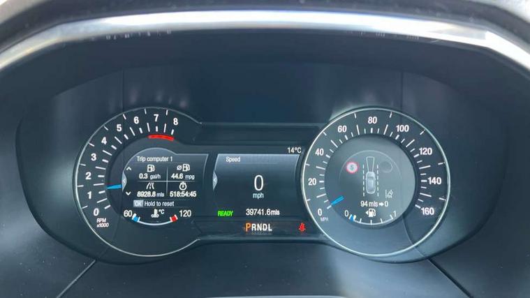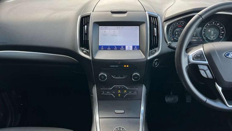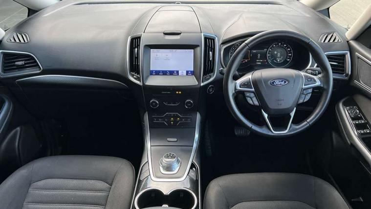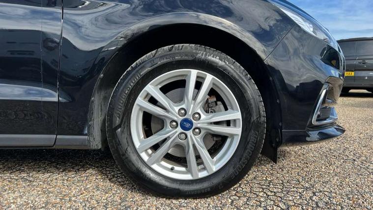 'Ford Power' starter button, Easy fuel capless refuelling system, eCall emergency call system, Ford pass connect embedded modem, Hydraulic PAS, Lane keeping aid - Driver impairment monitor, active steering with lane departure warning, Lights on warning, Outside temperature display, Tailgate, Traffic sign recognition, Trip computer, Unique instrument cluster, Auxiliary input socket, Steering wheel audio controls, Auto dimming rear view mirror, Auto high beam assist, Automatic headlights, Automatic wipers with variable sensitivity adjustment, Body colour bumpers, Body colour door mirrors, Chrome trim to lower side windows, Dual exhaust pipes, Electric front and rear windows + one touch + global open/closing, Front fog lights, Halogen headlight with cornering lights, Headlight courtesy delay, Hybrid badge, LED daytime running lights, LED rear lights, LED third brake light, Lower front grille with chrome surround, Power folding and heated door mirrors, Quickclear heated windscreen, Rain sensor, Rear privacy glass - dark glass to rear windows, Rear side wing doors, Silver roof rails, 2 height adjustable headrests - 3rd row, 230V power outlet in centre console, 2nd row reading lights, 3 height adjustable headrests - 2nd row, 3 individual fold flat 2nd row seats, 3rd row rear seats with manual fold flat, slide/recline and manual easy entry, Ambient interior lighting (excludes 2nd row footwell), Driver/passenger sunvisors with illuminated vanity mirrors + covers, Dual zone air conditioning, Floor mats in all three rows, Front door scuff plates, Front headrests, Front seat armrests, Front seat storage pockets, Front sports seats, ISOFIX attachments for child seats in 2nd row, Leather gear knob, Leather trimmed steering wheel, Manual adjustable front seats + lumbar support, Overhead console with child observation mirror, Pollen filter, Reach + rake adjustable steering column, Rear cupholders, Single passenger seat, Sunglasses storage, Tray tables on front seatbacks, 3 point seatbelts on all seats, ABS, Child proof door locks, Driver and passenger airbags, Driver and passenger side airbags, Drivers knee airbag, Electric handbrake, Electronic brake force distribution, ESP with traction control + emergency brake assist, Pre-Collision assist with AEB, Regenerative braking system, Seatbelt warning, Side curtain airbags, Tyre pressure monitoring system, Immobiliser, Keyless entry, Locking wheel nuts, MyKey system, Remote control central locking, Thatcham Cat.1 alarm, Tyre inflation kit,
